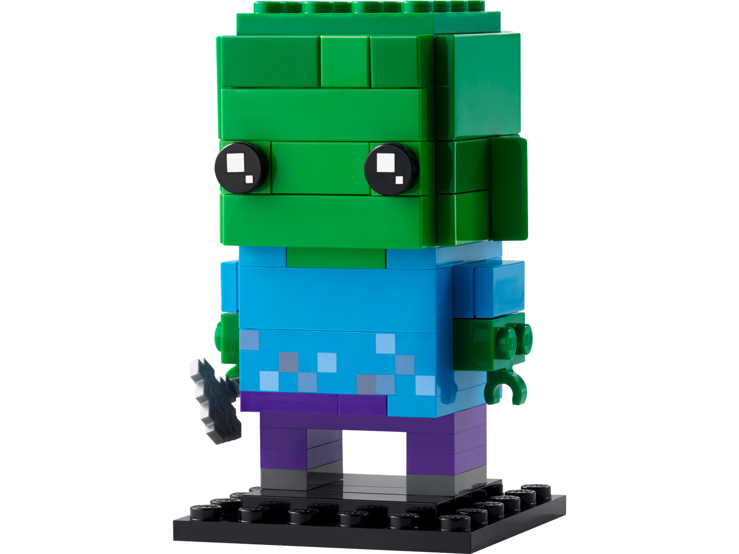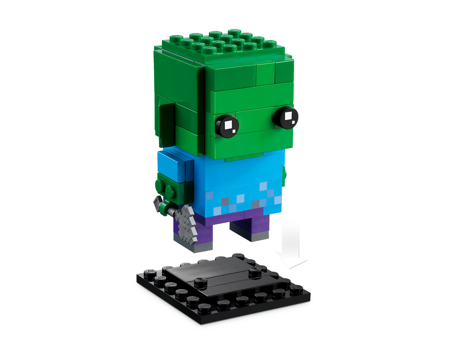 * Geschenk für Minecraft® Spieler: Der LEGO® BrickHeadz™ Zombie (40626) ist eine Baufigur, die eine legendäre bösartige Kreatur aus Minecraft darstellt* Authentische Details: Diese ebenso farbenfrohe wie exakte Nachbildung eines Minecraft® Charakters hält eine Axt in der Hand* Figur zum Spielen und Ausstellen: Die Figur gehört zu einer ganzen Reihe von separat erhältlichen BrickHeadz™ Modellen, ist 8 cm groß und kann mühelos auf der beiliegenden Grundplatte ausgestellt werden