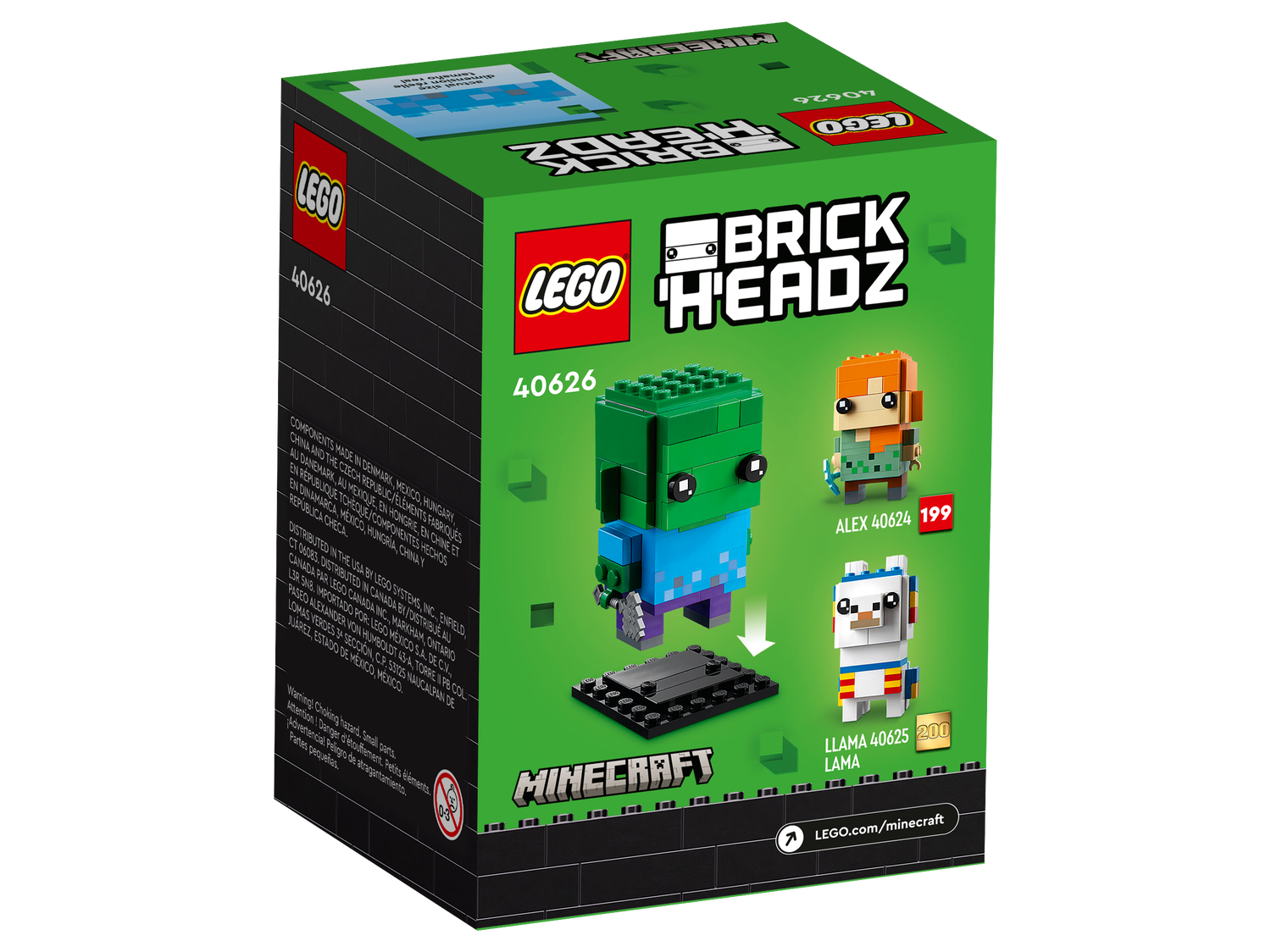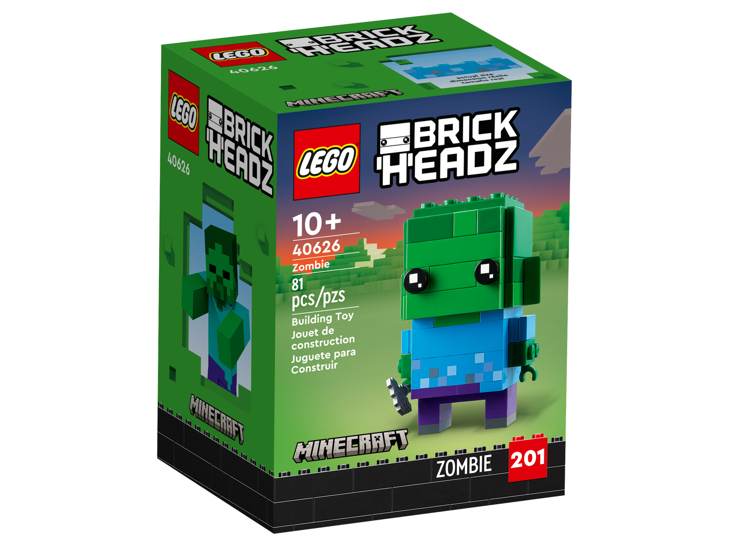 Zombies sind legendäre bösartige Kreaturen aus dem Videospiel Minecraft®. Und jetzt können Minecraft Spieler ab 10 Jahren ihren eigenen LEGO® BrickHeadz™ Zombie (40626) bauen. Die detailgetreue Figur ist 8 cm groß und kann auf der beiliegenden Stellplatte stehen. Der Zombie eignet sich zum Spielen und Ausstellen, damit ihn alle bewundern können.