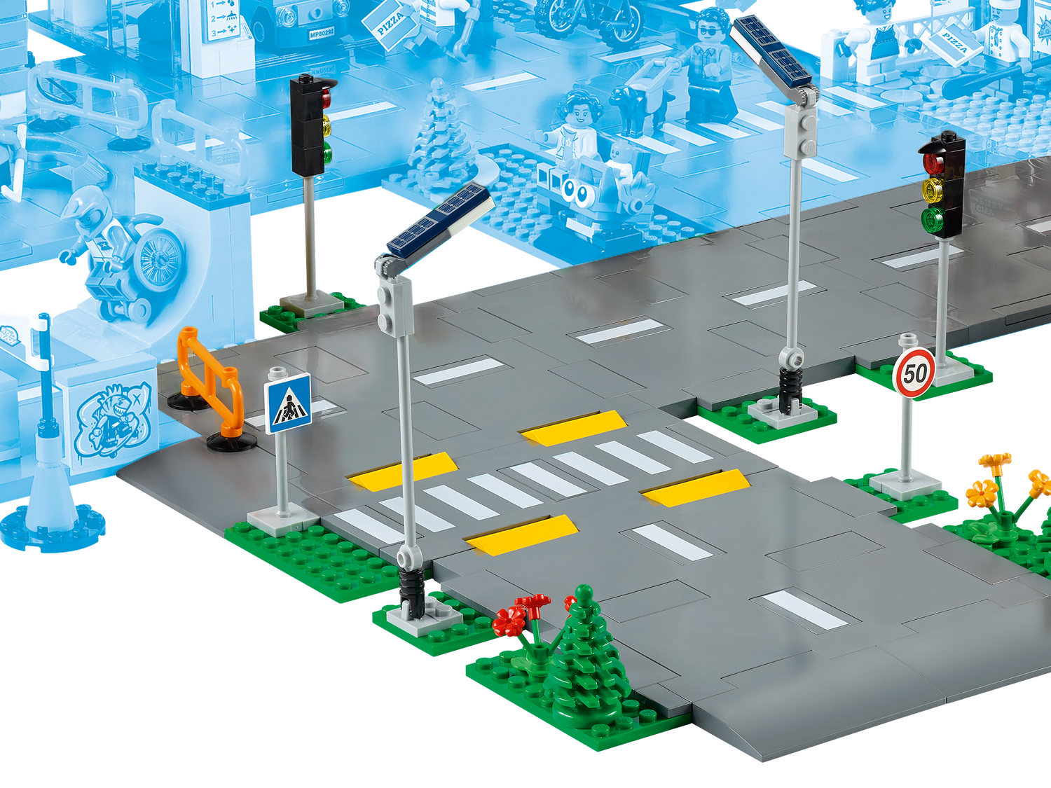 * Mit dem LEGO® Bauset „Straßenkreuzung mit Ampeln“ (60304) können Kinder eine realistische LEGO Spielkulisse erschaffen. Der perfekte Ausganspunkt für ein fantastisches Bau- und Spielerlebnis.* Inhalt des Sets: 5 LEGO® Straßenplatten mit Fahrbahnmarkierungen, Bremsschwellen und ein Zebrastreifen sowie Straßenlampen, die im Dunkeln leuchten. Ampeln, Straßenschilder und Begrünungselemente komplettieren das Set.* Kinder können eine realistische LEGO® Straßenkreuzung mit vielen authentischen Details erschaffen und das Modell mit anderen LEGO City Straßenplatten-Sets verbinden, um ihre Stadt zu erweitern.* Das LEGO® City Spielset „Straßenkreuzung mit Ampeln“ ist ein tolles Geschenk zu Weihnachten, zum Geburtstag oder zu anderen Anlässen für Kinder ab 5 Jahren.* Die fertige Straßenkreuzung ist 13 cm hoch, 44 cm breit und 38 cm tief.* Die LEGO® City Straßenkreuzung mit Ampeln dient Kinder als tolle LEGO Spielkulisse.* Neben einer gedruckten Bauanleitung sind in der kostenlosen LEGO® Building Instructions App für Smartphones und Tablets auch Instructions PLUS verfügbar. Diese interaktive Anleitung verwandelt Kinder rasch in wahre Baumeister!* LEGO® City Sets enthalten farbenfrohe Gebäude, coole Fahrzeuge und lustige Figuren, die Kinder zu fantasievollen Rollenspielen und unzähligen Abenteuern in authentischen Stadtkulissen anregen.* Bereits seit 1958 werden alle LEGO® Steine und Teile gemäß den strengen Qualitätsstandards der Branche produziert, damit sie einheitlich und kompatibelsind – und größten Bauspaß bieten.* LEGO® City Modelle werden gründlich getestet, damit jedes Spielset strengen Sicherheitsstandards genügt.