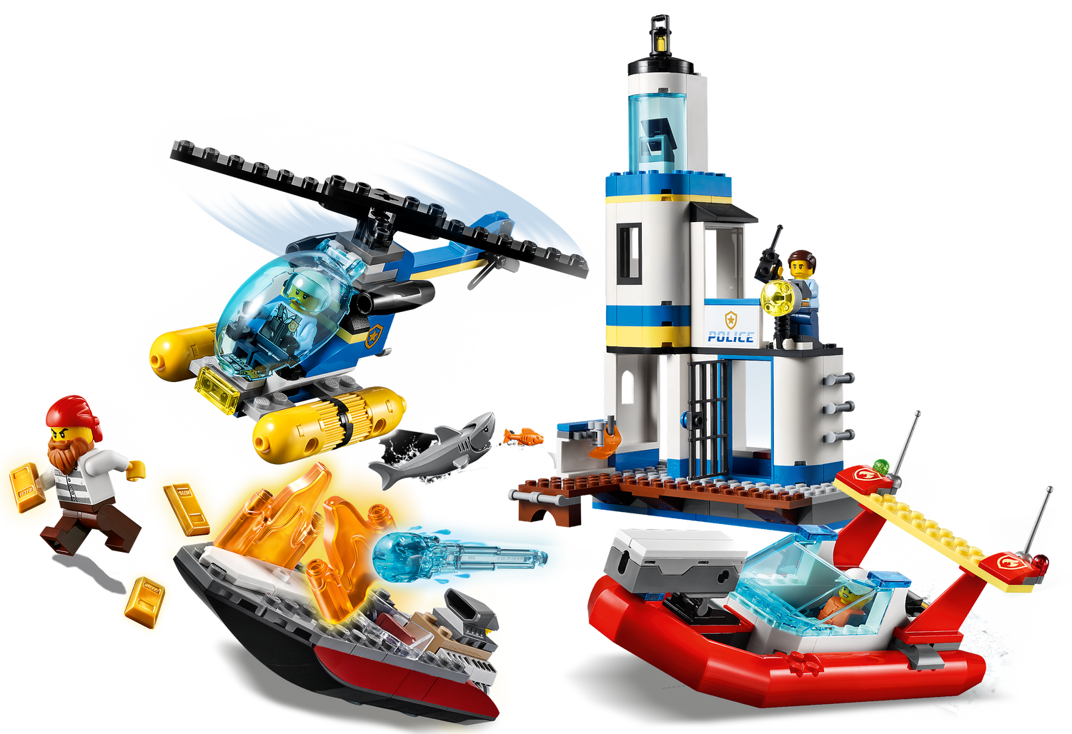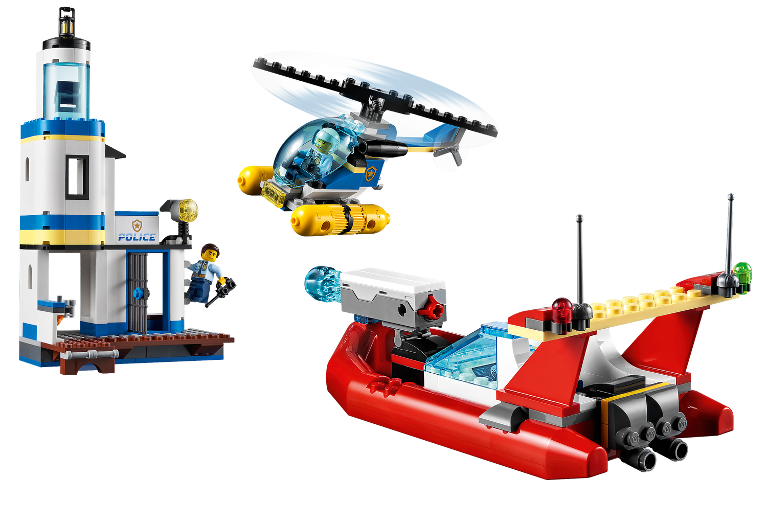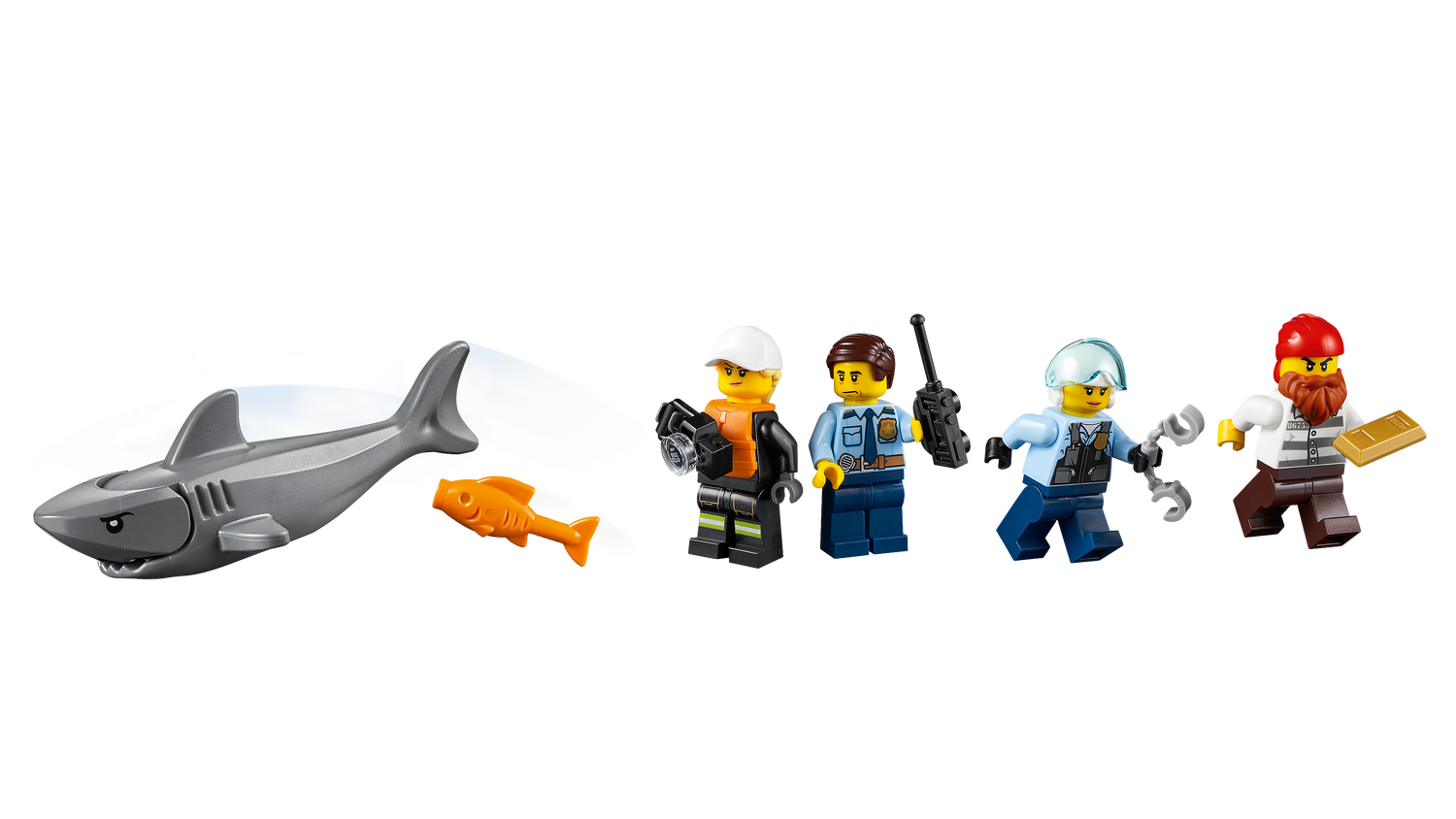 * Polizei und Feuerwehr im Küsteneinsatz (60308) ist ein Premium-Spielset bestehend aus mehreren Modellen. Realistische Fahrzeuge und faszinierende Figuren lassen Kinder fantasievoll spielen.* Inhalt des Sets: Alles, was Kinder brauchen, um eine Polizeistation, einen Polizeihubschrauber, ein Löschschlauchboot und das Schnellboot des Ganoven zu bauen. Auch Tom Bennett aus der LEGO® City TV-Serie ist als eine von vier Minifiguren enthalten.* Kinder können das Löschschlauchboot auf dem Wasser schwimmen lassen, mit dem Feuerlöscher an Bord LEGO® Flammen bekämpfen und packende Polizei- und Löscheinsätze mit den faszinierenden Minifiguren nachstellen.* Imposantes Weihnachts-, Geburtstags- oder Überraschungsgeschenk für Fans der TV-Serie „LEGO® City – Abenteuer“ und für Kinder ab 5 Jahren, die spannende Rollenspiele lieben.* Die Polizeistation ist 23 cm hoch, 12 cm breit und 10 cm tief. Das Löschschlauchboot ist 9 cm hoch, 19 cm lang und 8 cm breit.* Batterien werden nicht benötigt. Diesen LEGO® Modellen reicht die Fantasie der Kinder.* Neben einer gedruckten Bauanleitung sind in der kostenlosen LEGO® Building Instructions App auch Instructions PLUS verfügbar. Vergrößerungs- und Drehfunktionen veranschaulichen den Bauvorgang.* LEGO® City Spielset beinhalten detailgetreue Gebäude, realistische Fahrzeuge und faszinierende Figuren, die Kinder viele Stunden kreativ bauen, fantasievoll spielen und spannende Alltagsszenarien nachstellen lassen.* Bereits seit 1958 werden alle LEGO® Steineund Teile nach den strengen Qualitätsstandards der Branche produziert, damit sie einheitlich und kompatibel sind – und echten Bauspaß bieten.* LEGO® City Bauspielzeuge werden gründlich getestet, damit jedes Spielset strenge Sicherheitsstandards erfüllt.