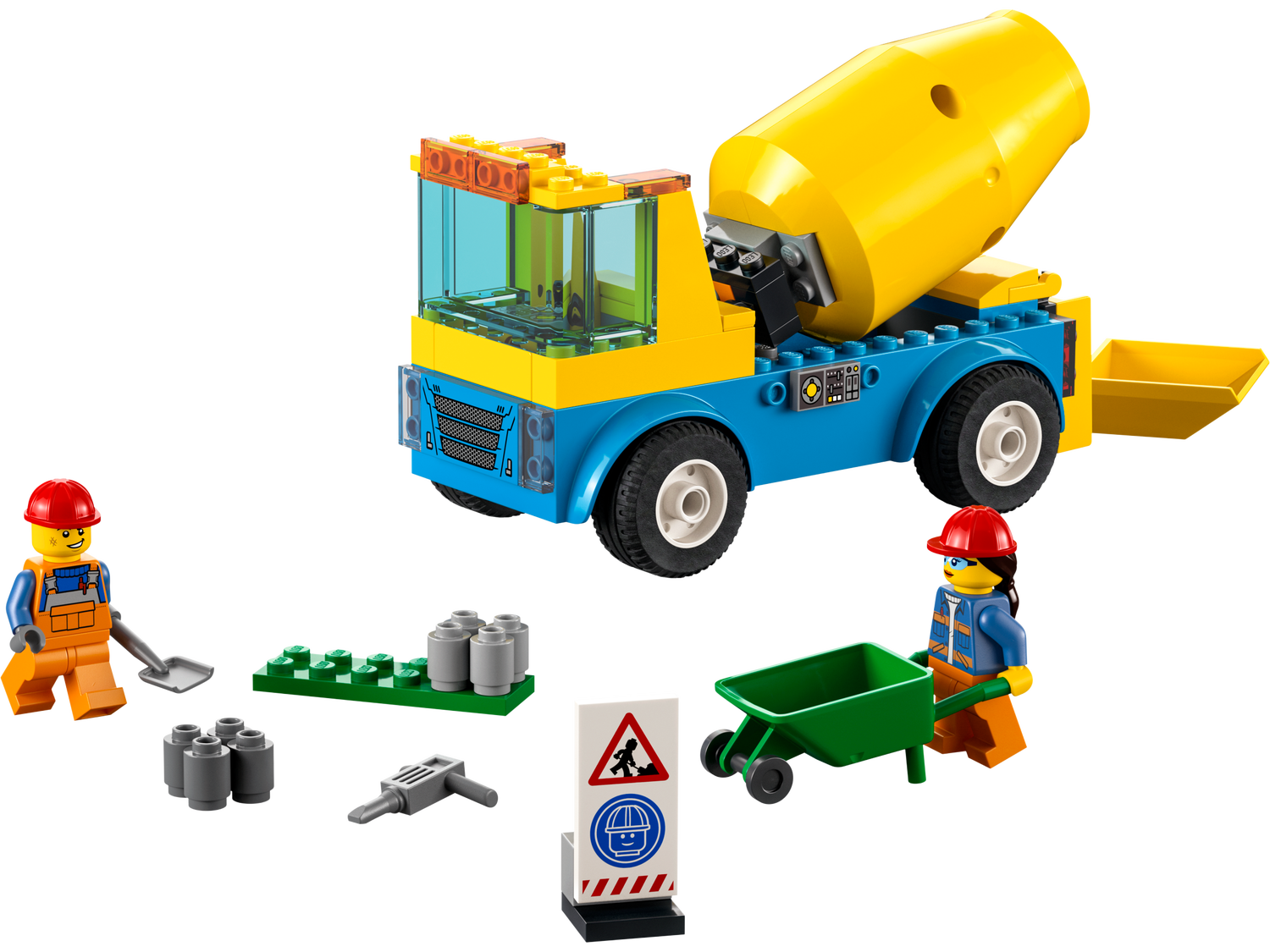 Mit dem LEGO® City Betonmischer (60325) können Kinder ihrer Fantasie freien Lauf lassen. Das Baufahrzeug verfügt über eine aufklappbare Fahrerkabine und eine drehbare Mischtrommel. Zum Set gehören auch ein Presslufthammer, eine Schubkarre und ein Verkehrsschild. All diese Spielzeuge und die beiden Bauarbeiter-Minifiguren lassen Kinder viele Stunden kreativ spielen.Für Jungen und Mädchen ab 4 JahrenDieses 4+ Spielset verschafft Kindern mit dem Starter-Bauelement (einem vorgeformten Fahrgestell) einen tollen Einstieg. Eine gedruckte Schritt-für-Schritt-Bildanleitung liegt bei. In der kostenlosen LEGO Building Instructions App für Smartphones und Tablets ist außerdem eine interaktive Bauanleitung verfügbar. Die intuitiven Vergrößerungs- und Drehfunktionen lassen Kinder eine digitale Ansicht des fertigen Modells betrachten.Die Welt ganz spielerisch entdeckenFantastische Fahrzeuge und Maschinen sind für Kinder ein alltäglicher Anblick. Die LEGO City Bausets aus dem Universum der Starken Fahrzeuge lassen Kinder realistische Modelle näher betrachten. Außerdem laden witzige Figuren zu unzähligen fantasievollen Rollenspielen ein.