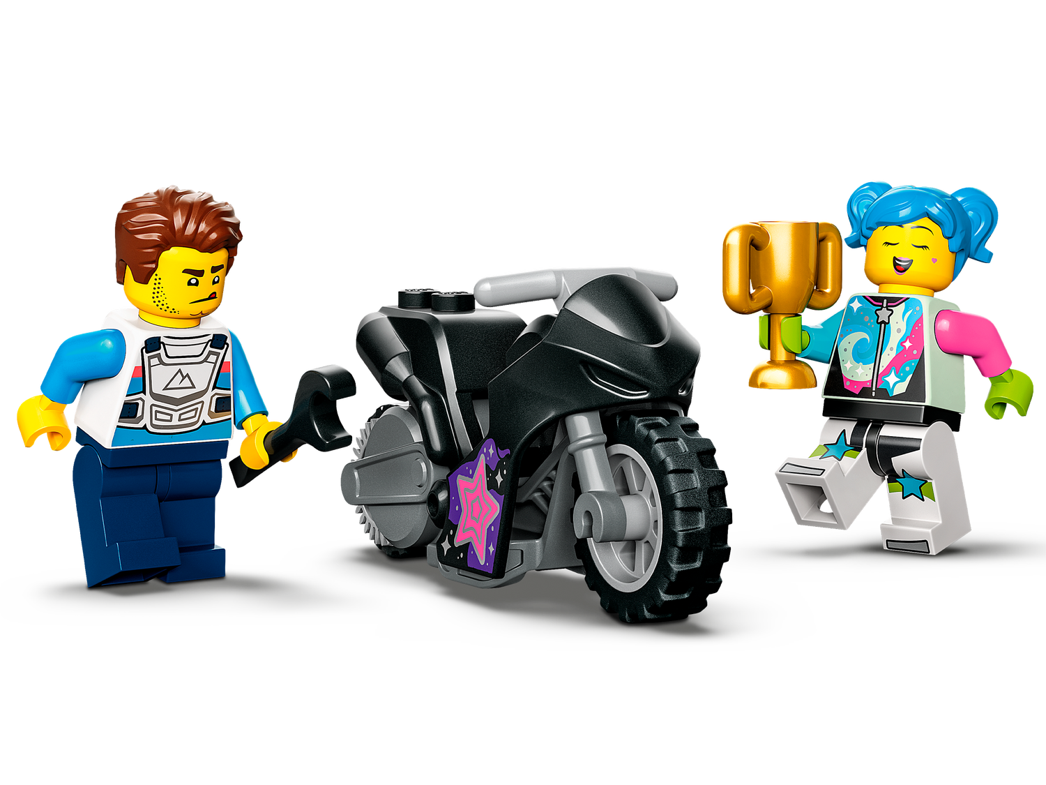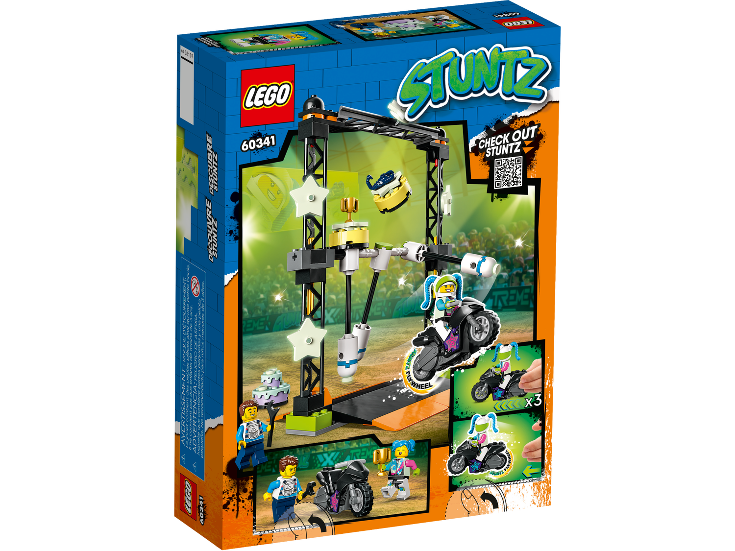* Spannende Stunts für Kinder ab 5 Jahren: Das LEGO® City Spielset „Umstoß-Stuntchallenge“ (60341) beinhaltet 2 Minifiguren aus der LEGO City TV-Serie und dient als perfekte Kulisse für spektakuläre Stuntshows und packende Wettbewerbe* Inhalt der Box: Alles, was Kinder brauchen, um die Umstoß-Stuntchallenge, ein Stuntbike mit Schwungrad und 2 Minifiguren zu bauen – die Galaktische Poppy Star und Harl Hubbs aus der TV-Serie LEGO® City – Abenteuer* Im Dunkeln leuchtende Elemente und faszinierende Funktionen: Kinder können das Stuntbike anschieben und dann loslassen, damit es die herabhängenden Stangen trifft und ein Preis herunterfällt* Geschenk für jeden Anlass: Dieses LEGO® City Stuntz Spielset eignet sich als Geburtstags-, Weihnachts- oder Überraschungsgeschenk für Kinder und Fans der TV-Serie LEGO City – Abenteuer ab 5 Jahren* Abmessungen: Die Umstoß-Stuntchallenge ist 24 cm hoch, 20 cm breit und 14 cm tief* Cooles LEGO® Zubehör für die Minifiguren: Ein Skorpion, ein Siegerpokal, ein Schraubenzieher und ein Mikrofon* Bauspaß für Kinder ab 5 Jahren: Diesem Stuntz Spielzeug liegt eine einfache gedruckte Bauanleitung bei* Für kreatives Spielvergnügen: LEGO® City Stuntz Spielsets lassen Kinder besonders fantasievoll mit Bauwerken, Fahrzeugen und Figuren spielen* Garantierte Qualität: Alle LEGO® Elemente entsprechen schon seit 1958 strengen Branchenstandards, damit sie einheitlich und kompatibel sind und großen Bauspaß bieten* Sicherheit steht an erster Stelle: LEGO® Elemente werden Fall-, Hitze-, Druck- und Torsionstests unterzogen und analysiert, damit sie strengen globalen Sicherheitsstandards entsprechen