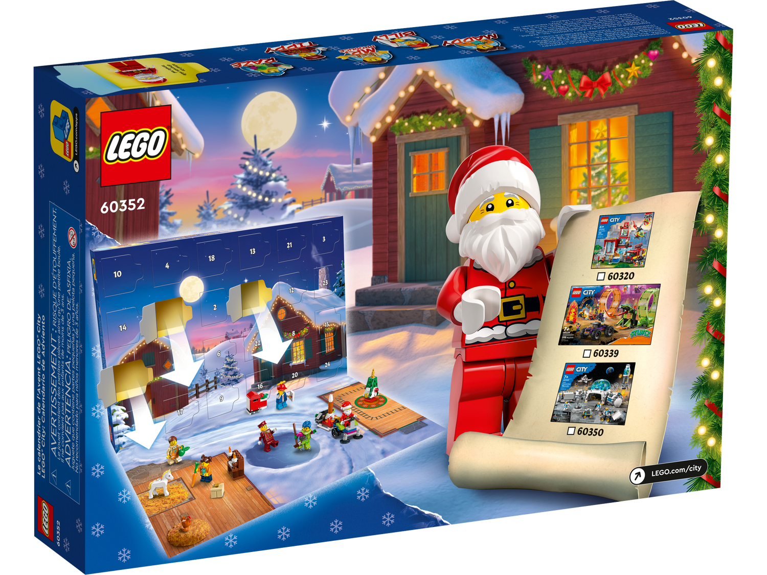 * Grenzenlose Vorweihnachtsfreude: Der LEGO® City Adventskalender (60352) für 2022 lässt Kinder ab 5 Jahren fantasievoll spielen und versüßt ihnen das Warten auf den großen Tag* 5 Minifiguren aus der TV-Serie LEGO City – Abenteuer: Billy, Maddy, Mr. Produce, Tippy und Raze und außerdem eine Weihnachtsmann-Minifigur* Coole Spielmatte: Dein Kind kann die Rückseite des Kalenders herunterklappen, um fantasievolle Abenteuer in der Winterlandschaft darzustellen* Tolles Geschenk für die Vorweihnachtszeit: Dieser Adventskalender beinhaltet viele Spielzeug und ist eine fantastische Überraschung für Kinder ab 5 Jahren und für Fans der TV-Serie LEGO City – Abenteuer, die gern kreativ spielen* Abmessungen: Die Box mit dem LEGO® City Adventskalender ist 26 cm hoch, 38 cm breit und 7 cm tief* Batterien werden nicht benötigt: Die Fantasie kleiner Kinder reicht völlig, um mit den LEGO® Spielzeugen und Minifiguren aus diesem Adventskalender zu spielen* Die Spielzeuge lassen sich kinderleicht zusammensetzen: Für jede Überraschung im LEGO® City Adventskalender ist eine verständliche Bauanleitung ins jeweilige Fenster gedruckt* Fantasievolles Spielerlebnis: Der LEGO® City Adventskalender beinhaltet farbenfrohe Mini-Modelle und coole Minifiguren für kreative Rollenspiele* Spielzeug in Premium-Qualität: Alle LEGO® Elemente entsprechen schon seit 1958 strengen Branchenstandards, damit sie einheitlich und kompatibel sind und großen Bauspaß bieten* Sicherheit steht an erster Stelle: LEGO® Steine und Teile werden Fall-, Hitze-, Druck- und Torsionstests unterzogen und analysiert, damit sie strikten globalen Sicherheitsstandards entsprechen
