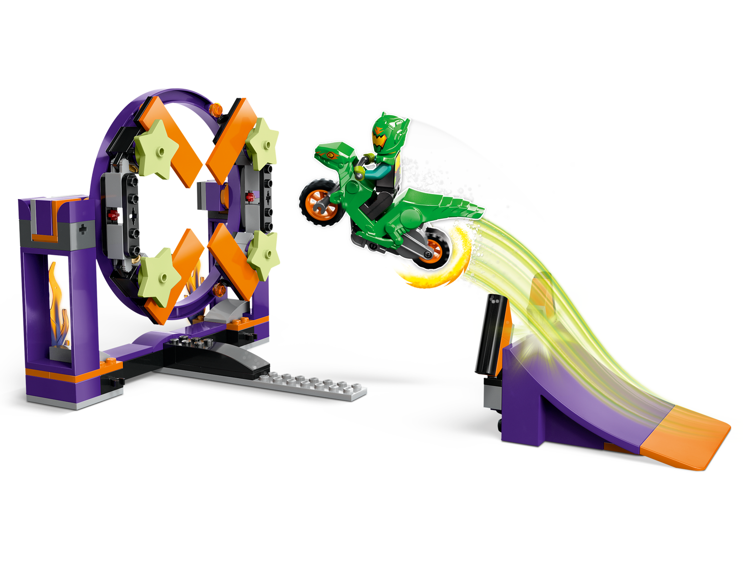Mit der LEGO® City Sturzflug-Challenge (60359) erwarten dein Kind unzählige spektakuläre Stunts. Dein Kind bringt den Sprungreifen in eine senkrechte oder waagerechte Position, aktiviert das Schwungrad und lässt das Stuntbike über die Rampe springen und atemberaubende Stunts vorführen. Das Spielset beinhaltet auch einen LEGO City Stuntz Fahrer.Bau- und Spielspaß für Kinder ab 5 JahrenDiesem LEGO City Stuntz Spielset liegt eine verständliche Bauanleitung bei. Außerdem sind in der LEGO Builder App intuitiv nutzbare Vergrößerungs- und Drehfunktionen verfügbar, die dein Kind beim Bauen digitale Modellansichten aus jedem Winkel betrachten lassen.Die Kinder sind die Stars der Show!LEGO City Spielsets beinhalten realistische Fahrzeuge, detailreiche Konstruktionen und faszinierende Figuren für spannende Rollenspiele. Kombiniere diese Modelle für noch größere Stuntshows mit den anderen LEGO City Stuntz Spielsets.