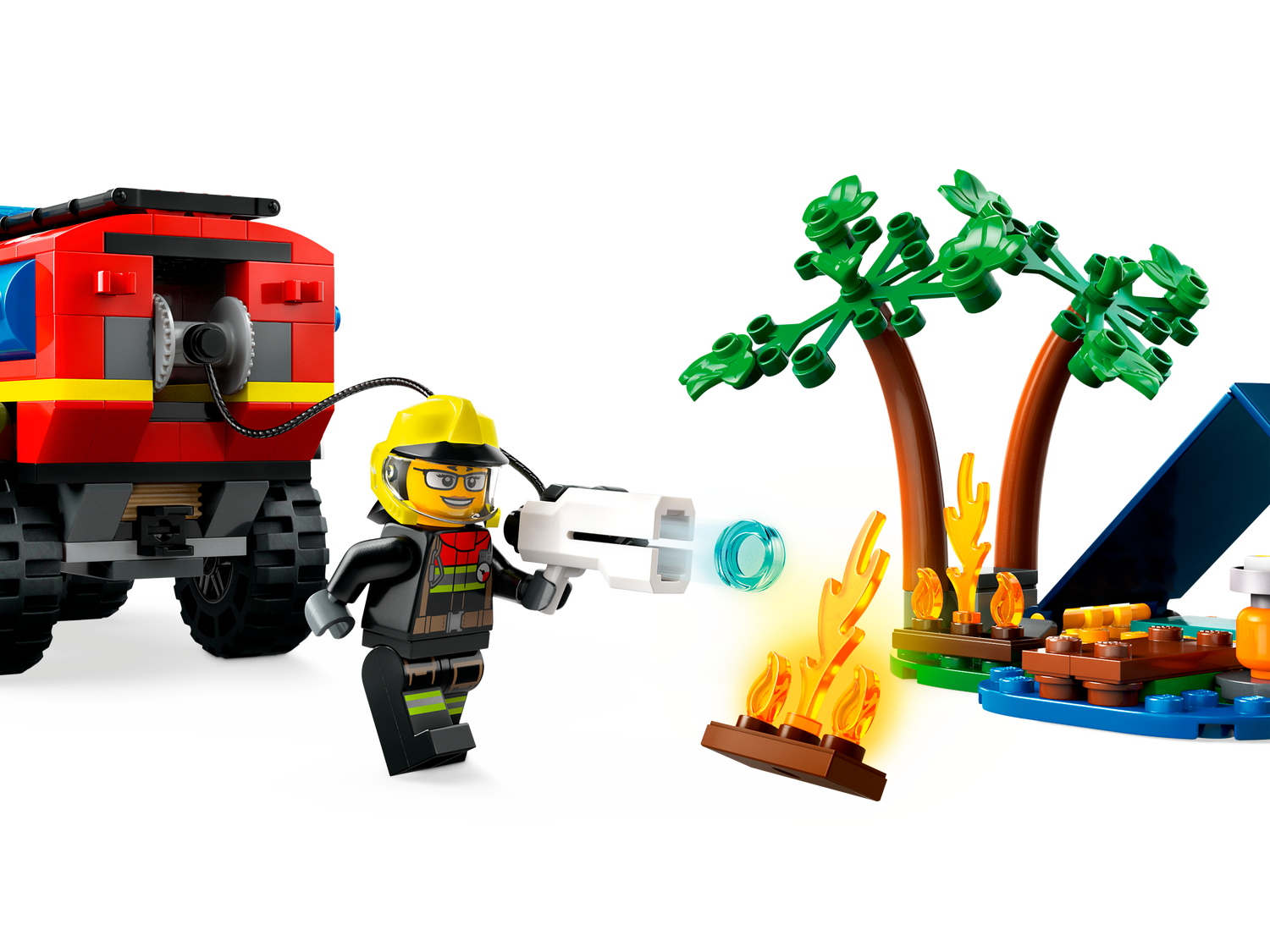 * Spielset mit Rettungsfahrzeugen: Der LEGO® City Feuerwehrgeländewagen mit Rettungsboot für Kinder ab 5 Jahren ist eine faszinierende Kombi für doppeltes Spielvergnügen* Inhalt dieses LEGO® Bausets: Alles, was Kinder brauchen, um einen Feuerwehrgeländewagen, einen Anhänger, ein Rettungsboot, ein Zelt und eine Campingkulisse mit Lagerfeuer sowie 3 Minifiguren – einen Camper und 2 Feuerwehrleute – zu bauen* Jede Menge Funktionen für ein fantasievolles Spielerlebnis: Der Geländewagen hat ein abnehmbares Dach, das Zugang zum Cockpit bietet, einen Feuerlöscher, ein Werkzeug-Staufach und einen Anhänger mit abnehmbarem Rettungsschlauchboot* Digitale Bauanleitung für noch mehr Bauspaß: In der LEGO® Builder App für Smartphones und Tablets sind Funktionen verfügbar, die dein Kind beim Bauen eine digitale Ansicht dieses Modells vergrößern, drehen und aus jedem Winkel betrachten lassen* Cooles Geschenk für jeden Anlass: Dieses Set eignet sich als Weihnachts- oder Überraschungsgeschenk für Jungenund Mädchen ab 5 Jahren* Endlose Spielmöglichkeiten: Für weitere spannende Abenteuer musst du dieses Modell nur mit anderen separat erhältlichen LEGO® City Feuerwehr-Sets kombinieren* Eine Stadt ohne Limits: LEGO® City Bausets lassen dein Kind kreativ bauen und spielen und dabei Selbstvertrauen und wichtige Fähigkeiten fürs ganze Leben entwickeln* Abmessungen: Mit Anhänger ist der Feuerwehrgeländewagen aus diesem 301-teiligen Spielset 8 cm hoch, 30 cm lang und 6 cm breit
