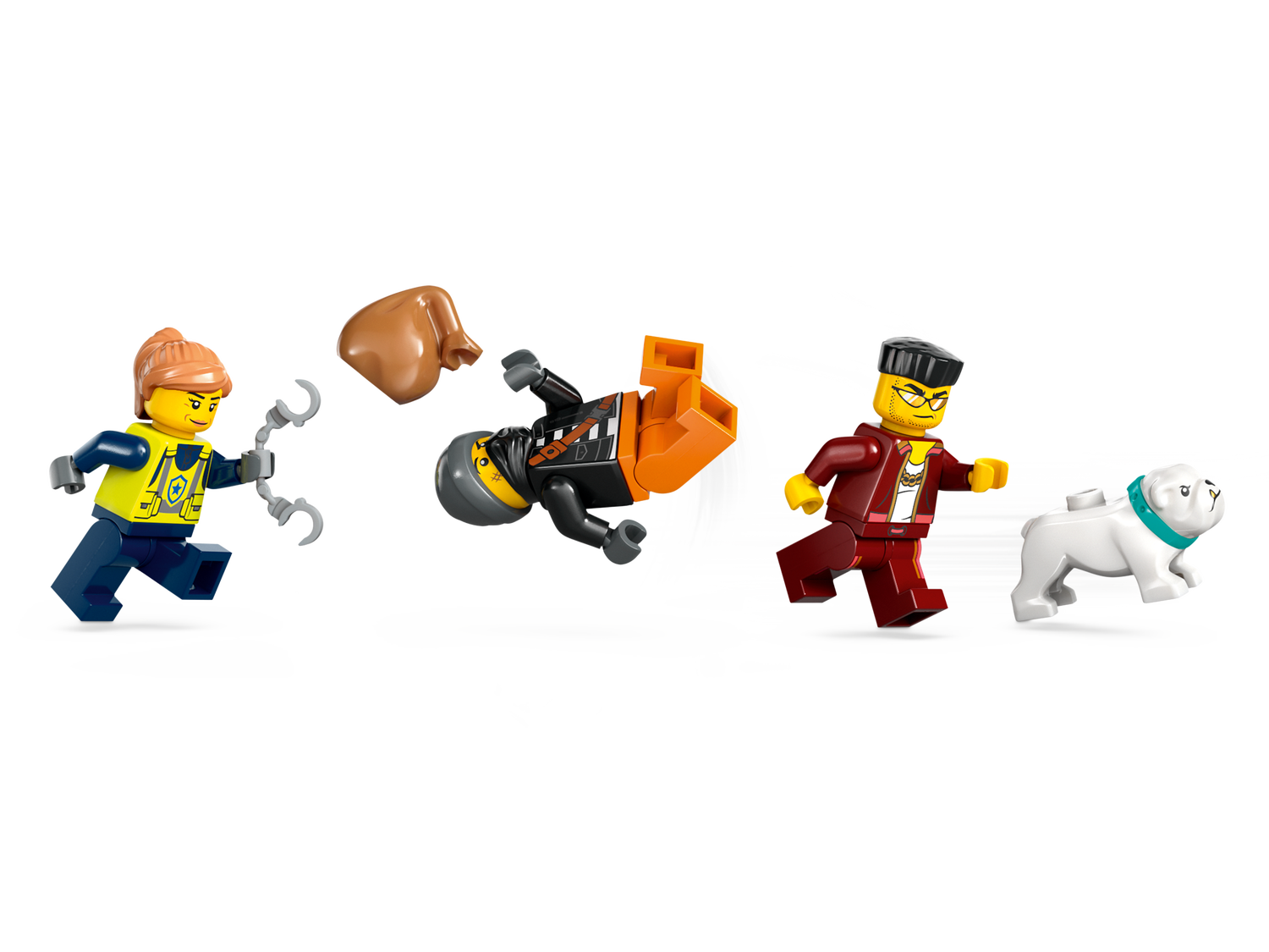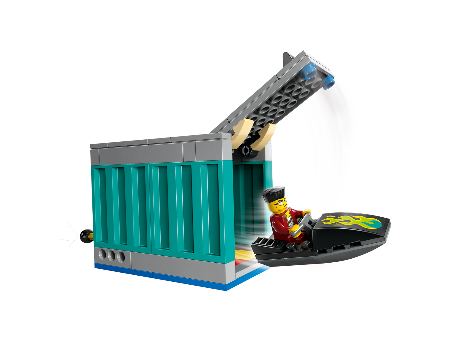 LEGO® City Polizeischnellboot und Ganovenversteck (60417) lässt Kinder spannende Abenteuer darstellen, bei denen sich ein Polizist an die Fersen der flüchtenden Ganoven heftet. Das Set beinhaltet ein Polizeischnellboot und ein Ganovenversteck zwischen alten Frachtcontainern am Hafen der Stadt. Dein Kind kann den Polizisten an Bord seines Boots begleiten und viele Funktionen und Überraschungen in diesem Set entdecken. Unter anderem laden ein Wassermotorrad, eine Hafenkulisse, ein Polizist, 2 Ganoven und eine Bulldogge zum Spielen ein.Zu diesem LEGO Spielset ist neben einer gedruckten Schritt-für-Schritt-Anleitung auch eine 3D-Bauanleitung in der LEGO Builder App verfügbar. Intuitiv nutzbare Vergrößerungs- und Drehfunktionen lassen Kinderbeim Bauen digitale Modellansichten aus jedem Winkel betrachten.Deine Stadt, keine Limits! LEGO City Sets beinhalten coole Fahrzeuge, wirklichkeitsgetreue Bauwerke und faszinierende Figuren, die Kinder fantasievoll und ohne Limits spielen lassen. Für noch viele weitere Spielmöglichkeiten kann dein Kind dieses Polizei-Spielset mit anderen separat erhältlichen LEGO City Modellen kombinieren