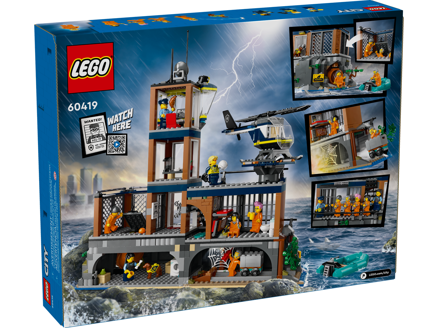In der LEGO® City Polizeistation auf der Gefängnisinsel (60419) sitzen einige der schlimmsten Ganoven der Stadt in Haft, die allerdings schon andere Pläne schmieden! Mit diesem fantastischen Spielset erwarten dich viele spannende Actionabenteuer. Neben einem Gefängnis in den Klippen mit jeder Menge Details und Funktionen beinhaltet das Set auch einen Hubschrauber, ein Polizeiboot, ein Schlauchboot, 3 Polizisten und 4 Häftlinge sowie einen Polizeihund und einen Hai.Auf der voll eingerichteten Gefängnisinsel gibt es einen Kontrollraum, einen Pausenraum für die Polizisten, eine Eingangshalle, einen Innenhof mit Geheimausgang, einen Hundezwinger und eine Zelle mit Betten und Fluchttunnel, der zu einer verlassenen Mine führt. Und in der Waschküche der Häftlinge befinden sich Ausbruchswerkzeuge. Ein Hubschrauberlandeplatz und eine Felswand mit einem losen Felsbrocken für eine explosive Flucht vervollständigen das Set.Die LEGO® Builder App nimmt dein Kind auf ein faszinierendes Bauabenteuer mit. In der App kann dein Kind beim Bauen den Baufortschritt verfolgen und 3D-Modellansichten vergrößern, drehen und aus jedem Winkel betrachten.