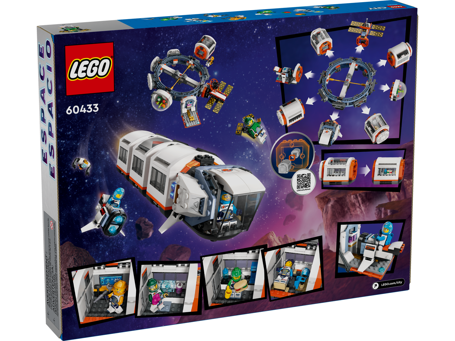 Überrasche deinen kleinen Astronauten mit dem Modell der Modularen Raumstation (60433). An die futuristische ringförmige Weltraumbasis aus diesem LEGO® City 7+ Set können Raumschiffe und Raumkapselmodule andocken, beispielsweise auch ein Satellit,ein Weltraummotorrad, ein Shuttle, ein Labor, eine Reparaturwerkstatt, eine Küche, ein Schlafquartier und eine Biokuppel. Kinder können die Module untereinander austauschen, um eine perfekte Raumstation zu erschaffen, oder ans Shuttle ankoppeln, damitsie einen coolen Weltraumzug bilden!Die LEGO® Builder App nimmt dein Kind auf ein faszinierendes Bauabenteuer mit. In der App kann dein Kind beim Bauen 3D-Modellansichten vergrößern, drehen und aus jedem Winkel betrachten.LEGO City Weltraum-Setsbeinhalten wirklichkeitsgetreue Fahrzeuge, detailreiche Bauwerke und faszinierende Figuren für ein fantasievolles Spielerlebnis ohne Limits, das Wirklichkeit und Fantasie verschmelzen lässt. Mithilfe des speziellen Luftschleusensystems kann man dieses Modell auch an andere separat erhältliche LEGO City Weltraum-Sets andocken lassen.