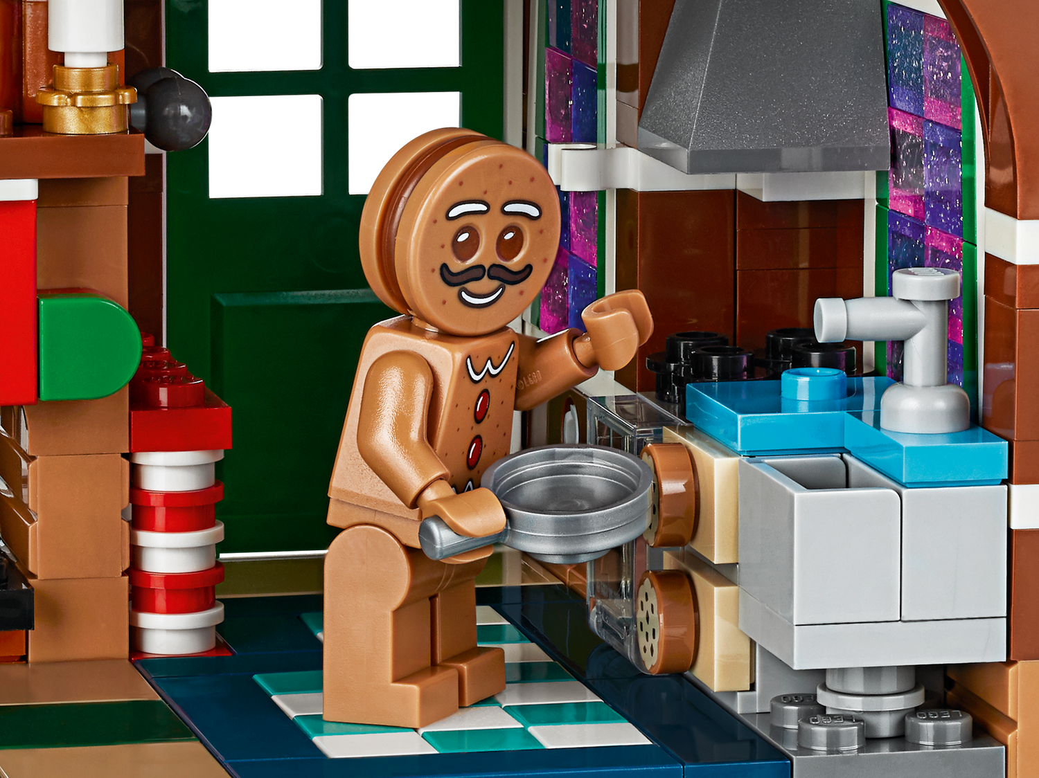 * Enthält 3 LEGO® Figuren: einen Lebkuchenmann, eine Lebkuchenfrau und ein Lebkuchenbaby.* Das Lebkuchenhaus verfügt über ein Dach mit Zuckerglasur und farbenfrohen Zuckerknöpfen, eine Fassade mit Zuckerstangensäulen und Spazierstöcken, glitzernde Fenster und einen hohen Schornstein mit einem glühenden Kamin. Außerdem gibt es einen detailreichen Innenraum, einen Kinderwagen und eine Schneefräse zum Zusammenbauen.* Der Innenraum des Lebkuchenhauses weist viele tolle Details wie Süßigkeiten-Mobiliar, ein geschmackvolles Schlafzimmer mit Schokoladenbett und Zuckerwattelampe sowie ein Badezimmer mit Toilette und Badewanne auf!* Enthält außerdem einen Weihnachtsbaum mit eingepackten Geschenken und Spielzeugen wie einem Schaukelpferd und einer Spielzeug-Eisenbahn.* Sieh dir nur einmal die köstlichen Wegweiser aus Zuckerstangen an!* Wenn du den Kamin-Knopf drückst, glüht das Feuer auf!* Kinder lieben es, auf fantasievolle Weise mit der Lebkuchenfamilie zu spielen.* Hilf der Lebkuchenfrau dabei, das Lebkuchenbaby im Kinderwagen einzukuscheln.* Die Zubehörelemente umfassen ein Babyfläschchen, Tassen, eine Bratpfanne und eine Axt.* Zu den Sonderteilen gehören ein Goldbarrenelement (neu ab August 2019) in Hellbraun und durchsichtige Glitzersteine (1x1) in Lila.* Das Lebkuchenhaus ist 21 cm hoch, 26 cm breit und 13 cm tief.