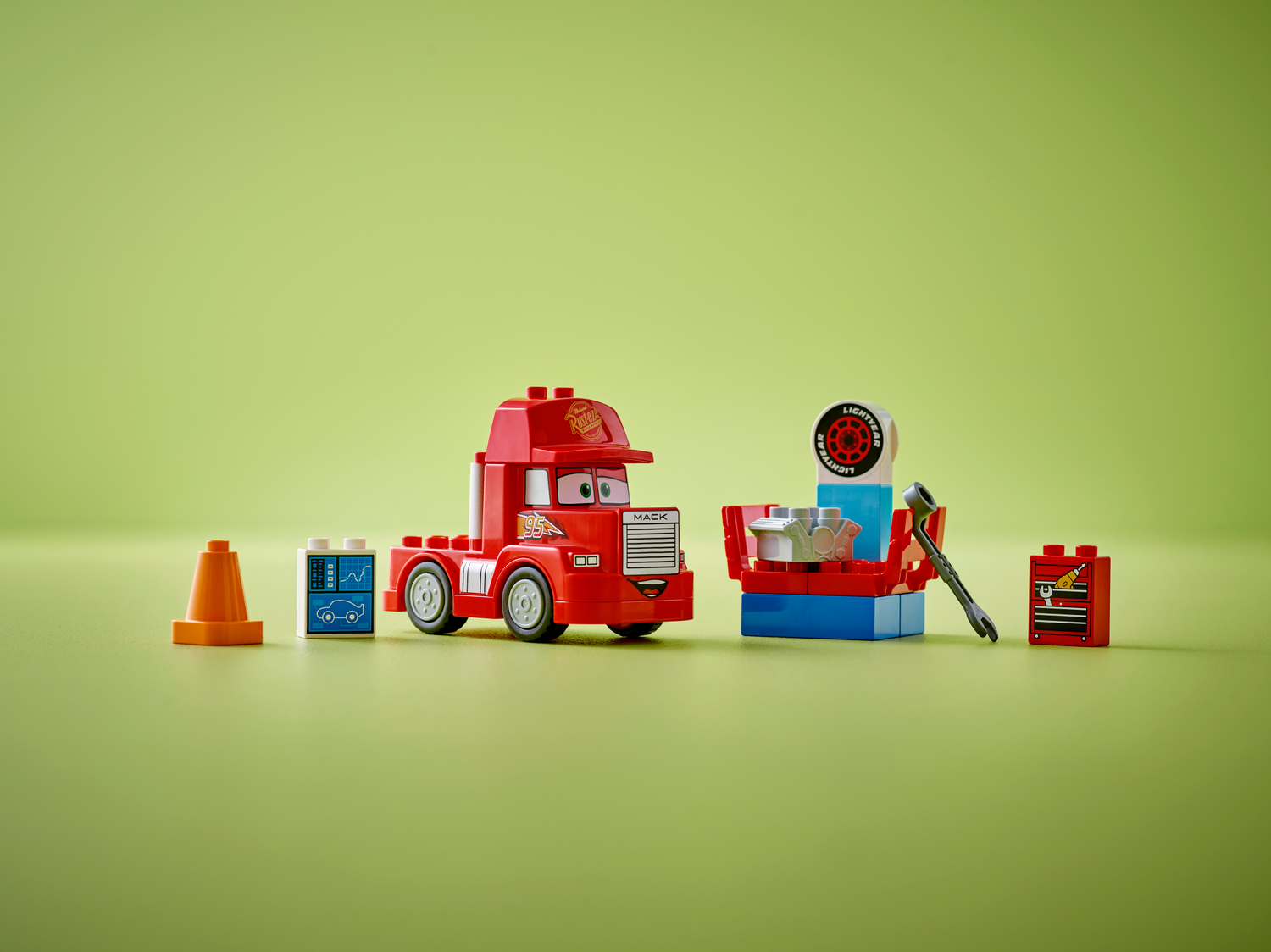 Mack beim Rennen (10417) ist ein Modell zum Bauen und Spielen für Kleinkinder, das auf der Filmreihe Cars von Disney und Pixar basiert. Das Set beinhaltet einen baubaren roten Spielzeug-Abschleppwagen.Dein Kleinkind kann dem Abschleppwagen Mack helfen, alle Teile für Lightning McQueens nächsten Boxenstopp bereitzulegen. Dein Kind kann beispielsweise Lightnings neuen Motor mit dem Schraubenschlüssel tunen. Dann hilft es Mack, Lightnings Fahrzeugdaten am Computer zu überprüfen und sich zu vergewissern, dass das Rennauto perfekt abgestimmt ist, um die anderen Flitzer zu schlagen.LEGO® DUPLO® │ Disney and Pixar’s Cars Bauspielzeuge beinhalten vertraute Figuren, coole Kulissen und faszinierende Funktionen, um Familien spannende Geschichten mit Mack aus den Filmen darstellen zu lassen. Beim gemeinsamen Spielen können Eltern unschätzbare Entwicklungsschritte ihrer kleinen Rennmechaniker miterleben.