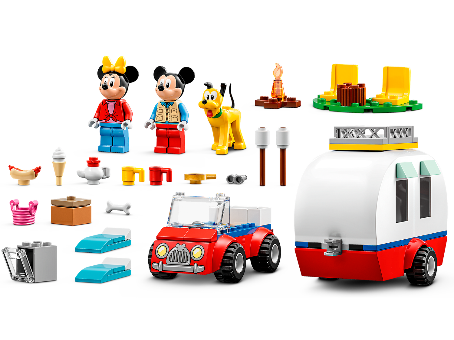 Funktionen* Viele faszinierende Abenteuer: Mit dem Set „Mickys und Minnies Campingausflug“ (10777) können Kinder ab 4 Jahren, die sich für Fahrzeuge und Camping begeistern, spannende Rollenspiele darstellen und Baufähigkeiten entwickeln* Eine ganze Box voll Spaß: Dieses Bau- und Spielset beinhaltet ein Auto, einen Wohnwagen, die beiden Minifiguren Micky Maus und Minnie Maus, die LEGO® Figur Pluto, ein Lagerfeuermodell sowie weiteres Zubehör, das zum Spielen einlädt* Erkunde die Wildnis: Dieses LEGO® ǀ Disney Set bietet Kindern riesigen Spaß, die Wohnwagen, Reisen und Campingausflüge mit der Familie und Freunden lieben. Beim Spielen entwickelt dein Kind Fantasie und Kreativität* Tolles Geschenk für Kinder ab 4 Jahren: Abenteuerlustige Fans der Disney Figur Micky Maus, die gern neue Dinge ausprobieren, werden dieses Set lieben. Ein tolles Überraschungsgeschenk, das dein Kind viele Stunden kreativ spielen lässt* Spielzeug zum Mitnehmen: Mit angehängtem Wohnwagen ist das Auto 9 cm hoch, 19 cm lang und 6 cm breit. Dank dieses kompakten Formats lässt sich das Set mühelos auf Reisen oder zum nächsten Spieltreffen mitnehmen* Interaktives Bauerlebnis: In der LEGO® Building Instructions App können junge Baumeister beim Bauen eine digitale Modellansicht vergrößern, drehen und näher betrachten und ihren Baufortschritt speichern* Unkomplizierte Modelle: Die Starter-Bauelemente in den 4+ Sets lassen Kinder rasch bauen. Auch Kinder, die gerade erst lesen lernen, können dieses fantasievolle Spielzeug mühelos mithilfe der einfachen Bauanleitung zusammensetzen* Spielerisch lernen: 4+ Bauspielzeuge vermitteln wichtige Fähigkeiten, um Kinder auf die Schule vorzubereiten, und fördern die Kommunikation, Konzentration und Kreativität sowie das Vorstellungsvermögen* Beständige Qualität: LEGO® Elemente erfüllen bereits seit 1958 die höchsten Branchenstandards, damit sie einheitlich und miteinander kompatibel sind und sich jedes Mal fest zusammenstecken und mühelos wieder trennen lassen* Sicheres Spielerlebnis: Die LEGO® ǀ Disney Mickey and Friends Bausets werden gründlich getestet, damit sie strenge Sicherheitsstandards erfüllen