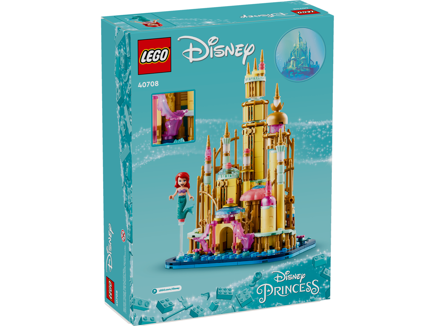Fans der Disney Princess Bauspielzeuge und des Disney Films Arielle, die Meerjungfrau ab 12 Jahren können sich auf unzählige fantasievolle Rollenspiele mit diesem Mini-Modell von Arielles zauberhaftem Palast freuen. Arielles Mini-Schloss (40708) ist mit goldenen Details verziert, beherbergt mehrere Unterwasserfunktionen und dient der beiliegenden Spielfigur Arielle als Residenz. Dieses Bau- und Spielset zum Mitnehmen gehört zur Produktreihe der separat erhältlichen Disney Mini-Bauspielzeuge.