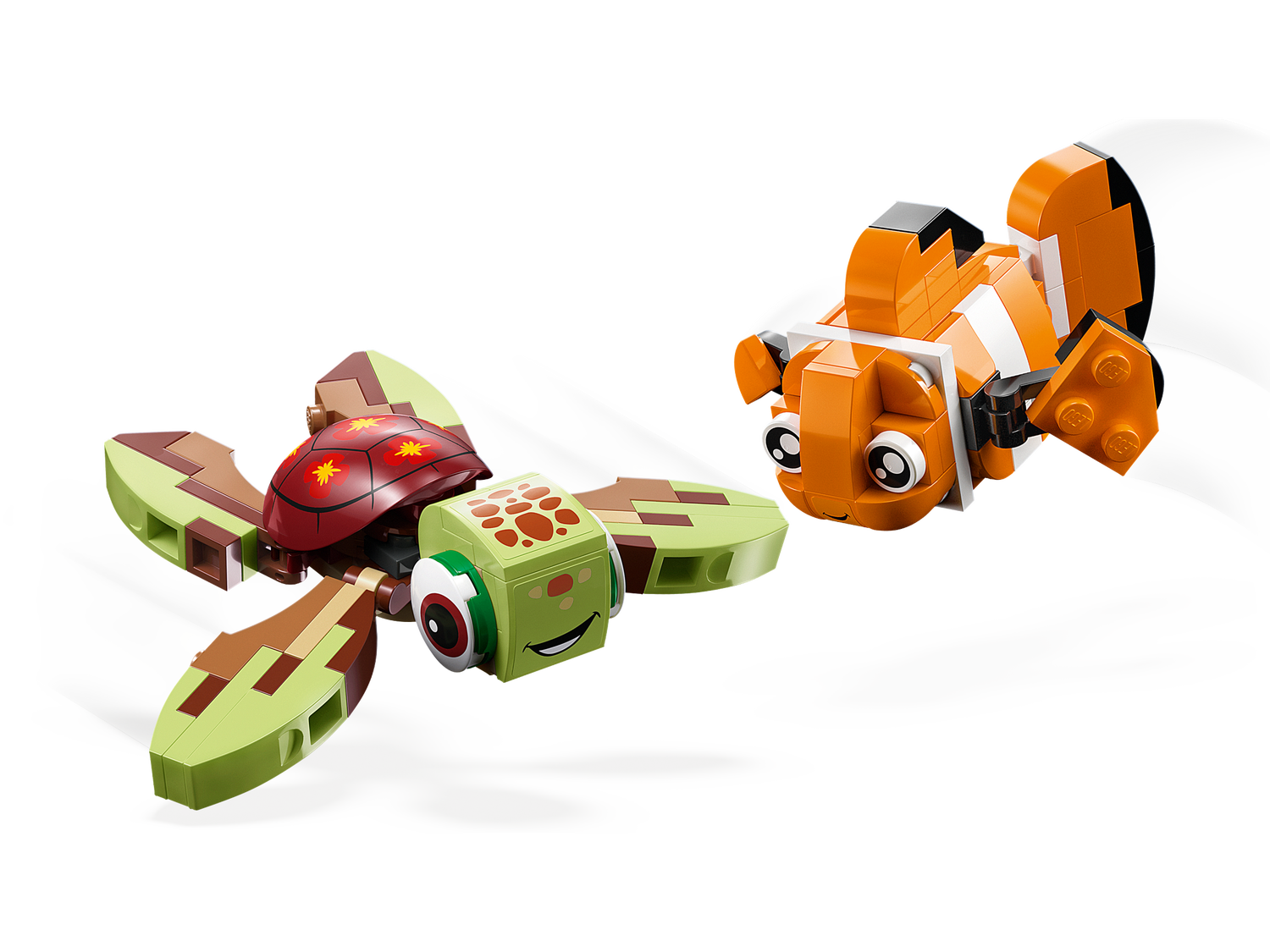 LEGO® ǀ Disney: Disney Paare (43226) werden Filmfans und Kinder ab 6 Jahren begeistern. Das Set beinhaltet 4 Paare legendärer Filmfiguren aus LEGO Steinen. Jede Figur ist beweglich, und jedes Paar steht auf Ständern, die sich mit dem Deko-Element zum 100. Disney Geburtstag verbinden lassen. Beim Bauen können sich Kinder auch auf ein intuitives Abenteuer mit der LEGO Builder App freuen, mit der sie 3D-Ansichten der Modelle vergrößern und drehen, ihren Baufortschritt verfolgen und Sets speichern können.Beliebte Disney FigurenDieses Premium-Set beinhaltet beliebte Figurenpaare: die treuen Gefährten Lumière und Herr von Unruh aus dem Disney Film Die Schöne und das Biest, Pua und Heihei aus Vaiana, Nemo und Racker aus Findet Nemo sowie Meeko und Percy aus Pocahontas. Das Set ist ein perfektes Ausstellungsstück, das alle Blicke auf sich zieht und in aller Munde sein wird.