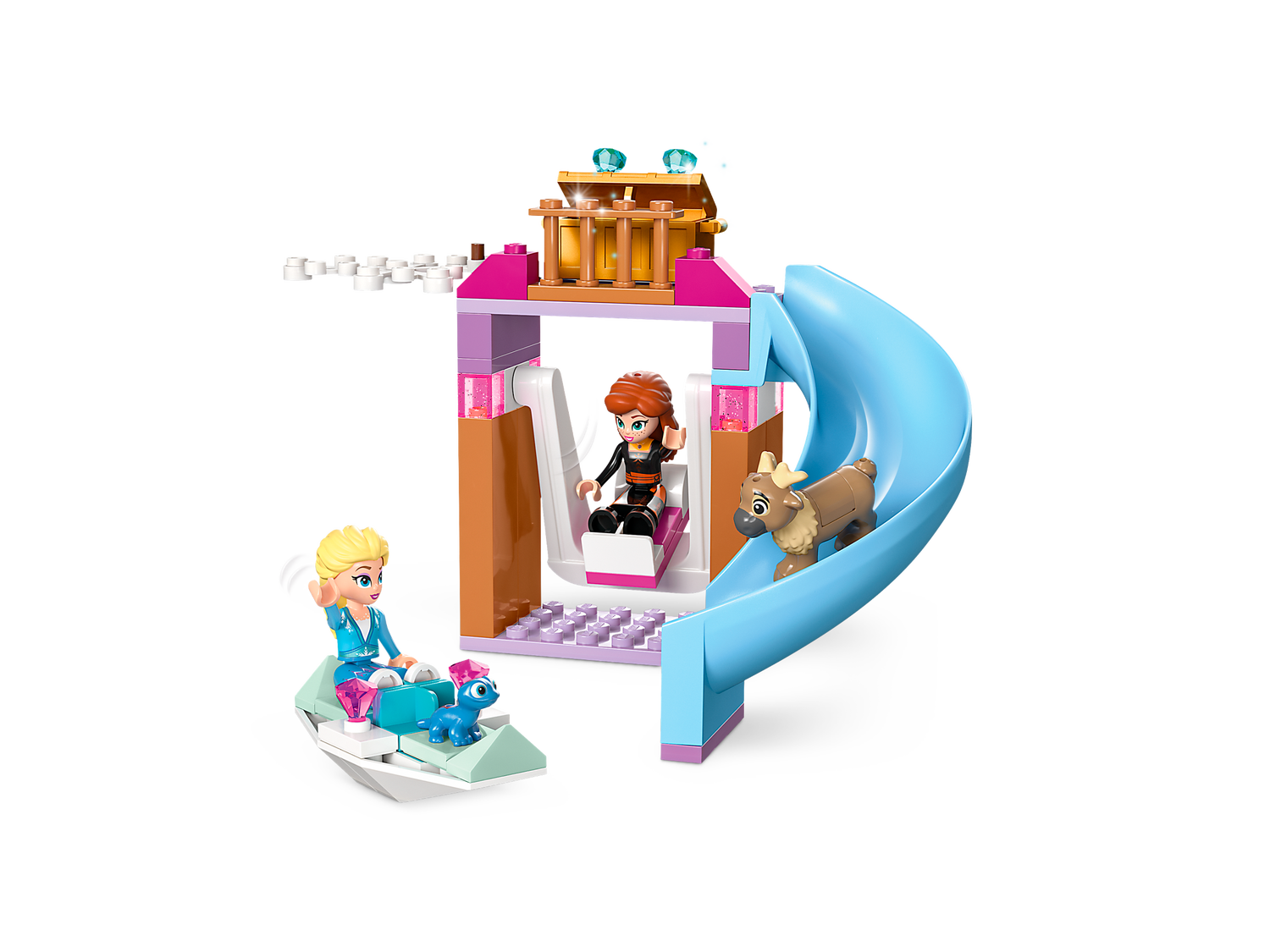 LEGO® ǀ Disney Frozen Elsas Eispalast (43238) ist ein Bauspielzeug, mit dem Kinder ab 4 Jahren das Bauen lernen und unzählige Abenteuer darstellen können. Im Palast befinden sich eine Küche, ein Kamin, ein Bereich mit Schaukel und Rutsche, ein kleines Eiskanu und viele weitere Elemente für spannende Geschichten. Das Set beinhaltet auch die LEGO ǀ Disney Spielfiguren Elsa und Anna sowie 2 LEGO ǀ Disney Tierfiguren – Bruni und ein Baby-Rentier.Dieses 4+ Bauset bietet nicht nur Kindern ein tolles Spielerlebnis, bei dem sie Selbstvertrauen entwickeln, sondern lässt auch die Eltern mitmachen. Ein Starter-Bauelement dient den Kindern als solides Fundament für das Modell. In jedem Steinebeutel befindet sich auch eine Figur, damit dein Kind rasch spielen kann. Das Bauset kann auch noch später fertiggebaut werden.Neben einer einfachen Bildanleitung, die auf Kinder zugeschnitten ist, die gerade erst das Lesen lernen, lädt auch die LEGO Builder App zu einem intuitiven Bauabenteuer ein. Dein Kind kann in der App 3D-Modellansichten vergrößern und drehen, Sets speichern und den Baufortschritt verfolgen. Dieses Bauset ist ein tolles Geschenk für Kinder, die Disney Frozen Bauspielzeuge lieben.
