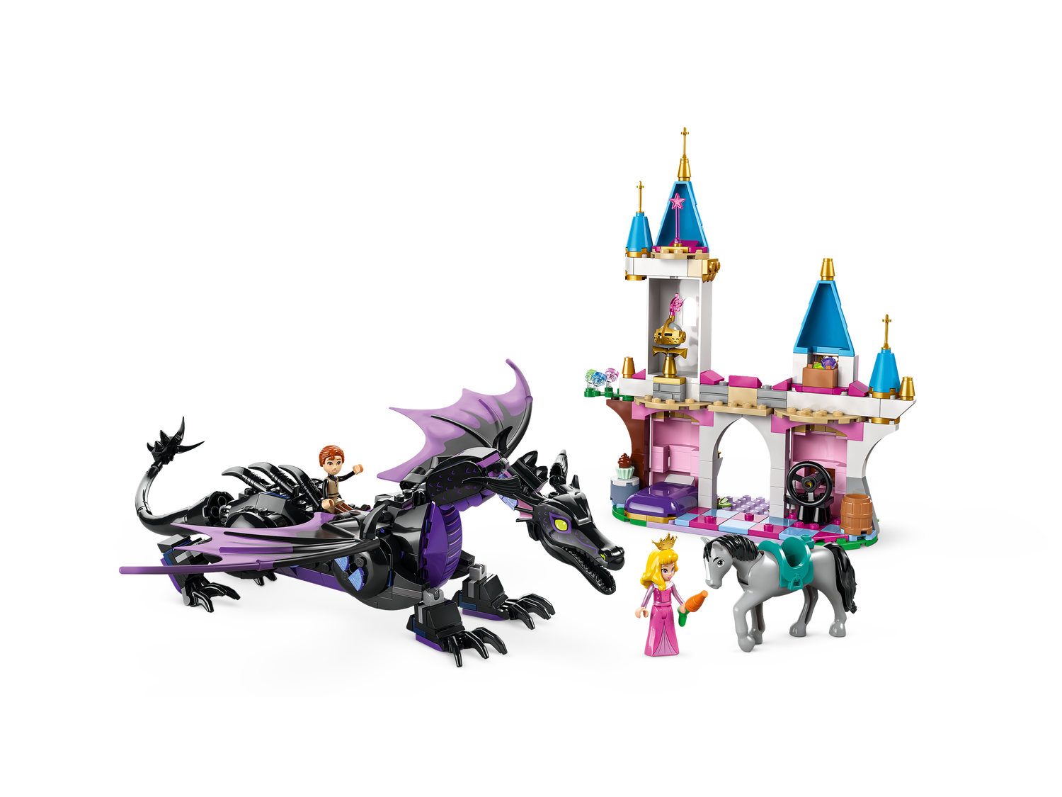 LEGO® ǀ Disney Princess Malefiz als Drache (43240) ist ein Bau- und Spielset, das Kinder und Fans des Disney Films Dornröschen ab 7 Jahren viele spannende Geschichten darstellen lässt. Dieses Bauset ist eine tolle Geschenkidee. Ein Brückensegment mit Türmen, ein Platz für ein Bett, ein drehbares Spinnrad und viele weitere Elemente laden zum Spielen ein. Genau wie die LEGO ǀ Disney Spielfiguren Aurora und Prinz Phillip, die LEGO ǀ Disney Pferdefigur Samson und der bewegliche LEGO ǀ Disney Drache. Malefiz kann Kopf, Beine und Schwanz bewegen und die Flügel anlegen.Dieses Bau- und Spielset ist auf Kinder ab 7 Jahren zugeschnitten, die beim Darstellen neuer Geschichten Selbstvertrauen entwickeln. Man kann das Set zu Spieltreffen mitnehmen und mit anderen separat erhältlichen LEGO Bausets und LEGO ǀ Disney Bauspielzeugen kombinieren. Außerdem bietet die LEGO Builder App ein ebenso einfaches wie intuitives Bauerlebnis. In der App können Kinder 3D-Ansichten der Modelle vergrößern und drehen, Sets speichern und den Baufortschritt verfolgen.
