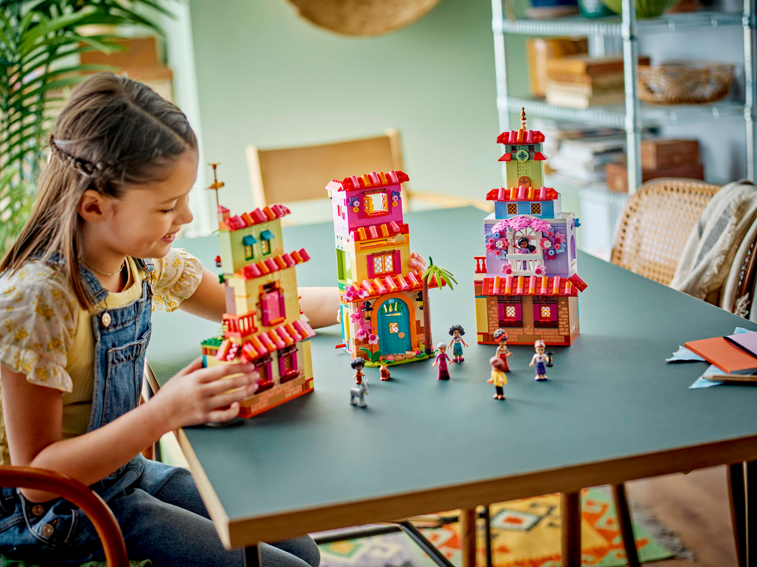 Das magische Haus der Madrigals (43245) ist ein Bauspielzeug, das Fans und Kinder ab 7 Jahren unzählige Abenteuer aus dem Film Encanto darstellen lässt. Dieses LEGO® ǀ Disney Bau- und Spielset ist eine tolle Geschenkidee. Das Haus der Familie Madrigal besteht aus 9 Segmenten, damit die ganze Familie miteinander bauen kann. Bewegliche Dachschindeln, klappernde Fensterläden, eine Bettschaukel und eine kleine Schublade sind nur einige Funktionen.Dieses Bauset ist eine tolle Geschenkidee. Die LEGO ǀ Disney Spielfiguren Mirabel, Abuela, Isabela, Dolores, Luisa und Camilo, die LEGO ǀ Disney Mikro-Spielfigur Antonio sowie 2 LEGO ǀ Disney Tierfiguren laden zum Spielen ein. Kinder und Erwachsene können sich an zahlreichen Details erfreuen. Für noch mehr Spielspaß kann man das Haus aber auch mit anderen separat erhältlichen LEGO Bausets für Kinder oder mit LEGO ǀ Disney Bauspielzeugen kombinieren.Die LEGO Builder App bietet ein ebenso leichtes wie intuitives Bauerlebnis. In der App können Kinder 3D-Ansichten der Modelle vergrößern und drehen, Sets speichern und den Baufortschritt verfolgen.