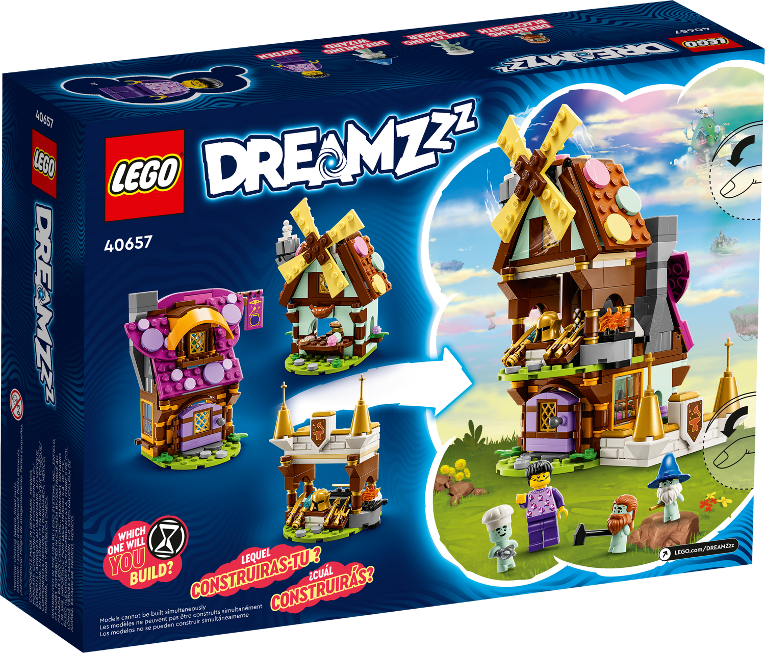 Lass Kinder ab 7 Jahren mit diesem faszinierenden Traumdorf (40657) eine magische Kulisse aus der TV-Serie LEGO® DREAMZzz™ erkunden. Das Bau- und Spielset stellt einen Ort dar, den die Heldinnen und Helden der Serie häufig im Schlaf besuchen. In dem Dorf befinden sich die unterschiedlichsten Traumwesen und charmante Geschäfte wie der Zauberladen, die Bäckerei und die Schmiede. Kinder können so tun, als würden sie dort einkaufen gehen, oder die enthaltenen Module zu einem Festungsturm stapeln, um für die Angriffe der Albgnome gerüstet zu sein.