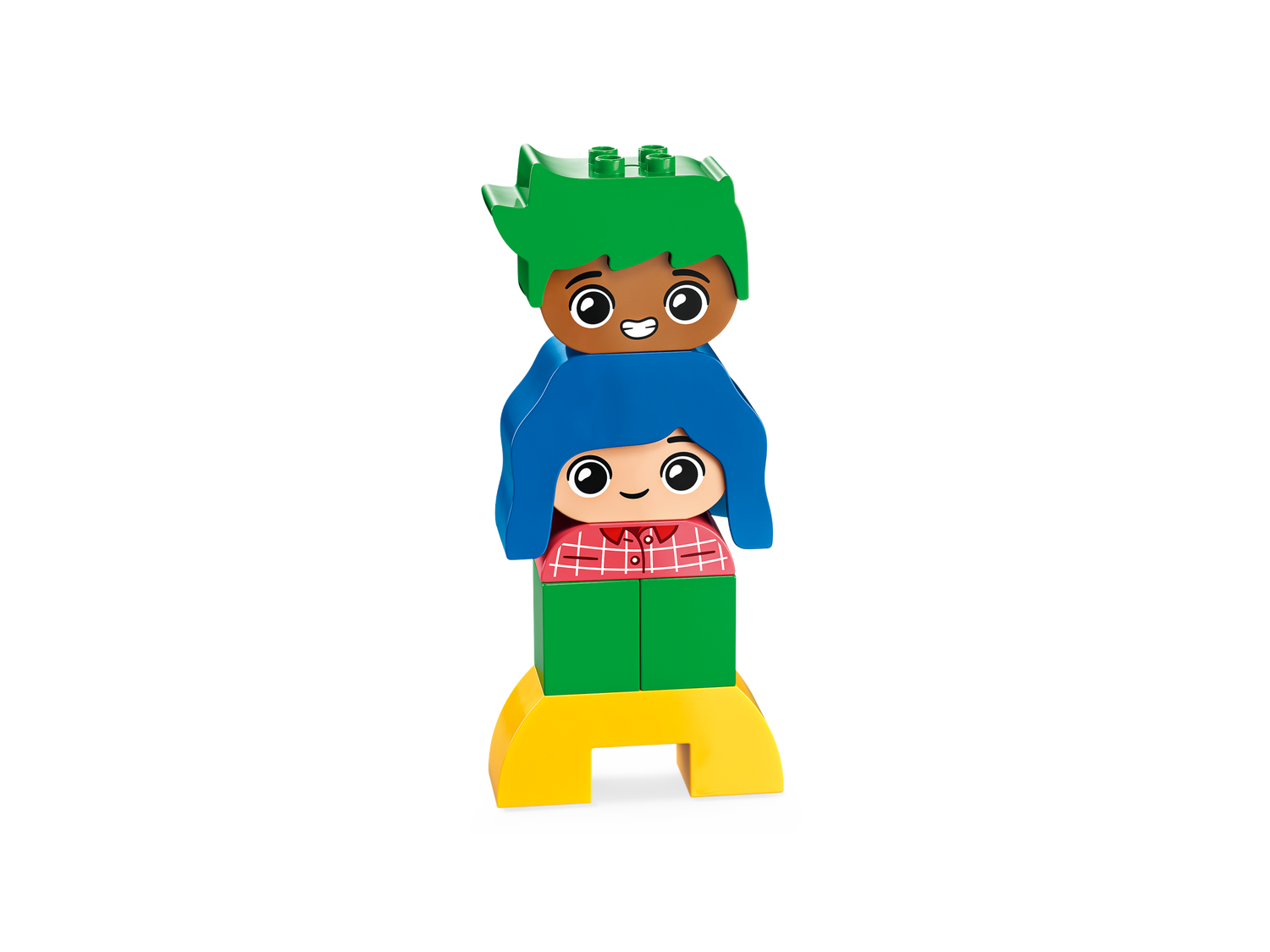 LEGO® DUPLO® Große Gefühle (10415) ist ein Lernspielzeug, das Kleinkinder ihre emotionalen Reaktionen entdecken lässt. Das Set beinhaltet 4 ganz verschiedene Figuren mit jeweils 2 unterschiedlichen Gesichtern, damit Vorschulkinder die Miene der Spielzeugfiguren verändern und auf diese Weise vermitteln können, wie sie sich fühlen.Neugierige Kleinkinder erkennen schnell, dass Menschen ganz unterschiedlich aussehen können. Dieses inklusive Spielzeug lässt Kinder erkunden, wie sehr sich zwei Menschen voneinander unterscheiden können. Wenn Kleinkinder die bunten Steine aufeinanderstecken, um die Figuren zu bauen, entwickeln sie Kreativität und Fingerfertigkeit. Außerdem hat dein Kind die Wahl, ob es die Haare und die Kleidung der Figuren mitfarblich übereinstimmenden oder kontrastierenden Steinen darstellt.Dieses LEGO DUPLO Spielset beinhaltet Steine in faszinierenden Formen, die kleine Finger gern näher erkunden werden. Auf jeden Fall lässt dieses Spielzeug Kleinkinder unendlich kreativ spielen.
