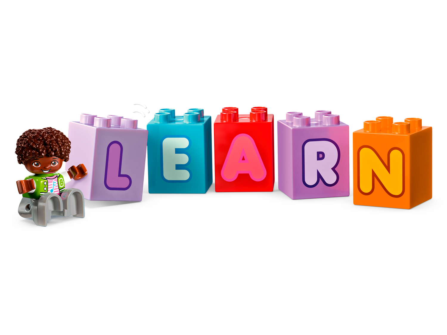 Der LEGO® DUPLO® Town ABC-Lastwagen (10421) ist ein tolles Bauspielzeug, das Vorschulkindern hilft, die Buchstaben zu lernen.Dieses kreative ABC-Spielzeug lässt Vorschulkinder ganz spielerisch lernen. Wenn Kleinkinder den Anhänger an den Spielzeug-LKW ankoppeln und den beiden LEGO DUPLO Figuren helfen, die Steine auf- und abzuladen, erkennen sie erste Buchstaben, lernen die Farben, verbessern ihre Sprechfähigkeit und entwickeln Fingerfertigkeit.Das fantasievolle Zubehör beinhaltet auch ein LEGO DUPLO ABC-Buch und eine Stereoanlage, die Eltern und Kleinkinder dazu anregen sollen, miteinander die Buchstaben zu singen. Dieses entwicklungsfördernde Spielzeug ermutigt Vorschulkinder, sich kreative eigene Geschichten auszudenken, in den Spielzeug-LKW zu steigen und zum nächsten Abenteuer loszubrausen!Lass Kleinkinder mit LEGO DUPLO Bauspielzeugen tolle erste Entwicklungsschritte machen, ganz frei und kreativ spielen, sich selbst darstellen und ganz viel lernen.