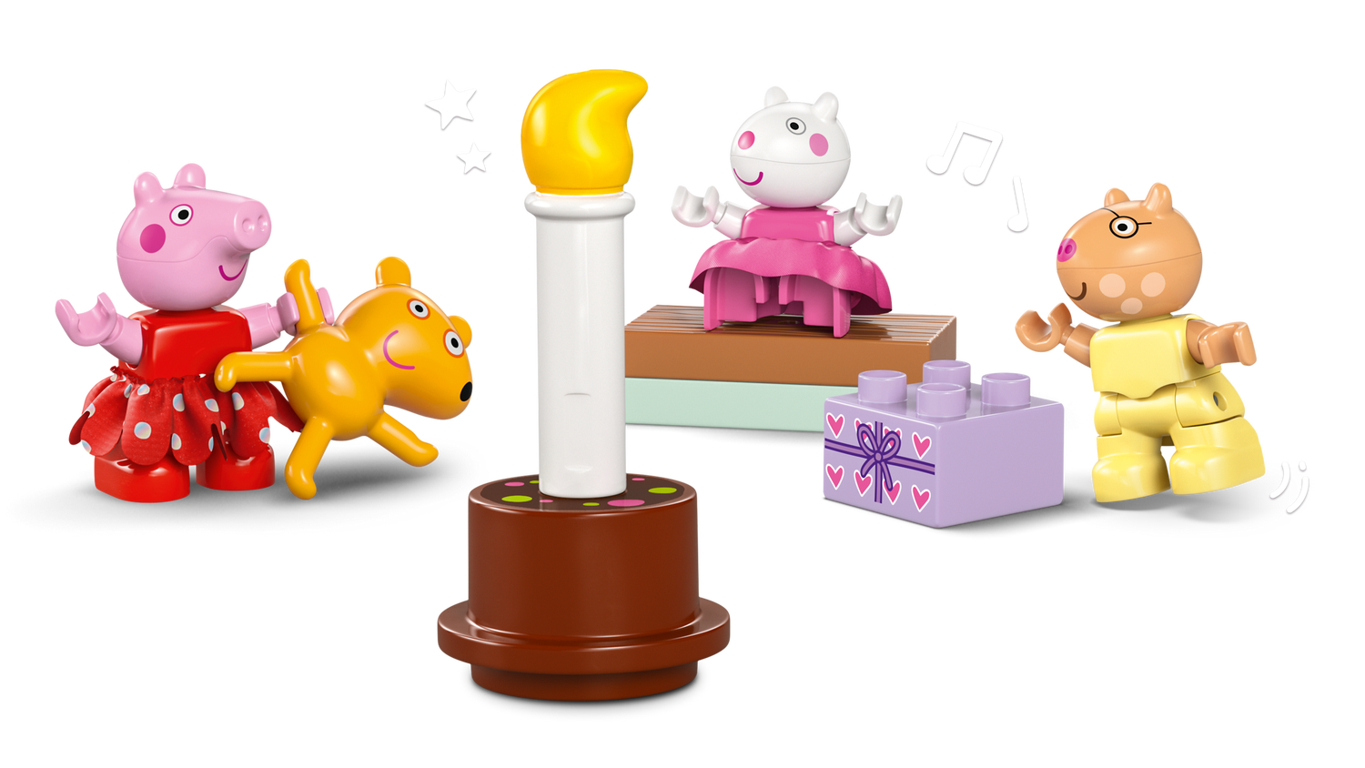 Überrasche Fans von Peppa mit einer Einladung zur Party! Peppas Geburtstagshaus (10433) lässt Mädchen und Jungen ab 2 Jahren mit Peppa und ihren Freunden feiern.Dieses Spielzeug strotzt vor Funktionen, die Kleinkinder aus der TV-Serie Peppa Wutz kennen. Das Spielset beinhaltet die Figuren Peppa, Pedro Pony und Luzie Locke sowie Peppas Teddy. Über eine Leiter gelangt man ins Schlafzimmer des legendären Hauses. Und in der Küche können Kleinkinder so tun, als würden sie eine Geburtstagstorte backen. Am Waschbecken im Badezimmer können Erwachsene erklären, wie wichtig das Händewaschen ist – vor allem bevor man Torte isst!LEGO® DUPLO® Peppa Spielzeuge zum Bauen und Umbauen sollen Vorschulkindern einige Fähigkeiten beibringen. Kleinkinder lernen, logisch zu denken, wenn sie das echte Leben nachstellen, den typischen Ablauf einer Party darstellen und Freunde begrüßen, Geschenke überreichen und die Torte anschneiden. Wenn sich Kleinkinder vorstellen, wie viel Spaß es machen würde, an solch einer fröhlichen Feier teilzunehmen, lernen sie ihre Gefühle auszudrücken.