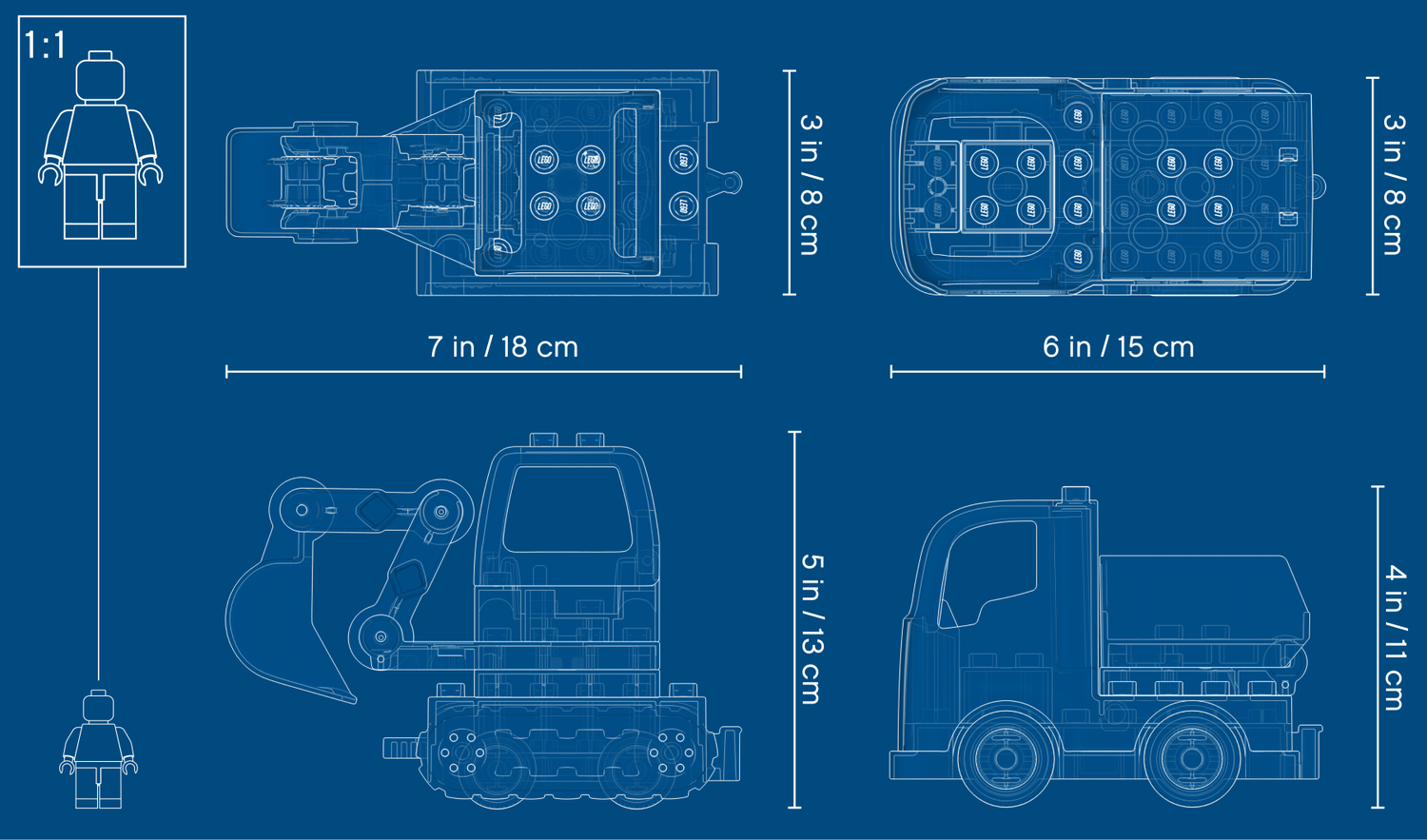 * Eltern und Kleinkinder können sich mit dem LEGO® DUPLO® Bauspielzeug „Bagger und Laster“ (10931) gemeinsame Rollenspiele auf der Baustelle ausdenken. Bei unzähligen Spielerlebnissen entwickeln Kleinkinder Fähigkeiten fürs ganze Leben.* Enthält 2 Bauarbeiterfiguren in modernem Outfit, einen Laster mit Kippmulde und einen Bagger mit rotierender Schaufel als Schiebefahrzeuge, sowie einen Spielzeug-Felsbrocken, den Kinder auseinanderbrechen können.* Wenn Eltern und Betreuungskräfte bei den fantasievollen Rollenspielen auf der Baustelle mitmachen, können sie wichtige Entwicklungsschritte ihres kleinen Baumeisters miterleben. Beim Steuern der Fahrzeuge verbessern Kinder ihre Feinmotorik und Problemlösefähigkeit.* Dieses Baustellenset ist das beste Spielzeug für die wachsenden Bedürfnisse eines Kleinkinds, denn es enthält jede Menge Details und Funktionen, um neugierige Kinder ab 2 Jahren zu inspirieren.* Der Laster ist 11 cm hoch, 14 cm lang und 7 cm breit, und der Bagger ist 12 cm hoch, 18 cm lang und 7 cm breit. Das ist die perfekte Größe, um von kleinen Händen aufgehoben und woanders abgesetzt zu werden.* Keine Batterien erforderlich. Dem LEGO® DUPLO® Spielset „Bagger und Laster“ reicht die Fantasie der Kinder als Antrieb, um das aktive und kreative Spielvergnügen niemals enden zu lassen!* Verständliche Bauanleitungen bieten maximalen Bauspaß und fördern die Entwicklung, damit Eltern und Kleinkinder sofort nach dem Auspacken das Beste aus dem vielseitigen Spielsetherausholen.* LEGO® DUPLO® Spielsets sollen Kleinkinder beschäftigen und inspirieren. Vertraute Kulissen, lustige Figuren und kleinkindgerechte Teile sorgen dafür, dass kleine Baumeister beim Spielen ihrer Fantasie freien Lauf lassen können.* Bereits seit 1969 entsprechen LEGO® DUPLO® Spielzeuge für Kleinkinder den höchsten Branchenstandards. Deshalb können kleine Finger die Steine jedes Mal mühelos greifen, zusammenstecken und wieder trennen* Bei der LEGO Gruppe werden die Steine und Teile, aus denen die LEGO® DUPLO® Spielsets bestehen, strengen Fall-, Hitze-, Druck- und Torsionstests unterzogen und gründlich analysiert, damit die Spielzeuge der kleinen Baumeister den höchsten globalen Sicherheitsstandards entsprechen.