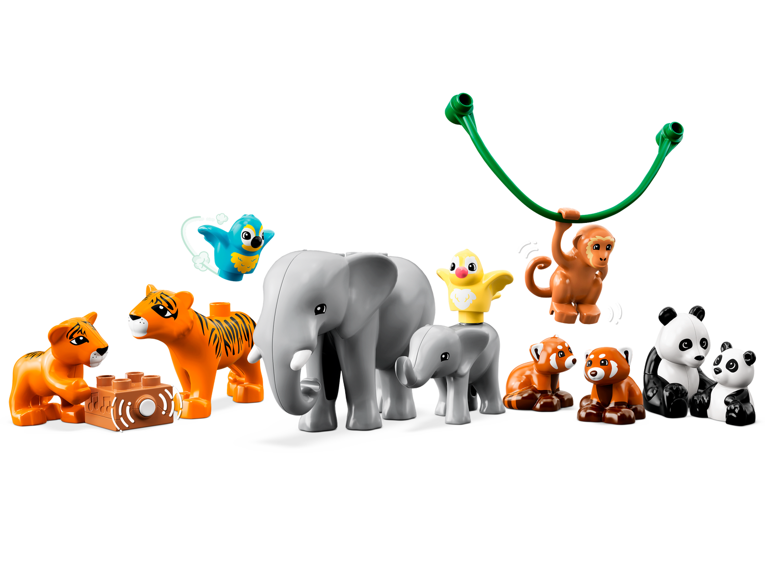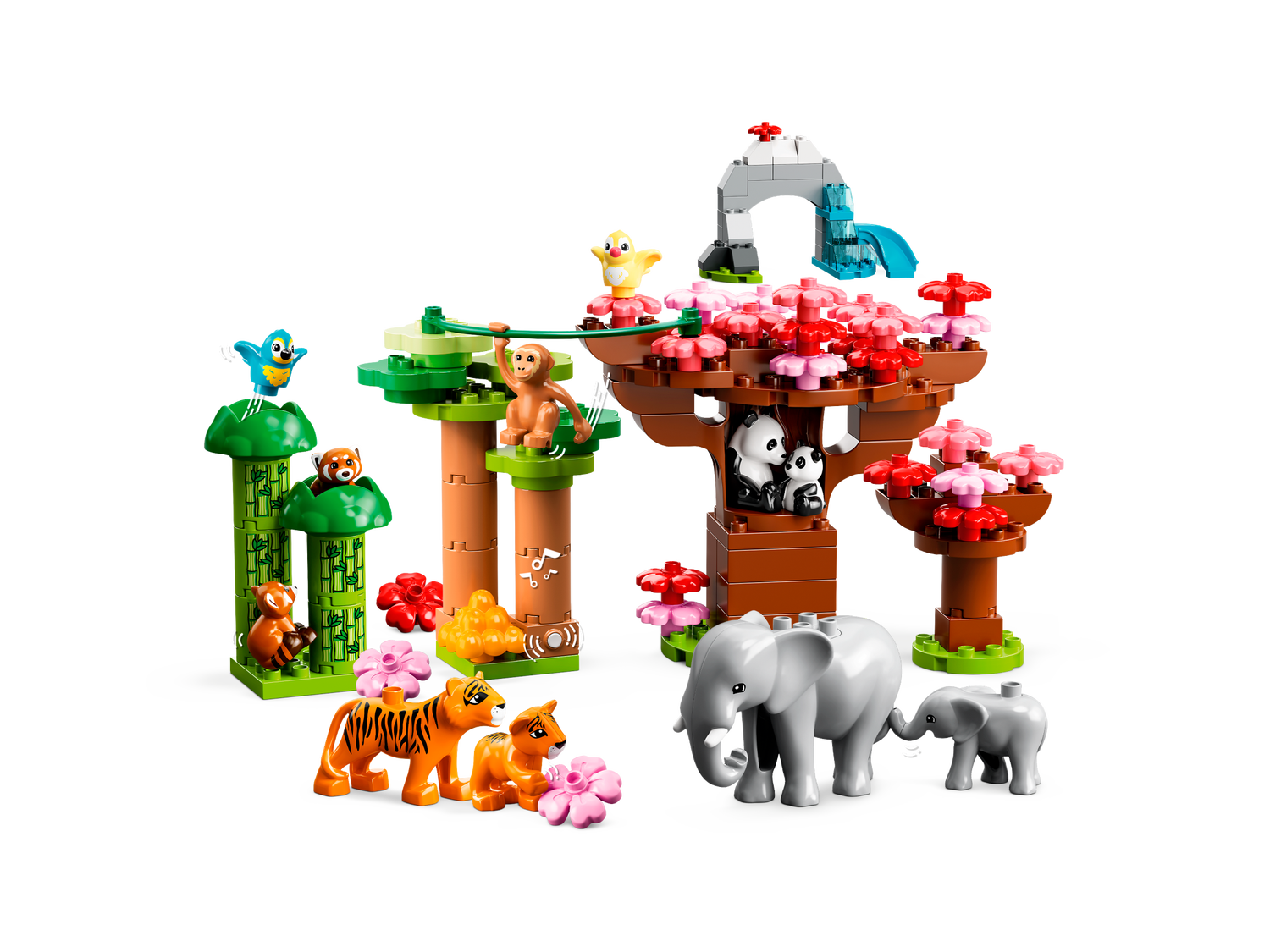* Entdecke die asiatische Wildnis: Das LEGO® DUPLO® Spielset „Wilde Tiere Asiens“ (10974) ist eine detailreiche Nachbildung natürlicher Lebensräume in Asien und stellt viele heimische Tiere und Pflanzen sowie authentische Laute dar* Faszinierende Tierwelt: Das Set beinhaltet einen erwachsenen Elefanten, einen Baby-Elefanten, Pandas und Tiger, einen Affen, 2 Vögel und 2 Rote Pandas. Neben einer 3-dimensionalen Spielmatte sind außerdem blühende Kirschbäume und Bambus enthalten* Entwicklungsförderndes Spielvergnügen: Dieses faszinierende Spielset stellt Vorschulkindern die Tiere Asiens in ihrem natürlichen Lebensraum vor und fördert die Entwicklung sprachlicher, sozialer, kognitiver und feinmotorischer Fähigkeiten* Geschenk für junge Tierfreunde: Kinder ab 2 Jahren, die exotische Tiere mögen, werden dieses Geburtstags-, Weihnachts- oder Überraschungsgeschenk lieben* Unzählige Spielmöglichkeiten: Die Spielmatte ist 36 cm hoch, 46 cm breit und 24 cm tief. Der blühende Kirschbaum ist 25 cm hoch* Spielerisches Lernen: Alle LEGO® DUPLO® Sets sind mit diversen Figuren und vielen Details fachkundig konzipiert, damit dein Kind fesselnde Geschichten darstellen und erste GROSSE Entwicklungsschritte machen kann* Beständige Qualität: LEGO® DUPLO® Elemente erfüllen bereits seit 1969 strenge Branchenstandards, damit kleine Finger die Steine leicht greifen, platzieren und wieder zerlegen können* Garantiert sicher: LEGO® DUPLO® Steine und Teile werden Fall-, Hitze-, Druck- und Torsionstests unterzogen und analysiert, damit sie strenge globale Sicherheitsstandards erfüllen