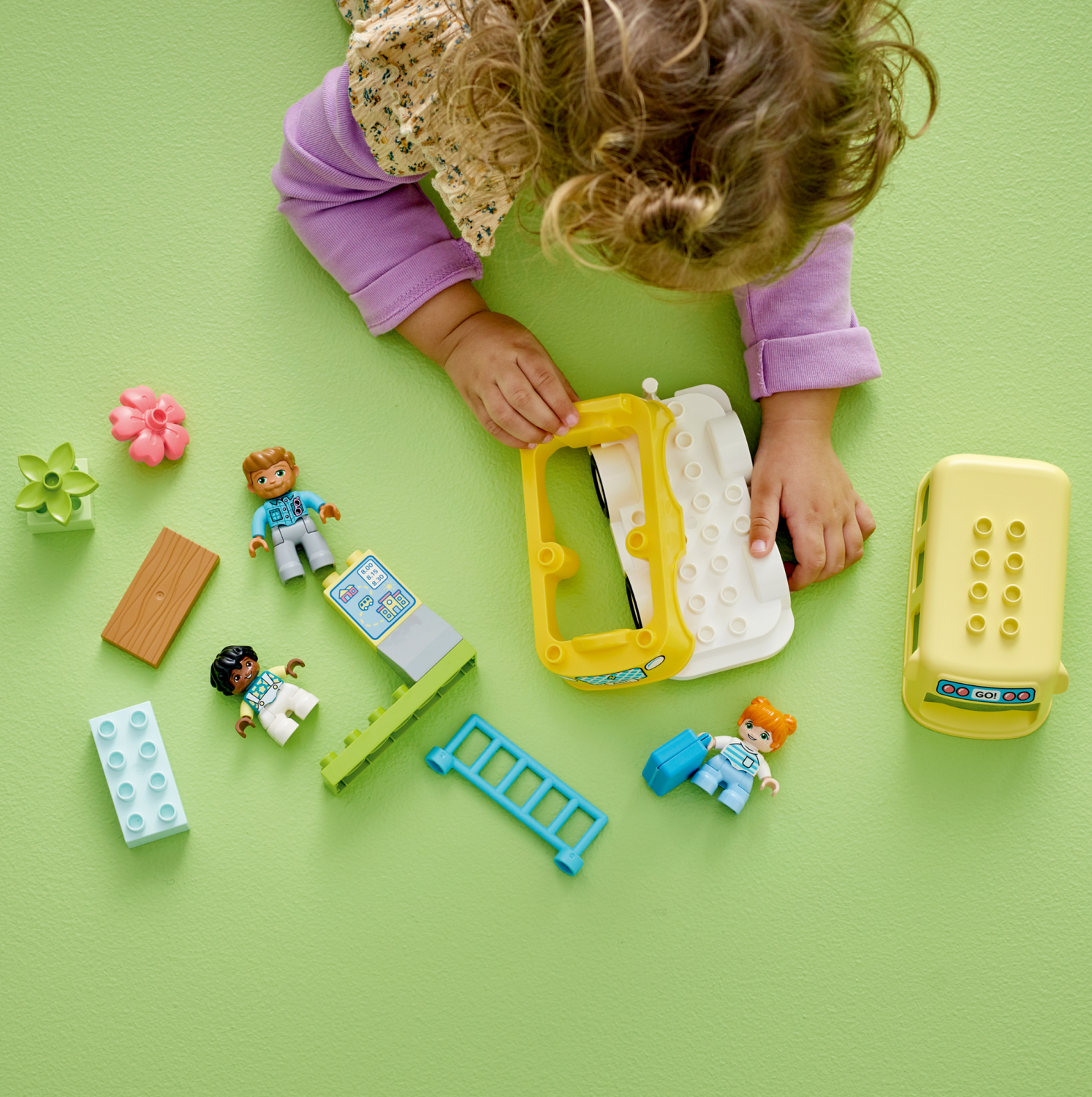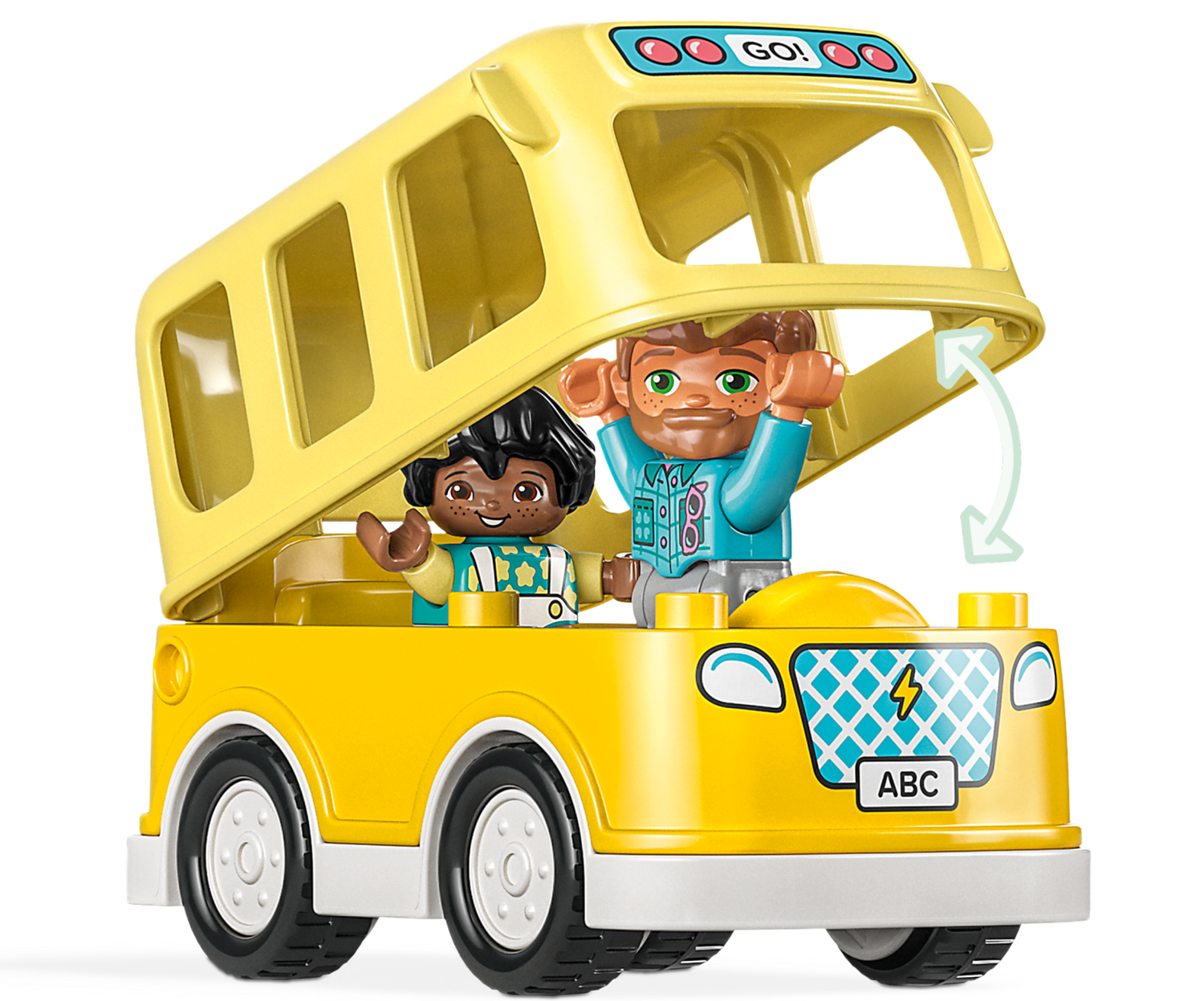 * Entwicklungsfördernder Schulbus: LEGO® DUPLO® Town Die Busfahrt (10988) lässt Kleinkinder ab 2 Jahren auf ein tolles Alltagsabenteuer gehen. Ganz spielerisch entwickeln sie dabei eine bessere Fingerfertigkeit sowie soziale Kompetenzen* Unterschiedliche Figuren und authentische Details: Dieses Spielset für Vorschulkinder beinhaltet 2 Kinder und einen Fahrer, einen Bus mit abnehmbarem Dach, eine Bank, ein Verkehrsschild, einen Uhrenturm und eine baubare Blume* Weck die Fantasie deines Kindes: Die Figuren stellen sich an der Bushaltestelle in einer Reihe an und schauen auf die Uhr, steigen in den Bus, inspizieren den Inhalt ihrer Lunchboxen und fahren zur Kita* Lernspielzeug: Vorschulkinder üben, wie man geduldig auf den Bus wartet, tun so, als würden sie sich mit anderen Kindern anfreunden, und entwickeln eine bessere Fingerfertigkeit, wenn sie das Dach des Busses abnehmen, um die Figuren hineinzusetzen* Geschenk für Kinder ab 2 Jahren: Dieses Bau-, Spiel- und Lernset wird jedes Vorschulkind begeistern, das Fahrzeuge liebt und gern seinen Alltag nachstellt* Reichlich Platz für kleine Finger: Dieser LEGO® DUPLO® Bus ist 7 cm hoch, 14 cm lang und 10 cm breit* Digitale Bauanleitung: In der LEGO® Builder App ist eine digitale Version der Bauanleitung zu diesem Set verfügbar* Lernspielzeuge für die ganze Familie: Alle LEGO® DUPLO® Sets beinhalten bunte Steine und vielfältige Figuren für spannende Geschichten, damit Kinder und Eltern beim Spielen kostbare Momente miteinander erleben können* Qualitätsprodukt: LEGO® DUPLO® Elemente erfüllen bereits seit 1969 strenge Branchenstandards, damit kleine Finger die Teile leicht greifen, platzieren und wieder trennen können* Sicherheit hat Vorrang: Dieses LEGO® DUPLO® Kita-Spielset wurde gründlichst getestet, damit es die strikten globalen Sicherheitsstandards erfüllt