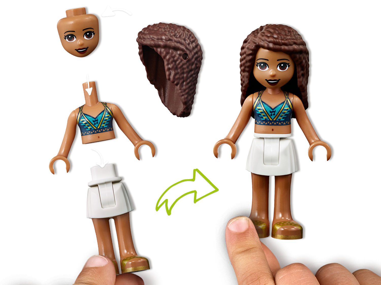 * Das detailreiche Spielset „Strandhaus mit Tretboot“ (41428) wird Kinder viele Stunden beschäftigen. Jede Menge coole Details wie die DJ-Dachterrasse, die Snackbar und die Hängematte lassen Kinder in eine kreative Spielwelt ohne Grenzen eintauchen!* Kinder werden gerne in die Rolle der LEGO® Friends Heldinnen Mia and Andrea schlüpfen und sich als baubare Spielfiguren am Strand vergnügen. Es gibt auch eine Flamingofigur (neu ab Juni 2020) und eine Delfinfigur, um die Mädchen endlose Ferienabenteuer erleben zu lassen.* Kinder können so tun, als würden sie mit dem Spielzeug-Surfbrett auf den Wellen reiten, sich in der Hängematte unter den Palmen sonnen oder sich mit den Spielfiguren im Schlafzimmer ausruhen. Das Dach lässt sich aufklappen, um eine DJ-Terrasse preiszugeben.* Dieses Bauspielzeug ist ein tolles Geburtstags- oder Weihnachtsgeschenk für Kinder ab 6 Jahren, die fantasievolle Rollenspiele lieben. Das 444-teilige Spielset bereitet auch allen Baumeistern Freude, die Spaß an eigenen Bauprojekten haben.* Das Strandhaus ist 17 cm hoch und 21 cm breit. Das fertige Modell beeindruckt auch als Schaustück. Dieses Spielzeug-Strandhaus ist ein tolles Geschenk für Kinder und lässt sich mit anderen LEGO® Sets kombinieren, um noch mehr kreativen Spielspaß zu bieten.* Für dieses Set werden keine Batterien benötigt, um echtes Sommervergnügen zu erleben. Die Fantasie der Kinder reicht völlig, um sich unterwegs kreativ zu beschäftigen.* Wie allen anderen LEGO® Bausets liegt auch diesem Spielset eine bestens verständliche Bauanleitung bei, der Kinder ab 6 Jahren mühelos folgen können, um das Modell ohne die Hilfe von Erwachsenen zu bauen. Das fördert ihre Unabhängigkeit und stärkt ihr Selbstvertrauen.* Tolles Set, um junge Baumeister für die LEGO® Friends Themenwelt zu begeistern. In Heartlake City werden Kinder herzlich willkommen geheißen. Dort können sie an der Seite ihrer besten Freundinnen alles erreichen, was ihnen am Herzen liegt.* LEGO® Spielzeuge erfüllen die höchsten Branchenstandards sowie die Qualitätskriterien der LEGO Gruppe, damit kleine Finger die Steine leicht greifen, zusammenstecken und wieder trennen können. Seit 1958 hat sich an diesem Qualitätsanspruch nichts geändert.* Die LEGO Gruppe testet ihre Spielsets, damit alle Steine und Teile den höchsten globalen Sicherheits- und Qualitätsstandards entsprechen. Deshalb zählen die Sets zu den besten – und sichersten – Kinderspielzeugen.