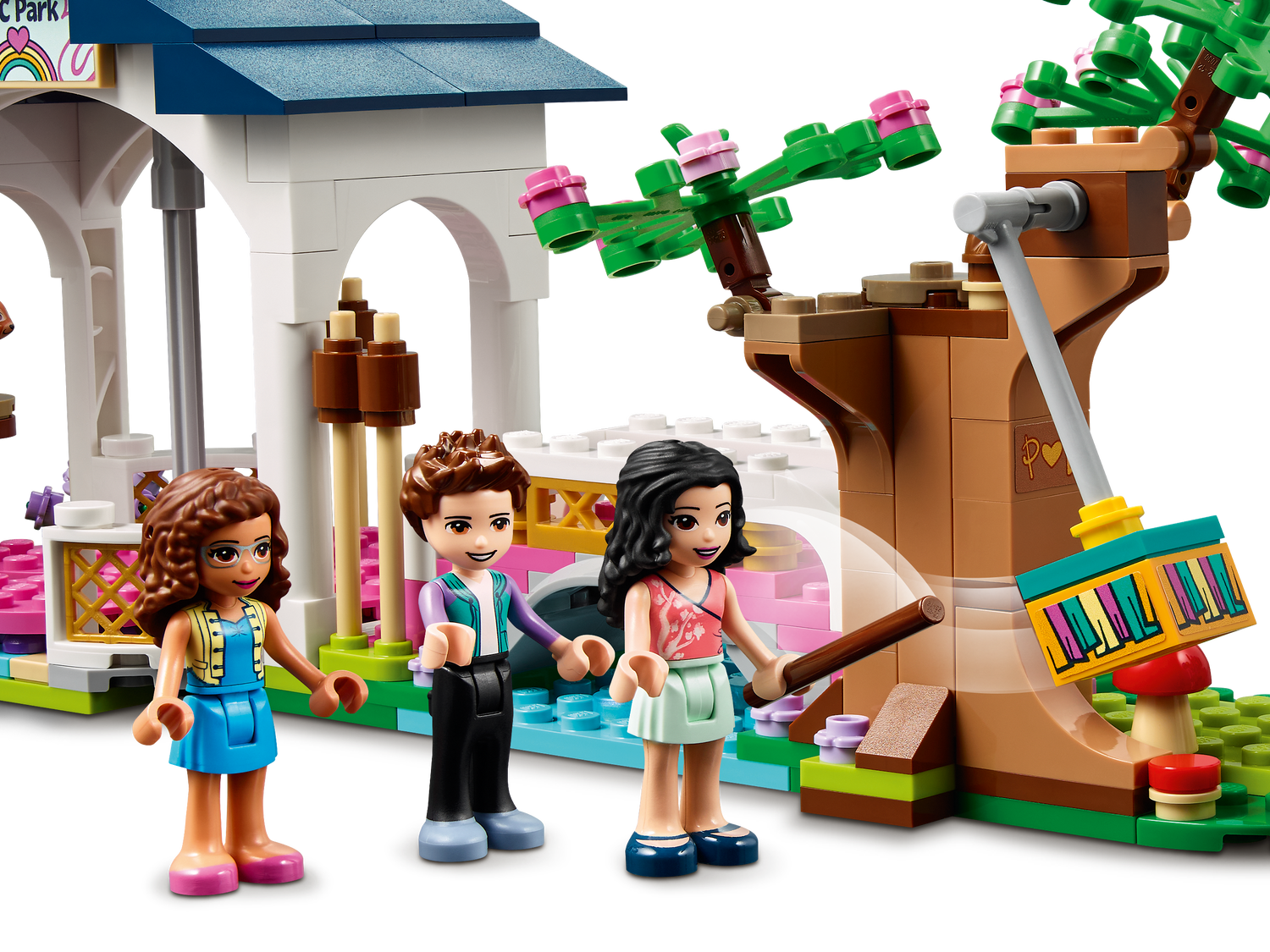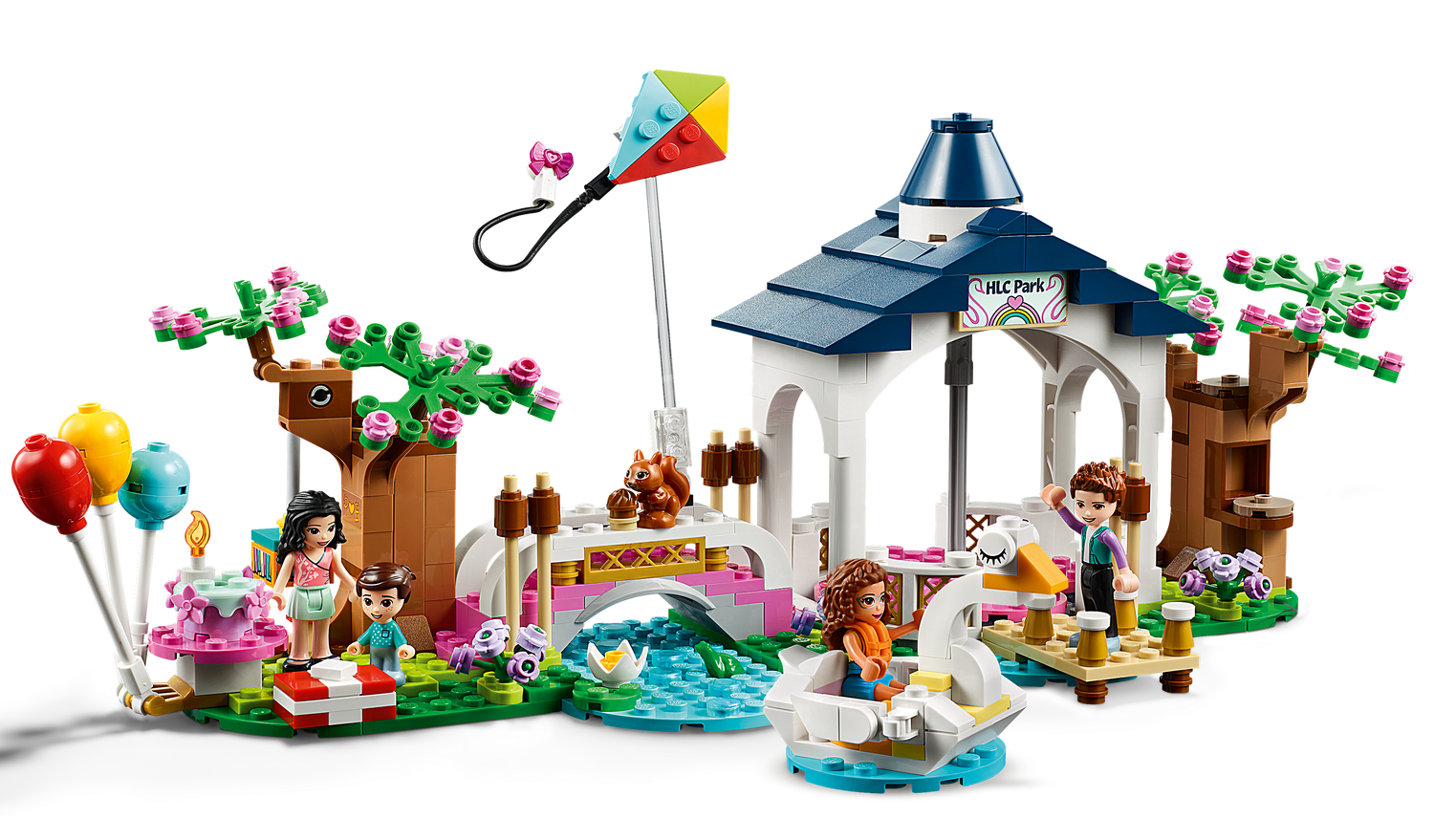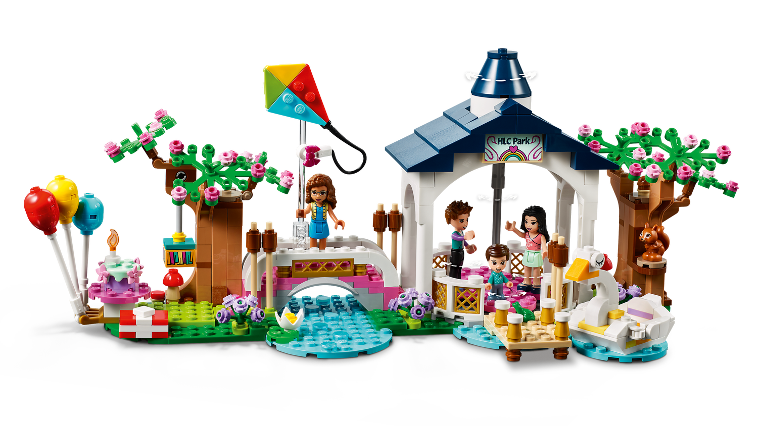 Mit dem LEGO® Friends Spielset „Heartlake City Park“ (41447) bekommen kleine Baumeister die Einladung zu einer spektakulären Party. Kinder, die am liebsten Zeit mit ihren Freunden verbringen, werden Henry gerne bei seiner Geburtstagsparty aushelfen.Die Besonderheit liegt im Detail. Dieses LEGO® Friends Spielset enthält jede Menge inspirierende Elemente sowie 3 Spielfiguren und 1 Mikro-Spielfigur, mit denen Kinder kreativ werden und sich eigene Freundschaftsgeschichten ausdenken können. Sie können die Piñata zerschlagen, damit es Süßigkeiten regnet, ihre Freunde auf die drehende Tanzfläche im Pavillon begleiten oder auf dem See eine Runde im eleganten Schwanenboot drehen. Tolles Zubehör wie die LEGO® Luftballons, ein Drachen mit flexiblem Schwanz und eine Nuss fürs Eichhörnchen wecken die Fantasie.Jeder ist willkommen!Kleine Baumeister lernen Heartlake City kennen, wo Kinder tolle Freundschaften schließen und jeder herzlich zum Mitspielen eingeladen ist.