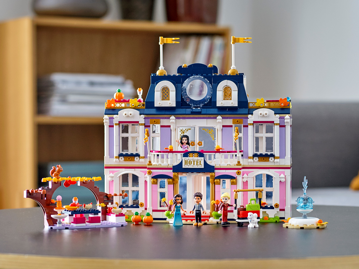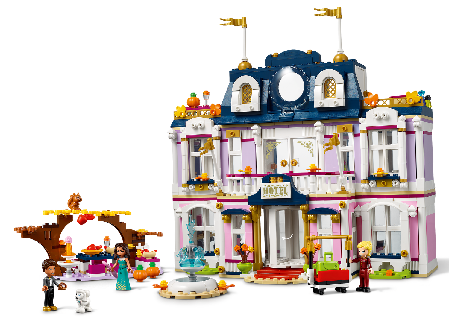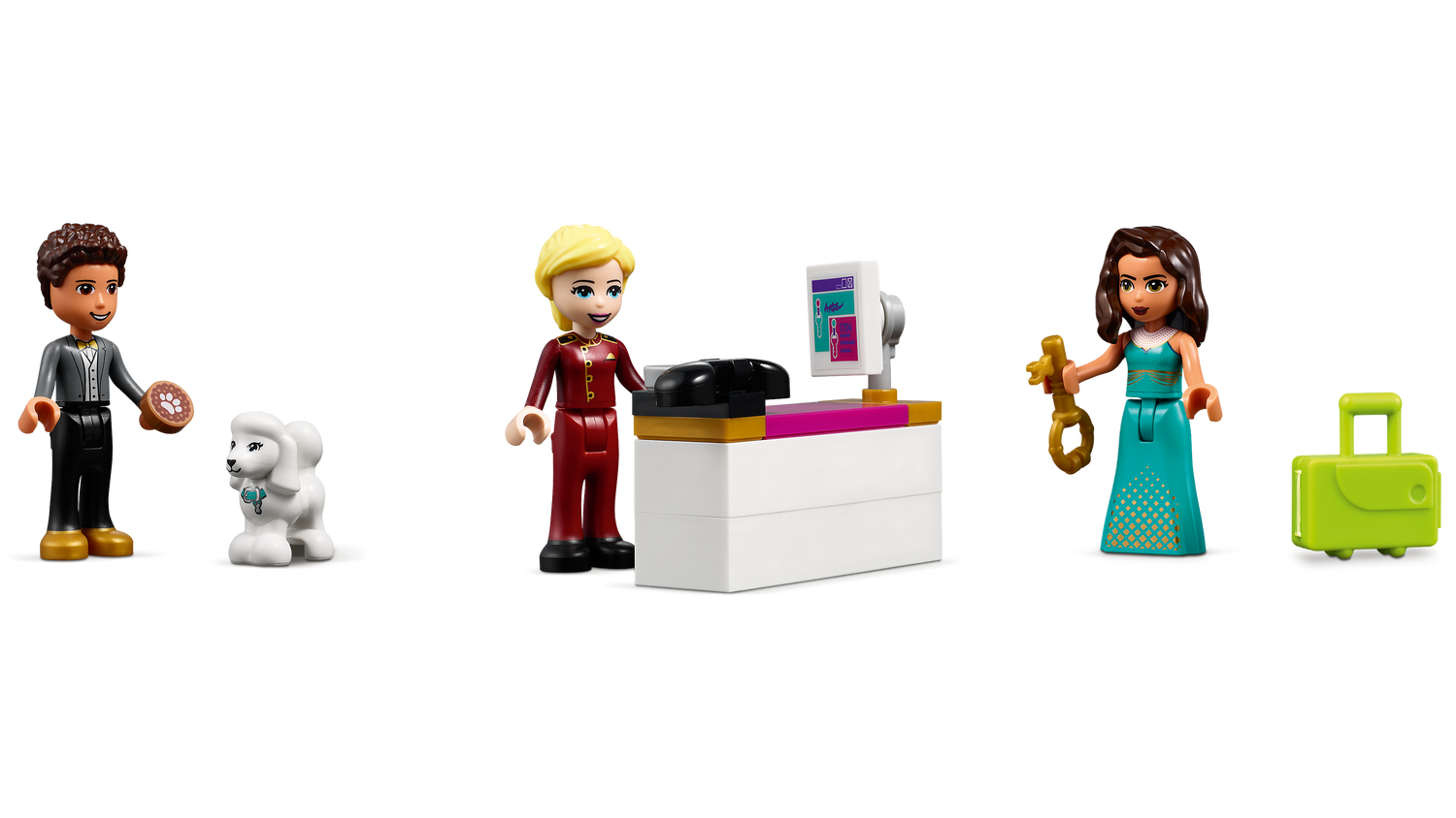 * Kinder können im Heartlake City Hotel (41684) tolle Rollenspiele erleben. Das 3-stöckige Gebäude im Pariser Stil und jede Menge Zubehör zur Abbildung verschiedener Jahreszeiten garantieren das ganze Jahr über riesigen Spielspaß.* Beinhaltet vier LEGO® Friends Spielfiguren – darunter auch eine Rezeptionistin und eine Schauspielerin – und drei Tiere. Das Hotel ist vollgepackt mit authentischen Details und besitzt fünf Zimmer sowie eine Restaurantterrasse.* Kreative Kinder können sich stundenlang damit beschäftigen, den Aufenthalt oder die Arbeit in einem Luxushotel nachzuspielen. Sie können ihrer Fantasie freien Lauf lassen, um das Hotel je nach Jahreszeit mit passenden Accessoires schmücken.* Tolles Weihnachtsgeschenk für Jungen und Mädchen ab 8 Jahren. Spektakuläres Set für Kinder mit ein wenig Bauerfahrung, die sich auf eine neue Herausforderung freuen.* Das Hauptgebäude ist 28 cm hoch, 28 cm breit und 14 cm tief. Mit dieser imposanten Größe und der tollen Aufmachung zieht dieses LEGO® Friends Modell alle Blicke auf sich.* Wie alle LEGO® Friends Sets begeistert auch dieses 1.308-teilige Modell mit authentischem Zubehör, das Kinder besonders kreativ spielen lässt. Für den Pagen gibt es sogar einen Kofferwagen und die Zimmerschlüssel passen in die Türen.* Kreatives Modell, das sich an den Wechsel der Jahreszeiten anpassen lässt. Für den Winter sind Kerzen und Schneebälle vorhanden, für den Sommer Blumen und Eiscreme und der Herbst lässt sich mit goldenen Blättern und Kürbissen darstellen.* Das Set stelllt Kindern die Welt der LEGO Friends vor. In Heartlake City finden sie coole Fahrzeuge, realistische Gebäude und Alltagshelden. Die Sets sind perfekt für Kinder, die den Alltag gerne in Rollenspielen nachstellen.* Die neuen LEGO® Spielzeuge erfüllen die höchsten Branchenstandards, damit sie einheitlich und kompatibel sind – und das schon seit 1958.* LEGO® Friends Heartlake City Spielsets werden jedem erdenklichen Test unterzogen, damit jedes Set strengen Sicherheitsstandards entspricht.