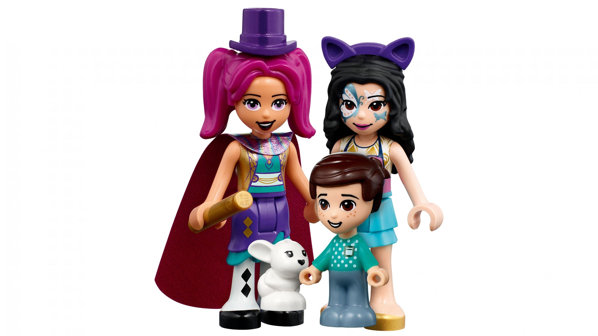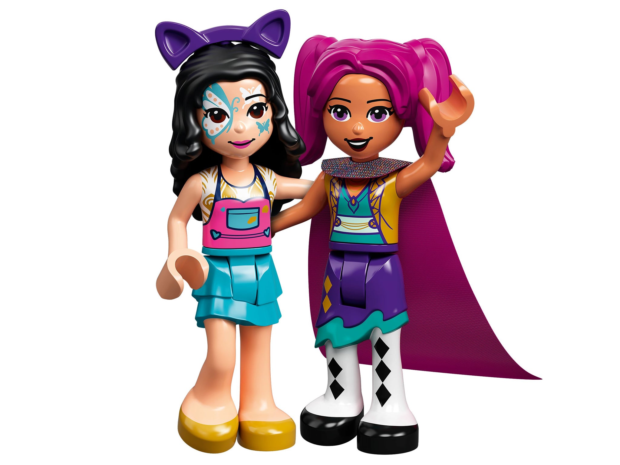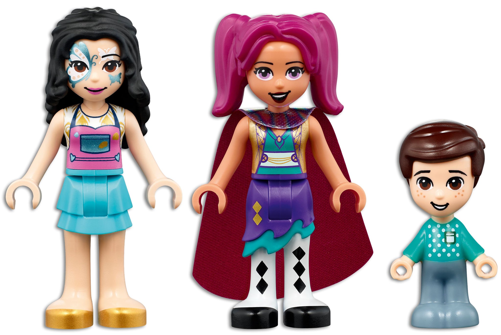 Das Set beinhaltet eine Mikro-Spielfigur und zwei Spielfiguren in Magier-Outfits. Eine der Spielfiguren ist geschminkt, die andereträgt einen Magierumhang. Kinder können so tun, als würden sie den Jahrmarkt besuchen, dort mitarbeiten oder magische Tricks vorführen. Sie müssen nur einen Knauf drehen, um Emma „schweben“ zu lassen. Kinder können diesen Trick ihrer Familie vorführen oder bei einem Spieltreff Freunden ihre Zauberkünste zeigen! Elemente, die im Dunkeln leuchten, sorgen für einen besonderen Überraschungseffekt, wenn das Licht ausgeht! Befördere Kinder in die faszinierende Welt von Heartlake City, wo sie in Begleitung der magischen LEGO® Friends jede Menge Spaß erleben können.