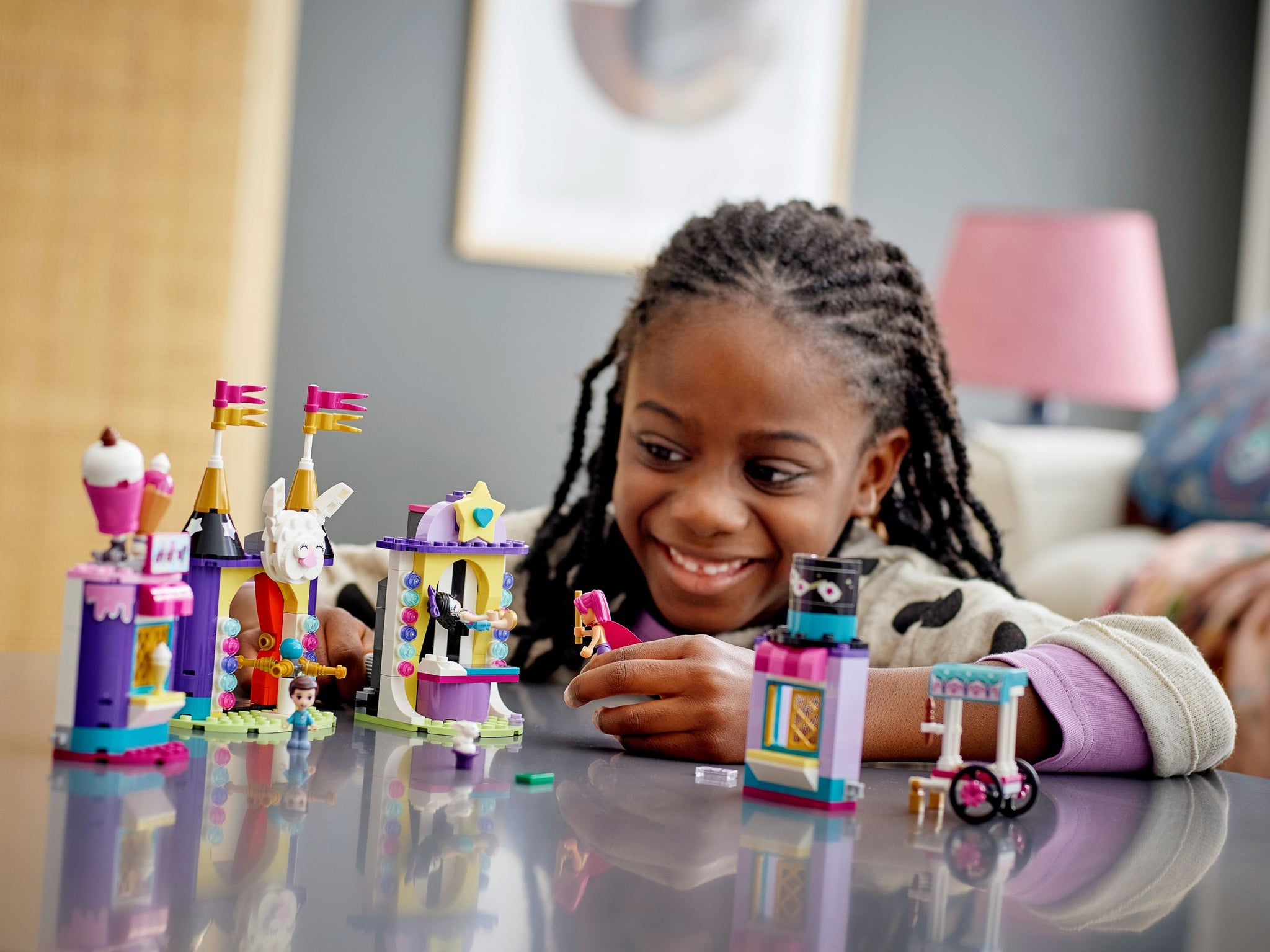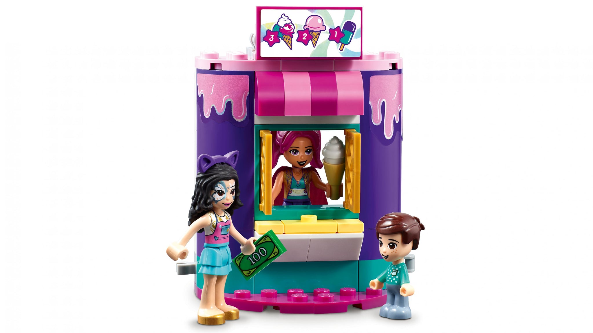 Hol mit den Magischen Jahrmarktbuden (41687) echtes Jahrmarktvergnügen ins Kinderzimmer. Das Set beinhaltet jede Menge kreatives Zubehör, beispielsweise einen Eiscremestand, einen beweglichen Schminkwagen, eine Kasse und ein Drehkreuz – genau wie auf einem echten Jahrmarkt. Sogar ein beeindruckender Zaubertrick lässt sich vorführen!