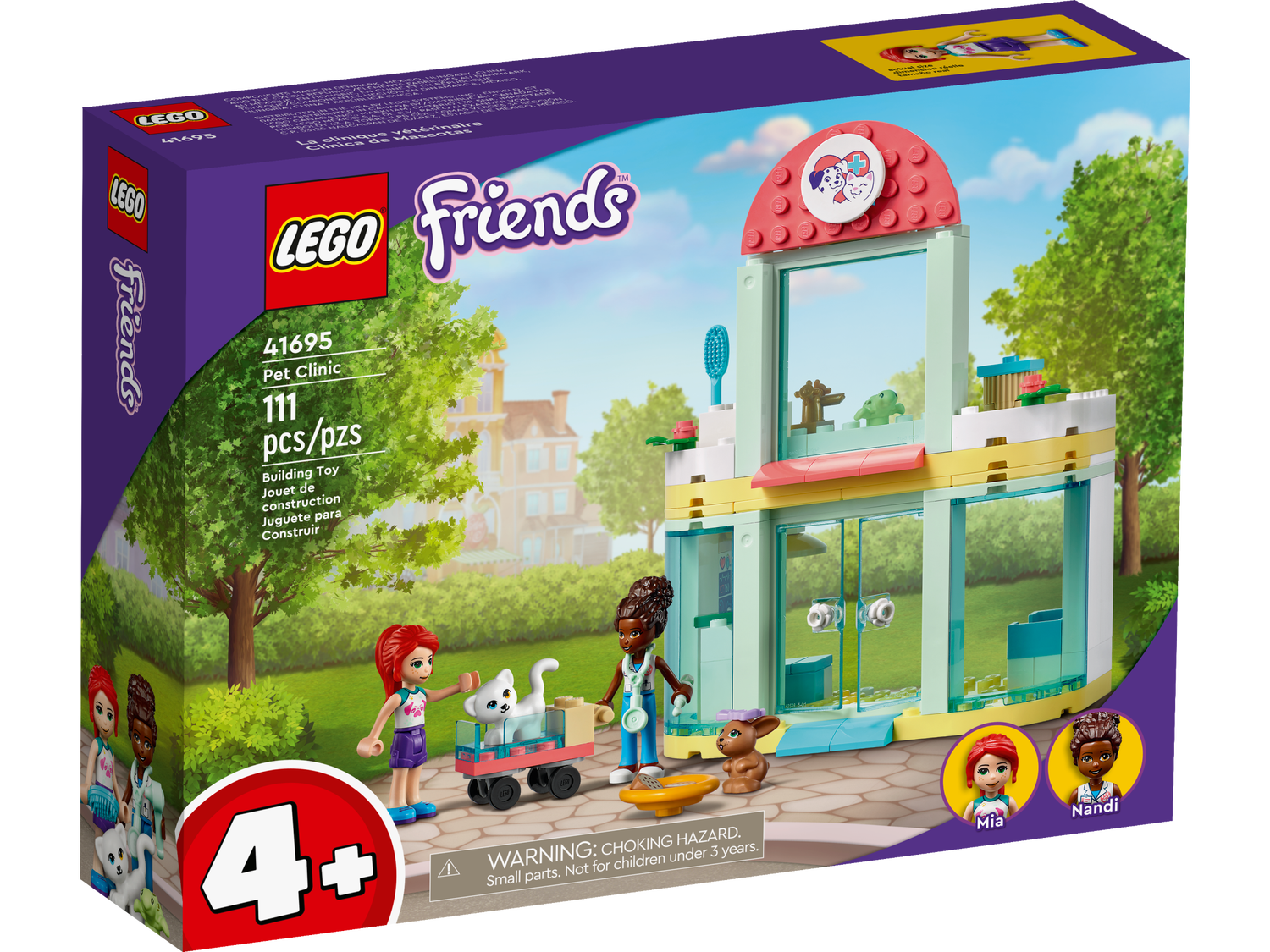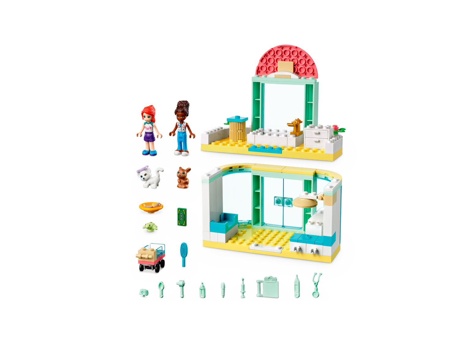 Lass Kinder ab 4 Jahren mit der 2-geschossigen Tierklinik aus diesem LEGO® Friends Spielset ihre Tierliebe ausleben und eine verletzte Katze versorgen. In dem farbenfrohen Gebäude befinden sich ein Röntgengerät, eine Fellpflegestation und ein Kratzbaum. Das Obergeschoss lässt sich abnehmen, um Zugang zu den Funktionen im Erdgeschoss zu erhalten. Neben einer Registrierkasse steht dort auch ein Instrumentenschrank mit Tierarztausrüstung.Erwachsene können mitspielen4+ Spielzeuge zum Sammeln lassen Erwachsene und Kinder die kreative LEGO Welt miteinander erkunden. Reiß einen Beutel auf, damit dein Kind sofort spielen kann. Jeder Beutel enthält die Steine für eine Figur, ein niedliches Spielzeugtier und ein Mini-Modell. Unterstützung durch einen Erwachsenen ist kaum erforderlich. Der Spielzeug-Tierklinik liegt eine verständliche Bildanleitung bei, damit auch Kinder, die gerade erst lesen lernen, die Modelle im Handumdrehen bauen können. Stell deinem Kind die LEGO Friends Spielsets vor, die Kinder ihre Interessen entdecken lassen – natürlich immer mit tollen Freunden an ihrer Seite.