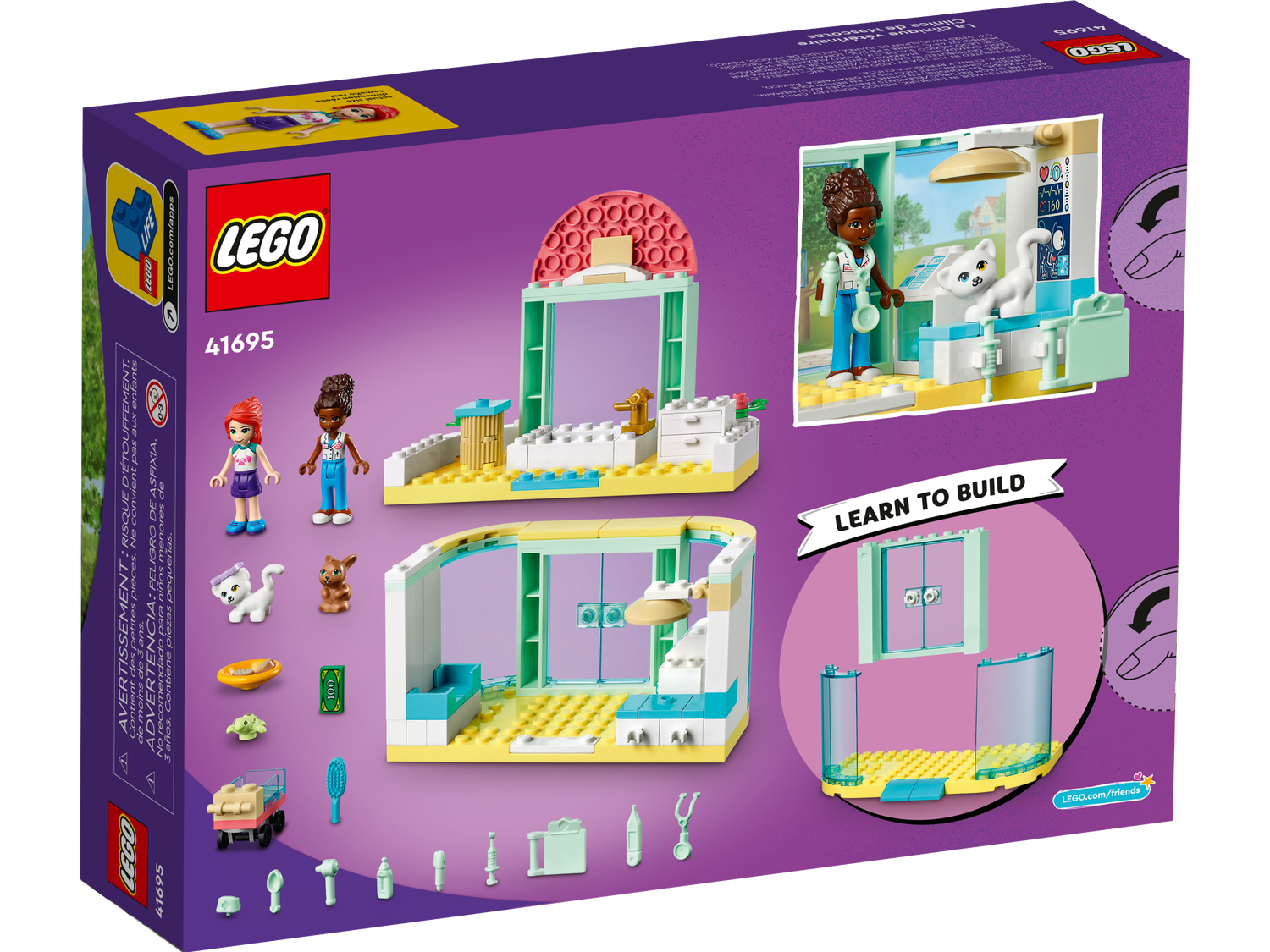 * Farbenfrohe Spielzeug-Tierklinik: Die LEGO® Friends Tierklinik lässt Kinder ab 4 Jahren ihre Tierliebe ausleben und Baufähigkeiten entwickeln* Tolle Elemente laden zum Spielen ein: Beinhaltet die LEGO® Friends Heldin Mia und eine weitere Spielfigur sowie eine Katze, eine Schildkröte und einen Hasen. Die Figuren und die Tierarztausrüstung lassen Kinder viele Stunden lang spielen* Spielspaß in 2 Geschossen: Kinder können ihr Haustier zu Untersuchung vorbeibringen oder in der Rolle der Tierärztin eine Röntgenaufnahme machen. Oben befindet sich eine Fellpflegestation mit Bad und Gymnastikraum* Überraschung für Kinder ab 4 Jahren: Kreative Belohnung für kleine Tierfreunde und ein tolles Geburtstagsgeschenk für Kinder, die gerne Modelle bauen und Spielzeugtiere entdecken* Kreatives Spielzeug für jede Gelegenheit: Dieses LEGO® Friends Set ist 16 cm hoch und 13 cm breit. Da es nur wenig Platz beansprucht, kann es einfach aufgestellt bleiben, um jederzeit spannende Rollenspiele zu ermöglichen* Einfach zu bauende Modelle: LEGO® 4+ Sets beinhalten Starter-Bauelemente und einfache Bildanleitungen, damit auch Kinder rasch bauen können, die gerade erst lesen lernen* Spielerisches Lernen: 4+ Spielzeuge vermitteln wichtige Fähigkeiten, um Kinder auf die Schule vorzubereiten, und fördern die Kommunikation, Konzentration und Kreativität* Fürsorgliche Gemeinschaft: Das Spielzeug lässt sich mit dem LEGO® Friends Tierrettungswagen (41694) kombinieren, um noch mehr Spielmöglichkeiten zu bieten und eine Spielwelt zu erschaffen, in der Freunde zusammenarbeiten, um Tieren zu helfen* Funktionieren immer gut: LEGO® Spielzeuge erfüllen bereits seit 1958 die höchsten Branchenstandards, damit sie einheitlich und miteinander kompatibel sind und sich jedes Mal fest zusammenstecken und mühelos wieder trennen lassen* Sicheres Spielerlebnis: LEGO® Steine und Teile werden gründlich getestet, damit dieses kreative Geschenk strikte Sicherheitsstandards erfüllt