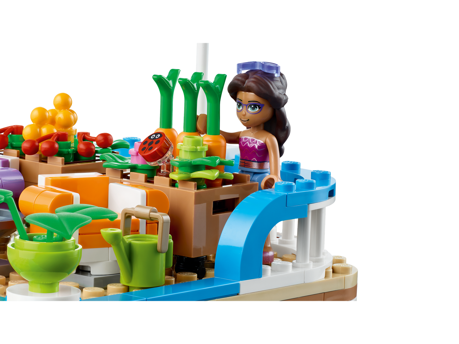 Überrasche umweltbewusste Kinder mit dem LEGO® Friends Hausboot. Kleine Umweltschützer werden der Spielfigur Mia und ihren Freunden gerne beim Restaurieren des alten Bootes und beim Anbau von Gemüse für die Menschen in Heartlake City helfen.Lass der Fantasie freien LaufDieses kreative Geburtstagsgeschenk für Kinder strotzt vor Funktionen. An Deck befinden sich ein Garten mit Gemüse und Obstkisten, ein Apfelbaum und ein Aufenthaltsbereich mit Lichterkette. Die Kinder können ihre Erzeugnisse an dem Stand auf dem separaten Steg verkaufen. Das Deck lässt sich abnehmen und die Seite kann man wegklappen. Dann sind die Küche für die Cupcakes, ein Schlafbereich, ein Holzofen, eine Videospielkonsole, Solarmodule und ein Badezimmer zugänglich.Eine coole neue Art des BauensZu dem Set ist auch eine digitale Bauanleitung in der LEGO Building Instructions App verfügbar. Funktionen zum Vergrößern und Drehen der virtuellen Modellansicht lassen Kinder selbstständig bauen. Lass Jungen und Mädchen in die LEGO Friends Spielwelt eintauchen. In Heartlake City können sie sich zusammen mit Figuren, die ihnen sehr ähnlich sind, für den Umweltschutz engagieren.