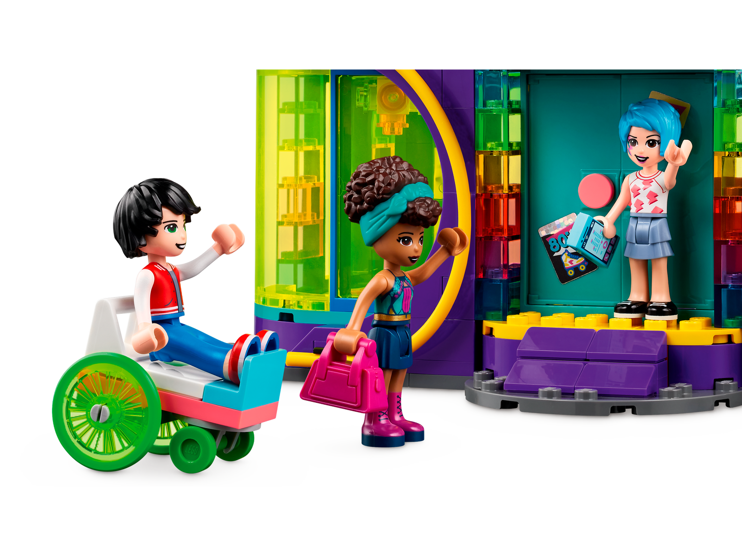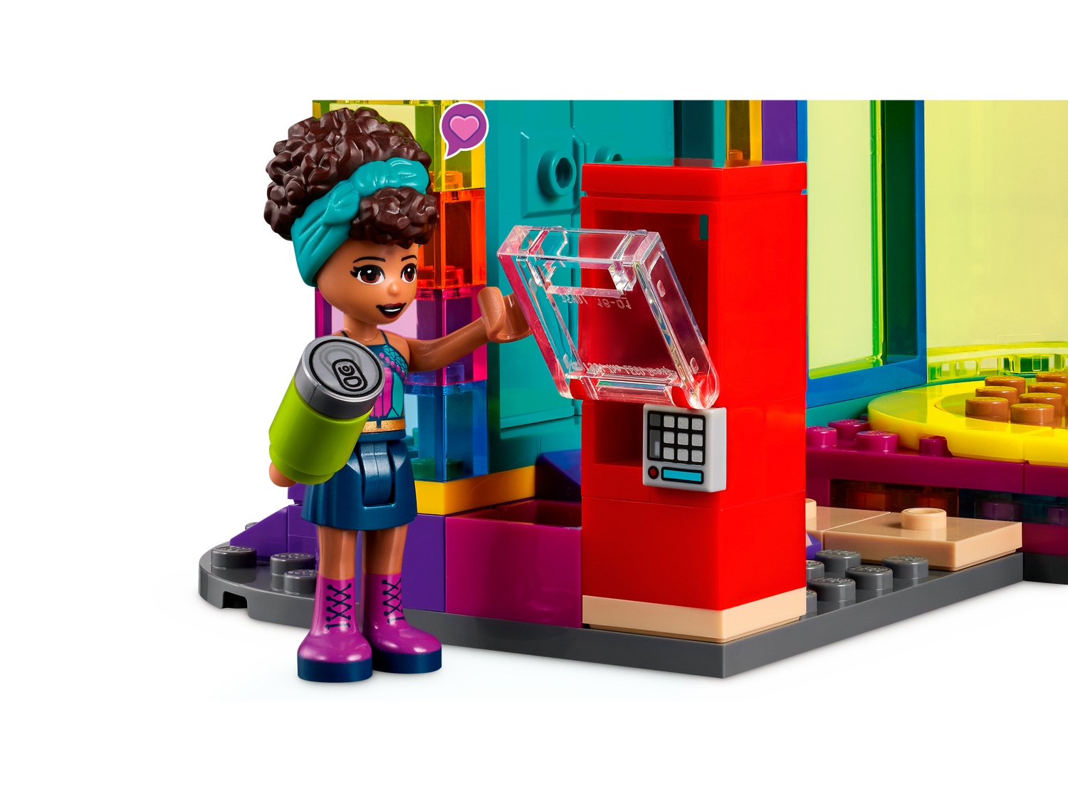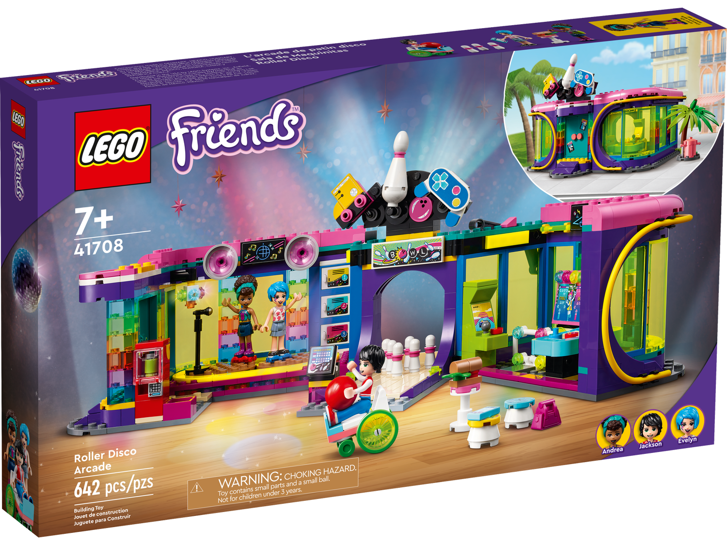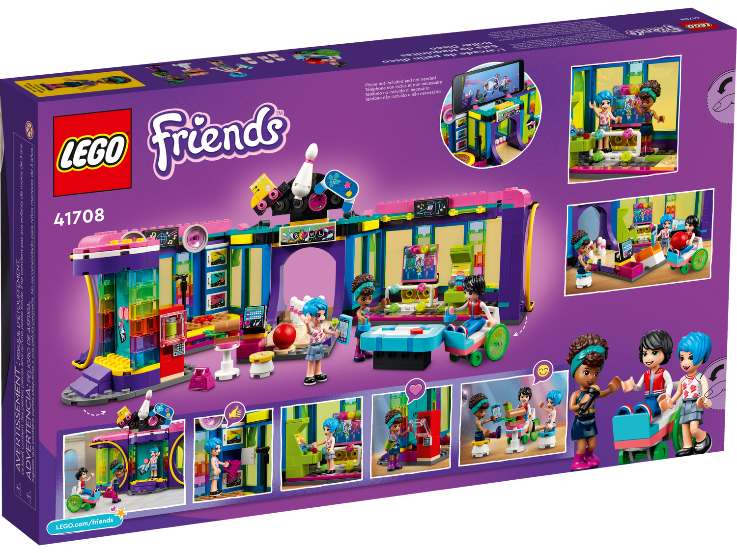 * Cooles Spielset mit vielen Funktionen: Das LEGO® Friends Spielzeug „Rollschuhdisco“ (41708) lässt sich aufklappen und bietet dann Zugang zu 3 faszinierenden Spielzonen, in denen dein Kind kreativ spielen kann* Jede Menge Spielspaß: 3 faszinierende Spielzonen – eine Rollschuhdisco, eine Bowlingbahn und ein Bereich mit Spielautomaten – sowie 3 LEGO® Friends Spielfiguren laden zu unzähligen Rollenspielen ein* Authentische Details: Verkaufsautomat, Rollschuhe, Bowling-Pins, Smartphone, Bowlingtasche, Bowlingkugeln, Sandwich, Mikrofon, Spielautomat, Airhockey-Tisch und Tanzspiel* Wie eine echte Rollschuhdisco: Dein Kind kann die Rollschuhdisco aufklappen, die LEGO® Friends Spielfigur Andrea in der Disco singen lassen, Freunde am Airhockey-Tisch herausfordern oder auf die Spielzeug-Bowlingbahn gehen* Spektakuläres Modell zum Ausstellen: Aufgeklappt ist die Rollschuhdisco 14 cm hoch, 38 cm breit und 17 cm tief. Das farbenfrohe Ausstellungsstück zieht im Kinderzimmer alle Blicke aufsich* Geschenk für Fans der LEGO® Friends ab 7 Jahren: Geburtstags- oder Weihnachtsgeschenk für Kinder, die gerne ausgehen und sich mit Freunden treffen* Interaktives Bauerlebnis: In der LEGO® Building Instructions App können Kinder beim Bauen eine digitale Modellansicht vergrößern, drehen und näher betrachten* Spannende Rollenspiele, die Alltagsabenteuer darstellen: Lässt sich mit anderen Heartlake City Spielzeugen kombinieren, damit Jungen und Mädchen ihr LEGO® Friends Universum fantasievoll erweitern können* Qualitätsgarantie: LEGO® Friends Sets erfüllen die strengen Qualitätsstandards der Branche, damit sie einheitlich und kompatibel sind und sich jedes Mal perfekt zusammenstecken und wieder trennen lassen* Garantierte Sicherheit: LEGO® Elemente werden Fall-, Hitze-, Druck- und Torsionstests unterzogen und analysiert, damit sie strengen globalen Sicherheitsstandards genügen
