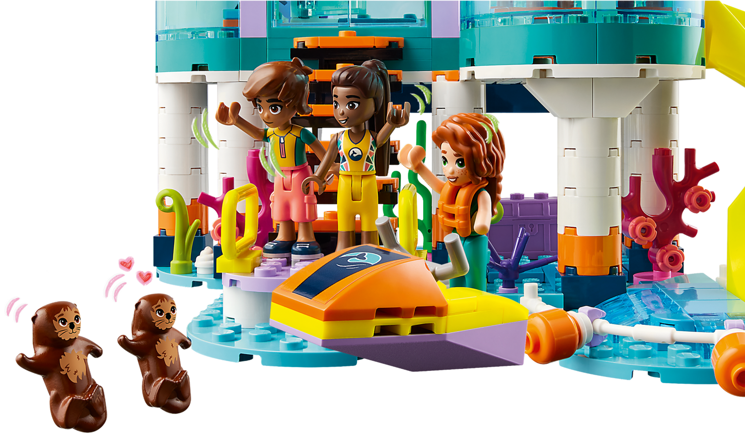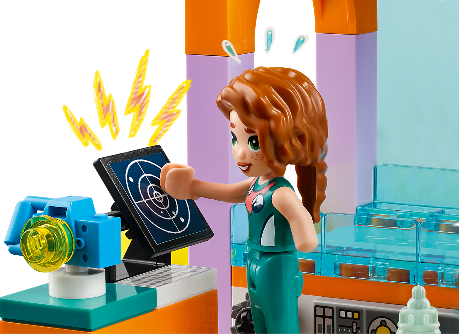 Mit dem LEGO® Friends Seerettungszentrum (41736) können Tierfreunde ab 7 Jahren spannende Geschichten an und auf dem Meer darstellen. Das Set beinhaltet 3 Spielfiguren und 2 Seeotter, ein Seepferdchen und eine Meeresschildkröte sowie jede Menge Zubehör für Rollenspiele. Dein Kind kann mit dem Wasserroller am Steg anlegen und dann hineingehen, um die Seeotter zu röntgen und zu füttern. Anschließend können die Seeotter ins Reha-Becken rutschen. Wenn sich die Seeotter erholt haben, können sie zurück ins Meer schwimmen. Das Zubehör umfasst eine Schwimmweste, eine Nuckelflasche, ein Funkgerät, eine Schatztruhe, eine Kamera, einen Computer, ein Mikroskop, eine Spritze und ein Röntgengerät.Noch mehr BauspaßDie LEGO Builder App bietet Kindern ein leichtes und intuitives Bauabenteuer. Die Funktionen lassen dein Kind 3D-Ansichten der Modelle vergrößern und drehen, Sets speichern und seinen Baufortschritt verfolgen.Die nächste Generation von Heartlake CityLass dein Kind die neue LEGOFriends Welt mit ihren unterschiedlichen Figuren erkunden und dabei seine eigenen Interessen entdecken.