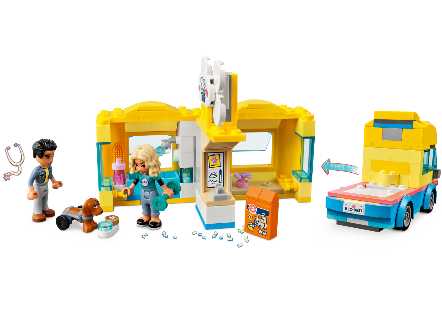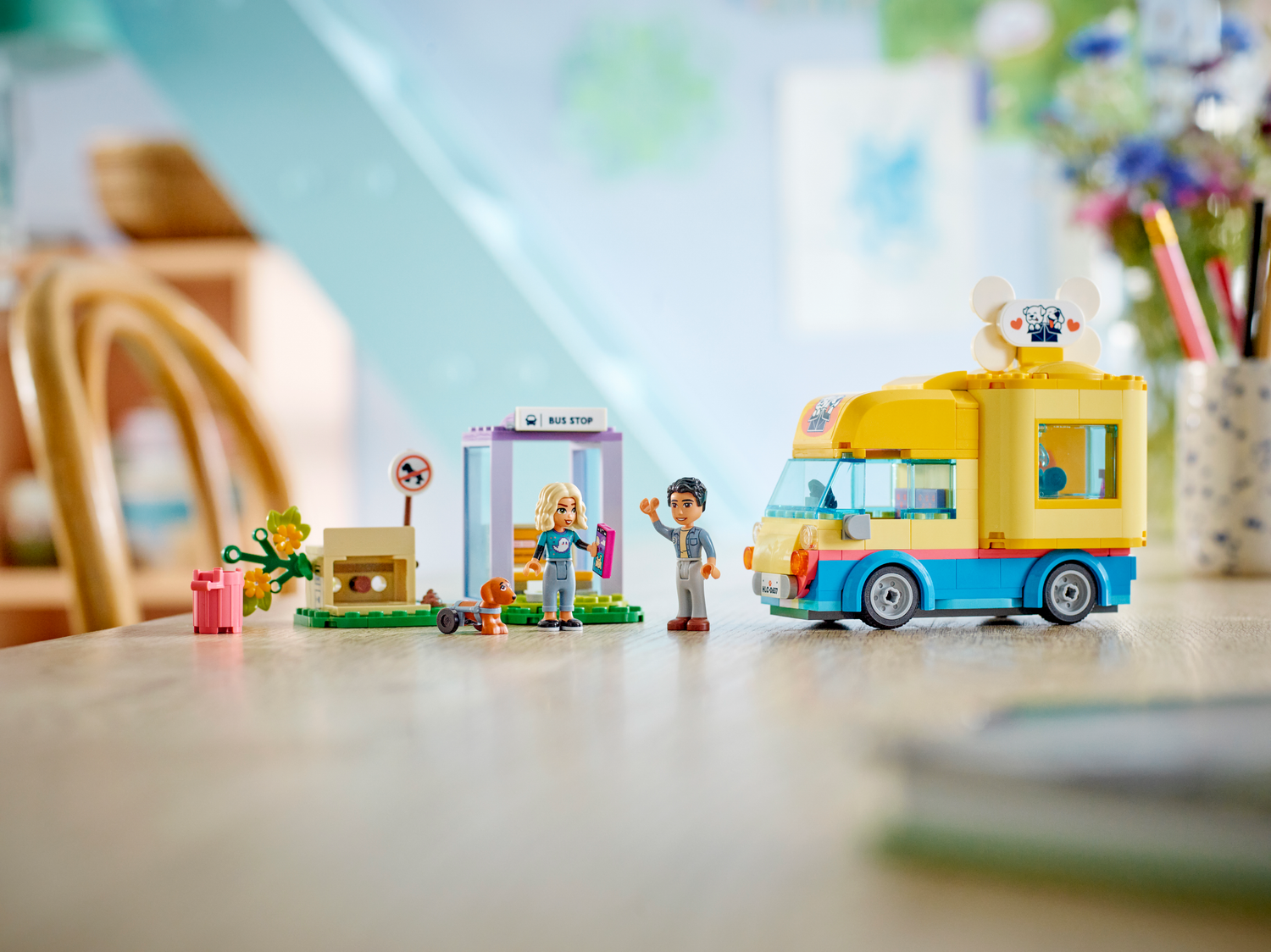 Tierfreunde ab 6 Jahren werden es lieben, diesen niedlichen Welpen zu retten und zu umsorgen! Der LEGO® Friends Tierrettungswagen (41741) ist nicht nur ein tolles Bauset, sondern lässt Kinder auch spannende Geschichten darstellen. Der Welpe kann seinen Kopf aus dem Karton herausstrecken, wenn Nova vorbeigeht. Nova ruft dann im Tierrettungszentrum an. Das Dach des Wagens kann man abnehmen, um Zugang zur mobilen Rettungszentrale zu erhalten. Dort ist auch alles verstaut, was dein Kind braucht, umden Welpen Pickle zu versorgen. Das Zubehör umfasst unter anderem eine Hundebadewanne, eine Werkbank, eine Bürste, Seife, einen Mülleimer, einen Hundehaufen, Wasser und Futter sowie Räder, um eine Gehhilfe für Pickle zu bauen. Dein Kind wird Novas traurige Miene gern in ein fröhliches Gesicht verwandeln, wenn sie Pickle versorgt.Ein fesselndes ErlebnisFreu dich auf die LEGO Builder App, die dir ein leichtes und intuitives Bauabenteuer bietet. Die Funktionen lassen dein Kind 3D-Ansichten der Modelle vergrößern und drehen, Sets speichern und den Baufortschritt verfolgen.Freu dich auf die nächste Generation in Heartlake CityIm LEGO Friends Universum kann dein Kind Freundschaften schließen, faszinierende neue Orte entdecken, kreativ spielen und Alltagsabenteuer darstellen.