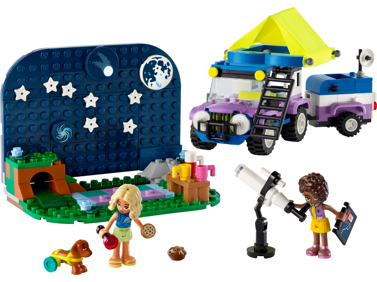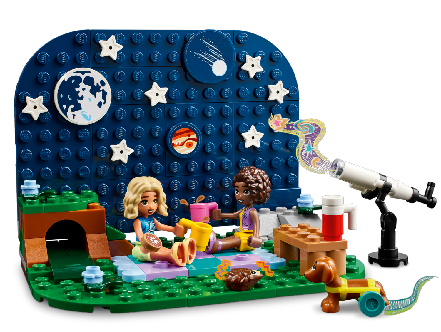 Das LEGO® Friends Sterngucker-Campingfahrzeug (42603) ist ein Spielset, in dem es für Jungen und Mädchen ab 7 Jahren sehr viel zu entdecken gibt. Das Set beinhaltet ein baubares Teleskop, einen Geländewagen mit Campinganhänger und zusammenfaltbarem Dachzelt, 2 Spielfiguren, einen Hund und einen Igel.Inspiriere dein Kind dazu, mit den Sternen und Planeten Sternbilder auf den Hintergrund zu zaubern. Jede Menge Zubehör wie Becher, Kekse, Hundekuchen, ein Fernglas, ein Teleskop, eine Taschenlampe und ein Tablet laden zu unzähligen Freundschaftsgeschichten ein. Und mit den zusätzlichen Sternen und Grafiken verschiedener Planeten kann man viele verschiedene Sternbilder darstellen.Dieses Bauset ist ein tolles Geburtstags- oder Überraschungsgeschenk für Kinder, die Forscher-Spielsets lieben. Die LEGO® Builder App bietet Kindern ein leichtes und intuitives Bauabenteuer. In der App kann dein Kind 3D-Ansichten der Modelle vergrößern und drehen, Sets speichern und seinen Baufortschritt verfolgen.