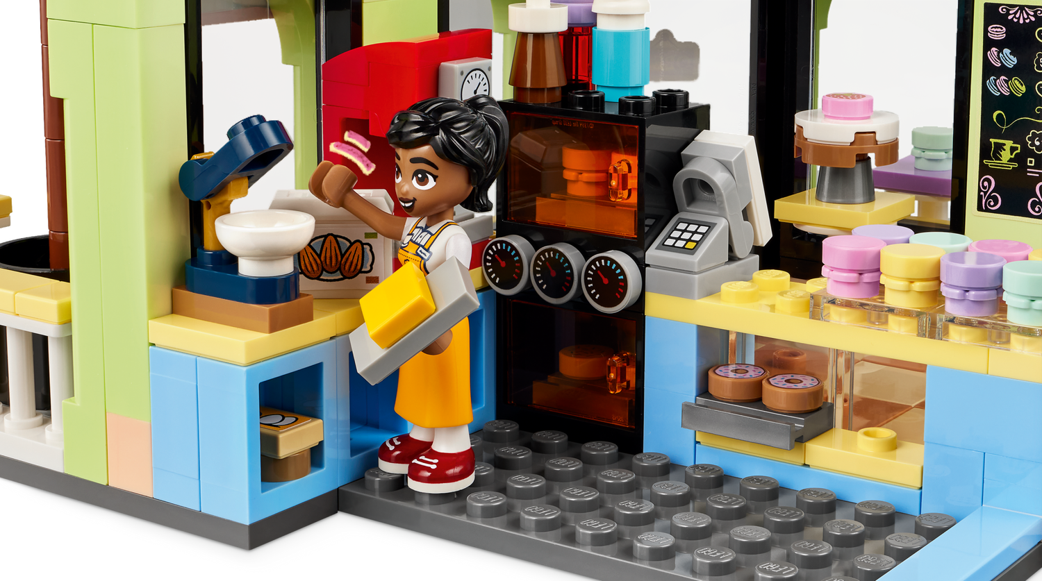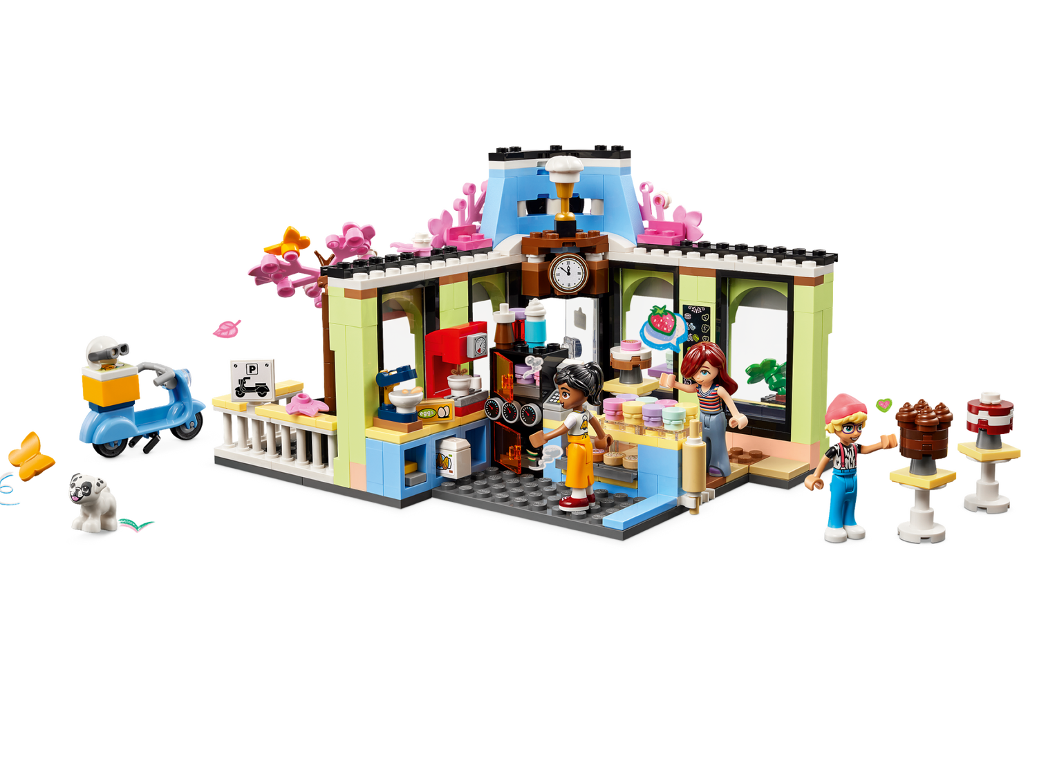 Diese süße Geschenkidee lässt Kinder ab 6 Jahren eigene Freundschaftsgeschichten darstellen. Das LEGO® Friends Heartlake City Café (42618) ist ein Kinderspielzeug im Stil einer Konditorei. Zu dem Café gehören auch 3 LEGO Friends Spielfiguren und ein Hund. Jede Menge Café-Zubehör lädt Mädchen und Jungen dazu ein, besonders fantasievoll mit dem Bauset zu spielen.Dieses Spielzeug fördert die soziale Entwicklung, wenn Kinder Paisley und Olly in ihr Lieblingscafé in Heartlake City gehen lassen. Beatriz sortiert Macarons und backt in der Küche Kuchen. Dort befinden sich ein Ofen und eine Kaffeemaschine. Sie hilft den Freunden, sich Gebäck für den Tisch draußen auszusuchen, und packt dann Macarons in die Box, um sie mit dem Roller auszuliefern.Entdecke im LEGO Friends Universum noch weitere Geschenkideen für Kinder. Mit den separat erhältlichen Sets kann man noch viele weitere Freundschaftsgeschichten darstellen. Zu dem Set ist auch die LEGO Builder App für ein intuitives Bauerlebnis verfügbar. Die Funktionen lassen dein Kind 3D-Ansichten der Modelle vergrößern und drehen, Sets speichern und den Baufortschritt verfolgen.
