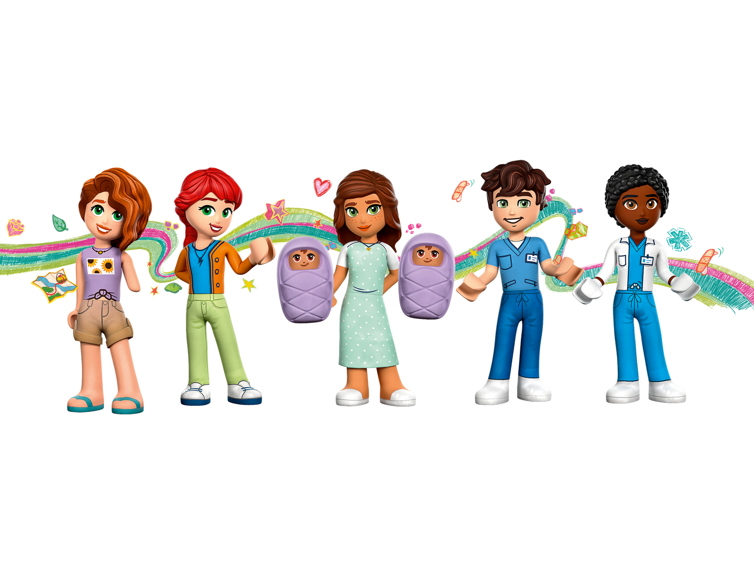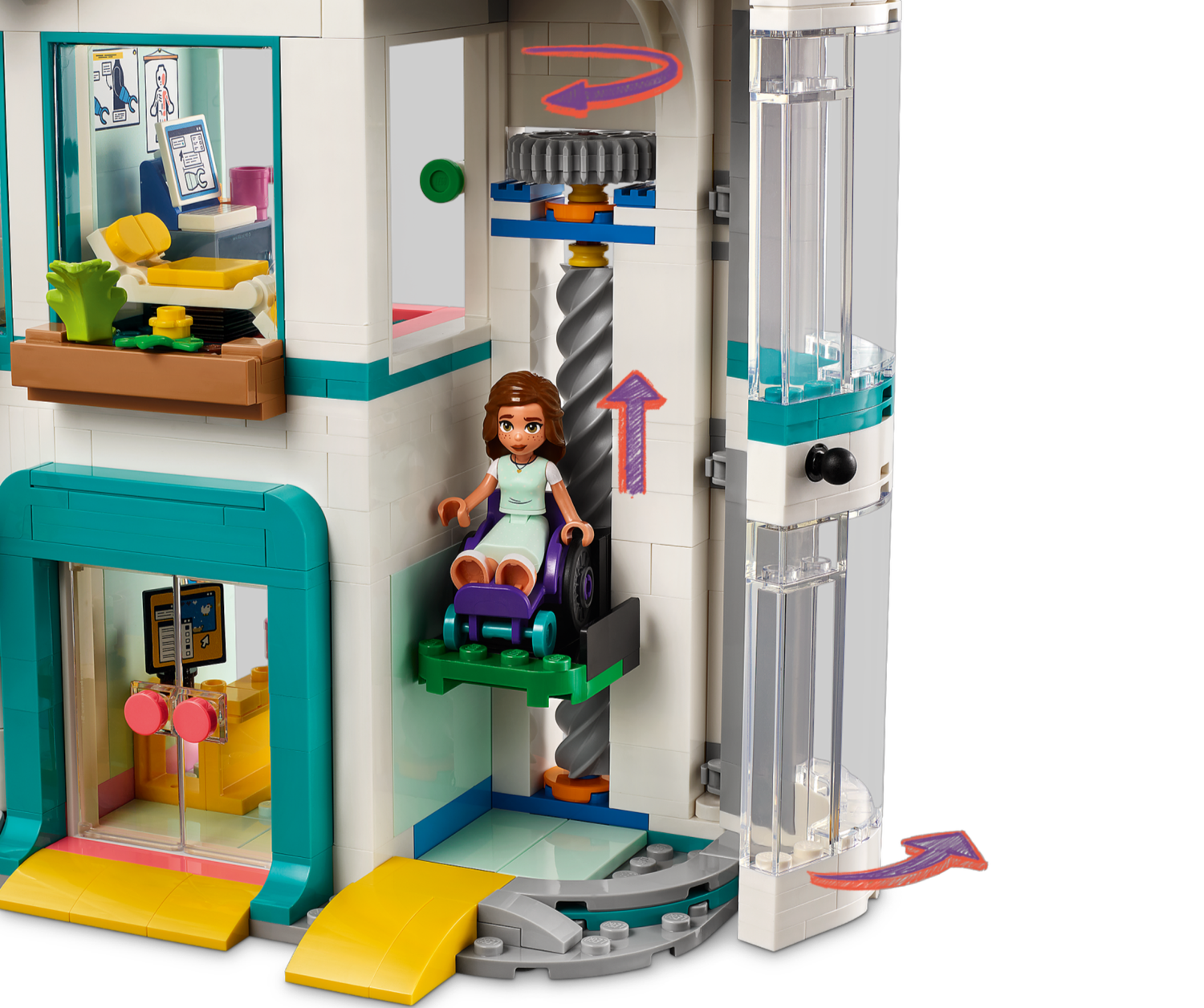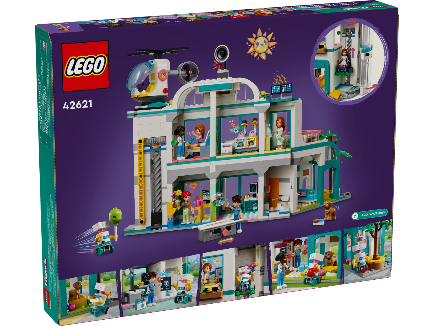 Für Kinder, die Rollenspiele mit Ärzten lieben, gibt es im LEGO® Friends Heartlake City Krankenhaus (42621) viel zu entdecken. Dieses Spielzeugkrankenhaus lädt Mädchen und Jungen ab 7 Jahren zu vielen Rollenspielen ein. In dem Modell befinden sich viele Bereiche und Stationen, die man auch aus echten Krankenhäusern kennt, beispielsweise ein Behandlungszimmer, eine Entbindungsstation, ein Röntgenzimmer und ein Pausenraum fürs Personal.Hier spielen sich viele spannende Geschichten ab. Zum Beispiel lässt sich Autumn heute eine neue Armprothese anpassen. Dein Kind wird gern mit dem funktionierenden Aufzug zur Entbindungsstation fahren, um die Neugeborenen zu besuchen. Das Behandlungszimmer und der Pausenraum bieten sich für viele weitere Geschichten an. Ein Röntgengerät, medizinische Instrumente und Geschenke für die Patienten sind nur einige der enthaltenen Zubehörelemente. Außerdem darfst du dich auf einen Hubschrauber mit Landeplatz sowie auf einen Assistenzroboter und einen Therapiehund freuen.Dieses Bauset ist ein tolles Geschenk für kreative Kinder und beinhaltet jede Menge Zubehör, 5 Spielfiguren, 2 Babys und einen Hund.