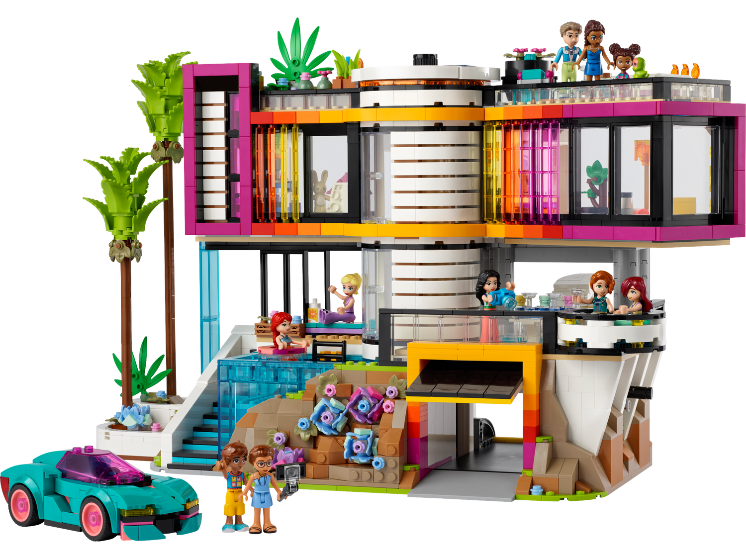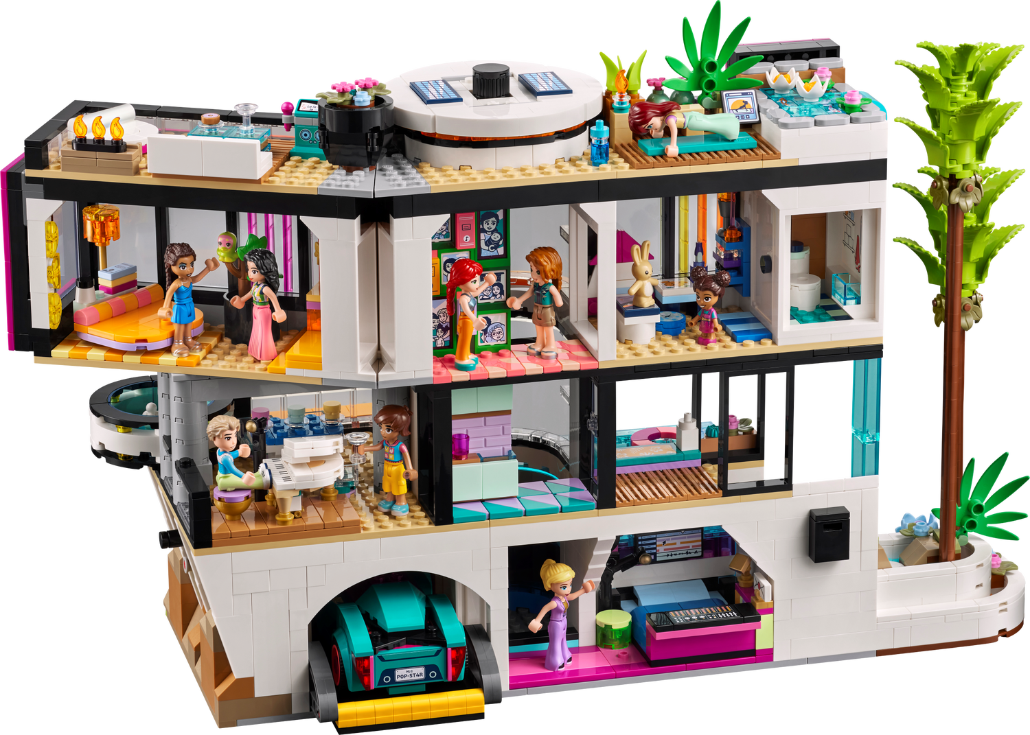 * Bauprojekt für jugendliche Fans: LEGO® Friends Andreas moderne Villa bietet jugendlichen Fans ab 14 Jahren nicht nur ein anspruchsvolles Bauprojekt, sondern lässt sie auch ein spektakuläres Haus ausstellen* Outdoor-Partybereiche: In diesem viergeschossigen Haus veranstaltet die LEGO® Friends Figur Andrea Partys für ihre Freunde. Im Freien findest du einen Pool, einen Whirlpool, einen Essbereich, eine Yoga-Ecke, Musikzonen und einen Wasserfall* Detailreiche Einrichtung: In dem Haus findest du ein Kinderzimmer, ein Badezimmer und Andreas Schlafzimmer mit drehbarem Bett. Und im Untergeschoss befindet sich unter anderen ein Aufnahmestudio mit ausziehbarem Gästebett* 11 Figuren: Dieses Bauset für jugendliche Fans beinhaltet insgesamt 11 alte und neue Spielfiguren, darunter auch einige der ursprünglichen LEGO Friends, die jetzt erwachsen sind* Aufklappbare Garage und funktionierender Aufzug: In der Garage befindet sich eine Funktion, die das Auto losrollen lässt, wenn man das Garagentor öffnet. Und mit dem Aufzug gelangen die Figuren in die unterschiedlichen Etagen* Geschenk für Kinder und Jugendliche: Dieses Bauset ist ein tolles Geburtstags- oder Weihnachtsgeschenk für Jugendliche, die gern LEGO® Modelle bauen* Abmessungen: Das Spielzeughaus aus diesem 2.275-teiligen Set ist 29 cm hoch, 45 cm breit und 18 cm tief
