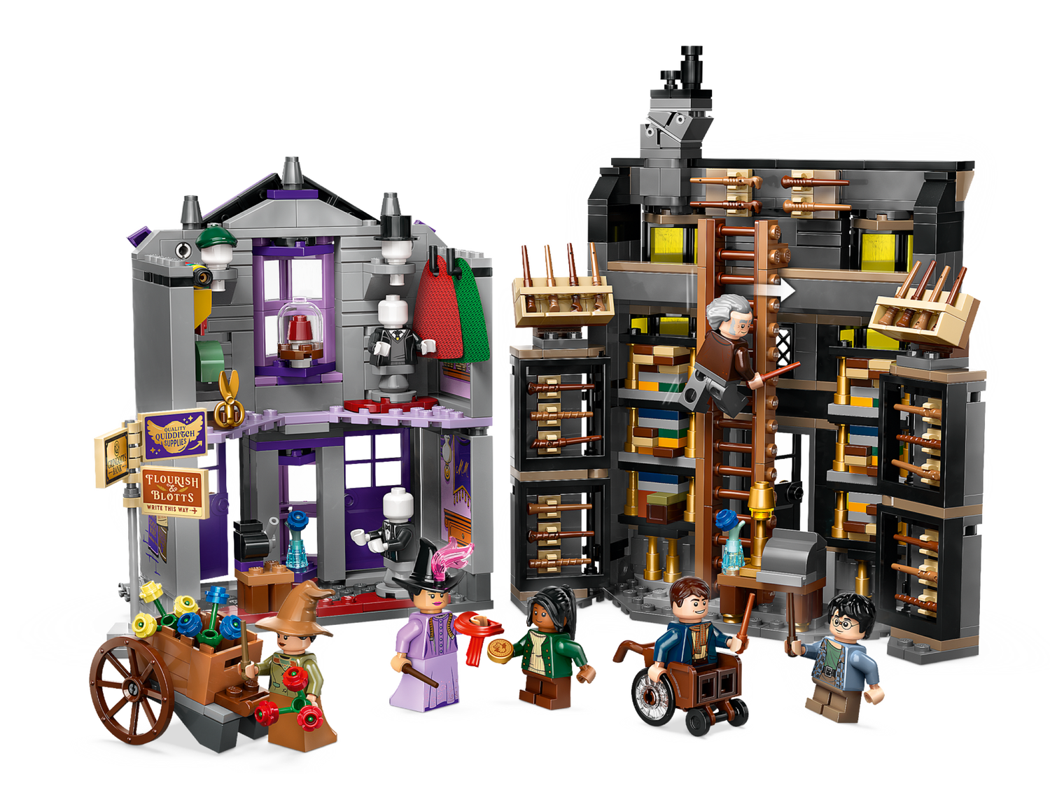 Ollivanders™ & Madam Malkins Anzüge (76439) aus diesem LEGO® Harry Potter™ Winkelgasse™ Bauspielzeug für Kinder sind tolle Läden für magische Abenteuer. Dieses Geschenk für Jungen, Mädchen und alle Harry Potter Fans ab 8 Jahren beinhaltet LEGO Modelle von 2 legendären Läden in der Winkelgasse mit vielen Zubehörelementen, die zum Spielen einladen. In Ollivanders Zauberstabladen findest du eine Leiter sowie Gestelle und Regale mit insgesamt 26 Zauberstäben. Die Schachtel mit Harry Potters Zauberstab kann man herausnehmen. Und in Madam Malkins Anzüge für alle Gelegenheiten gibt es Schaufensterpuppen, Hüte und Mäntel.Dieses Spielset zum Sammeln beinhaltet auch 6 LEGO Minifiguren: Harry Potter, Garrick Ollivander™, Madam Malkin, Padma Patil, ein Zauberschüler und eine Hexe mit einer Karre voll Blumen lassen Kinder kreativ spielen.Ollivanders und Madam Malkins Läden können miteinander oder mit anderen separat erhältlichen Modellen der Läden aus der LEGO Harry Potter Winkelgasse verbunden werden, um eine bezaubernde Einkaufsstraße aus LEGO Steinen zu erschaffen.