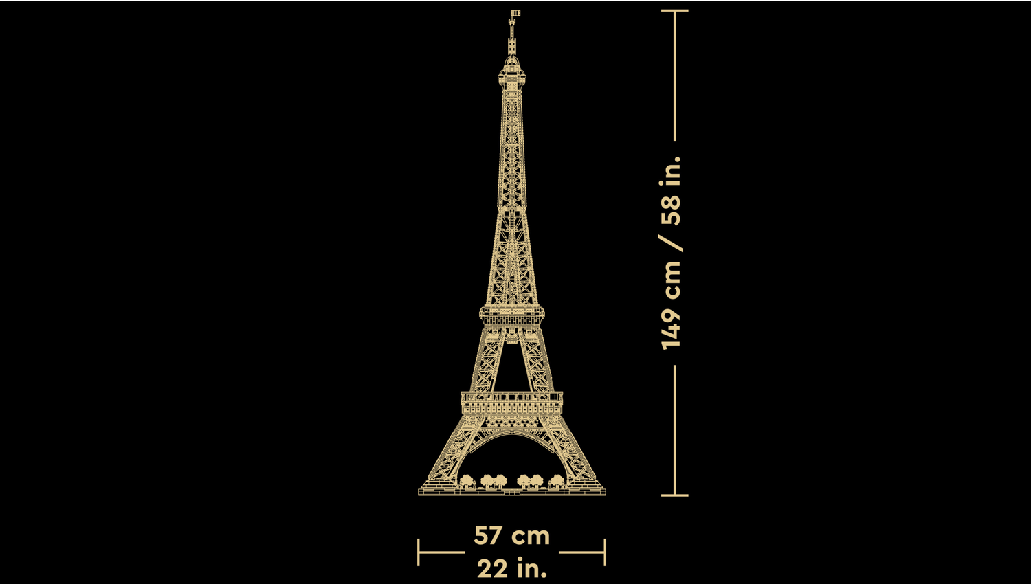 * Ein einzigartiges Modell: Der LEGO® Eiffelturm ist ein rekordverdächtiges Set für Erwachsene. Dieses Sammlerstück aus 10.001 Teilen ist fast 1,5 Meter hoch und wird dir noch lange große Freude bereiten* Bilde die Geschichte nach: Du wirst den Eiffelturm (10307) aus 4 Segmenten zusammensetzen, was den Bauprozess des echten Monuments perfekt widerspiegelt, und neuartige Bautechniken erlernen, die das Herz jedes LEGO® Fans höherschlagen lassen* Originalgetreue Geometrie: Dieses 360°-Modell entspricht der Konstruktion des echten Eiffelturms mit seinen Bögen, Stützen, Querstreben, Geländern und sogar dem eindrucksvollen Blick von unten nach oben* Perfekte Kulisse: Nimm dir Zeit für die Gestaltung der Esplanade. Am Fuß des Turms befinden sich Pariser Straßenlaternen, Bänke, Bäume und Sträucher* Erklimme den Turm: Steig immer weiter hinauf, indem du die 4 Sockel, 3 Aussichtsplattformen, die Aufzüge mit ihren Kabeln, Gustave Eiffels Büro oben auf dem Turm und den Sendemast zusammensetzt* Lässt sich für den Transport zerteilen: Der LEGO® Eiffelturm lässt sich in 4 Segmente zerteilen und verfügt über Tragegriffe, um das Modell woanders wieder aufzustellen* Abmessungen: Das Modell ist 149 cm hoch, 57 cm breit und 57 cm tief und somit eines der größten LEGO® Modelle aller Zeiten* Geschenk für Reisefans und Geschichtsbegeisterte: Dieses LEGO® Set gehört zu einer ganzen Reihe von Bausets für erwachsene LEGO Fans, die sich für legendäre Wahrzeichen, atemberaubendes Design und elegante Architektur begeistern* Hochwertige Materialien: LEGO® Bausteine werden aus hochwertigen Materialien gefertigt. Sie sind einheitlich und kompatibel und lassen sich jedes Mal fest zusammenstecken und mühelos wieder trennen – und das schon seit 1958* Garantiert sicher: Bei LEGO® Teilen stehen Sicherheit und Qualität an erster Stelle. Deshalb werden sie streng getestet, damit sie sich zu einem robusten Modell zusammenstecken lassen