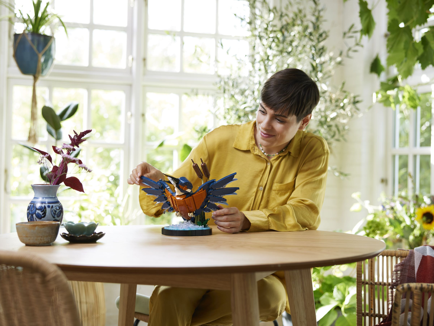 * Bauset für Erwachsene mit dem Modell eines Eisvogels: Nimm dir eine Auszeit und freu dich auf ein entspannendes Bauerlebnis mit dem LEGO® Icons Eisvogel* Kreatives Bauprojekt: Dieses Set beinhaltet alles, was du brauchst, um eine LEGO® Interpretation eines majestätischen Eisvogels mit seiner Beute zu erschaffen – sowie eine Wasserkulisse, die auch als Ständer dient* Details und Funktionen: Das Modell des Eisvogels kann seinen Kopf und seine Krallen bewegen. Und die Wasserkulisse mit baubarem Schilf dient zugleich als Ständer* Skulptur für den Schreibtisch im Arbeitszimmer oder Büro: Hol dir mit dem LEGO® Icons Eisvogel zum Ausstellen einen Hauch von Natur ins Zimmer* Achtsames Geschenk für Vogelfreunde: Dieses LEGO® Icons Bauset ist ein grandioses Weihnachts- oder Geburtstagsgeschenk für Vogelbeobachter und für Fans tropischer Vögel, cooler Einrichtung und besonderer LEGO Modelle* Inklusive digitaler Bauanleitung: In der LEGO® Builder App ist eine digitale Version der Bauanleitung zu diesem Set verfügbar* LEGO® Projekte für Erwachsene: Die ebenso inspirierenden wie kreativen LEGO Bausets, die eigens für Erwachsene konzipiert werden, lassen dich einen Raum zum Entspannen entdecken* Abmessungen: Dieses Modell aus 834 Teilen ist 21 cm hoch, 31 cm breit und 17 cm tief