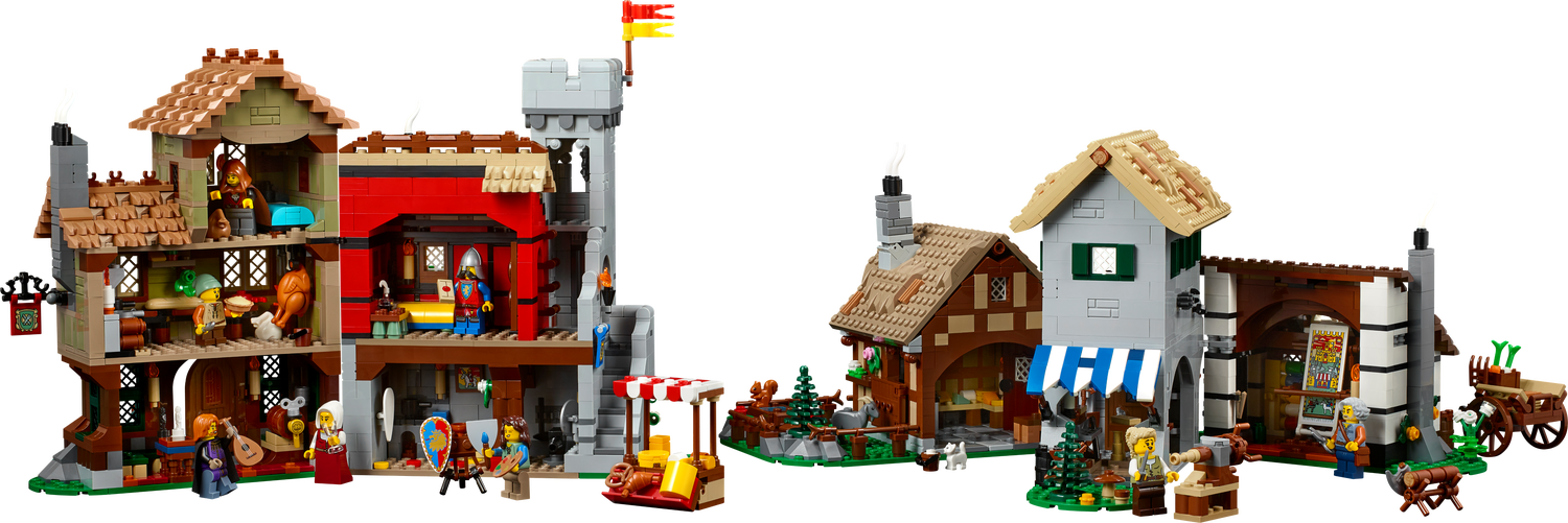 Entdecke mit diesem Premium-Bauset für Erwachsene einen Ort zum Entspannen. LEGO® Icons Mittelalterlicher Stadtplatz (10332) ist ein tolles Geschenk für Geschichtsbegeisterte. Diese Neuinterpretation des überaus beliebten Spielsets Medieval Market Village von 2009 stellt das Dorf Felsa dar. Dort erwarten dich viele neue Geschichten mit pittoresken Gebäuden aus einer längst vergangenen Zeit. Unter anderem laden ein alter Bauernhof, eine Käserei, die Dorfschenke „Zu den geborstenen Äxten“, eine Schildschmiede und ein Wachturm zum Spielen ein.Freu dich auf ein fesselndes Bauprojekt, bei dem auch deine Freunde gern mitmachen können, und bilde uralte Objekte und Gebäude nach, die innen und außen mit vielen Details aufwarten. Wähle unterschiedliche Konfigurationen, um faszinierende Ausstellungsstücke zu erschaffen und spannende Geschichten mit mittelalterlichen Minifiguren darzustellen. Unter anderem laden ein Räuber, ein Schreiner, ein Steuereintreiber, ein Teppichweber, ein Schildschmied und ein Turmwächter zum Spielen ein.Schau dir das breite Spektrum an separat erhältlichen LEGO Bausets für kreative Erwachsene an. In der LEGO Builder findest du eine digitale Version der Bauanleitung, die diesem Set beiliegt.