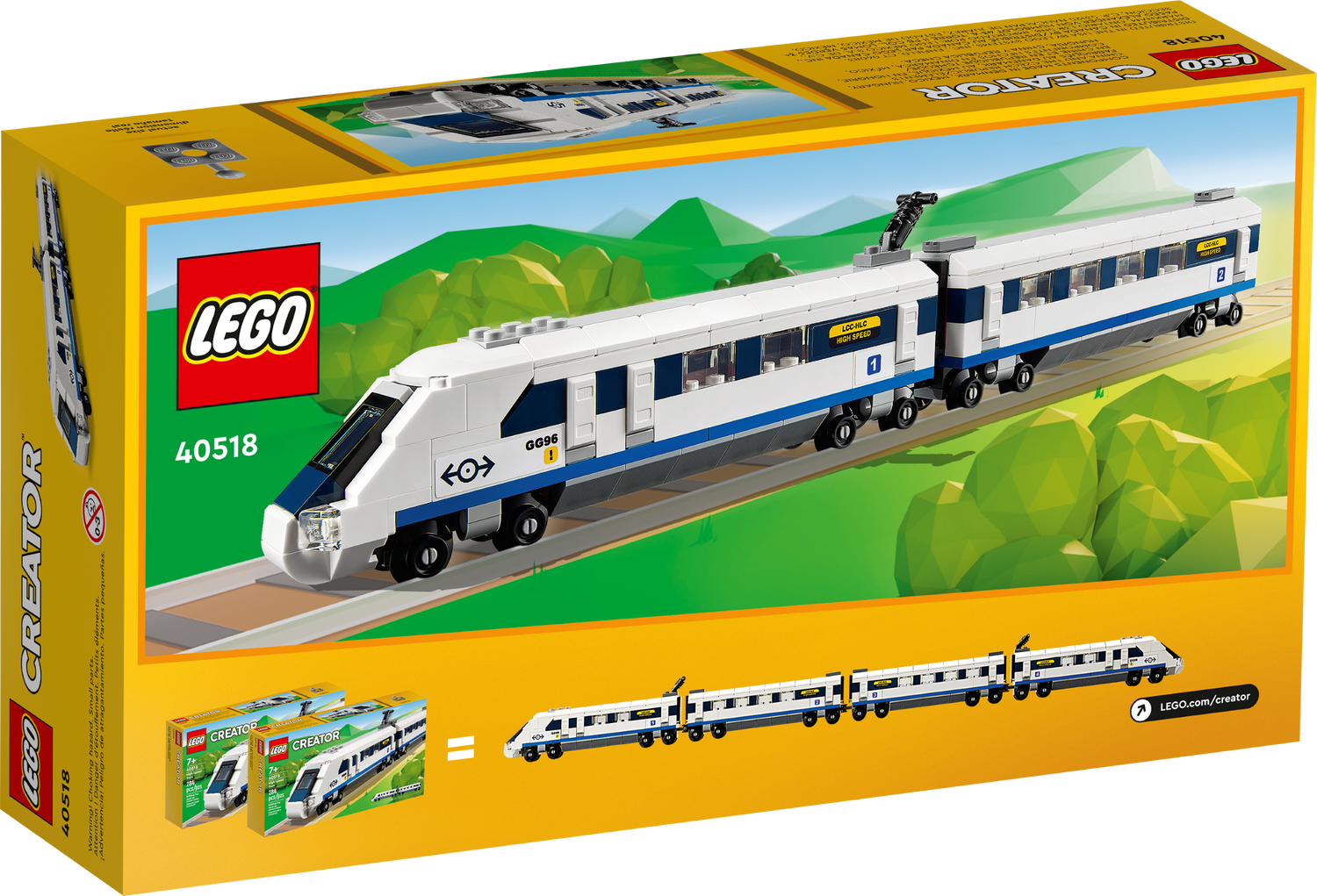 * Spannende Zugreise: Steig in den LEGO® Creator Hochgeschwindigkeitszug (40518) aus 2 Waggons. In dem Wagen mit der schrägen Front befindet sich der Führerstand* Für Eisenbahnfans ab 7 Jahren: Dieses 284-teilige Modell ist ein tolles Geschenk für Kinder, die gerne spannende Geschichten mit Zügen darstellen* Erschaffe einen Mega-Zug: Dieses Set beinhaltet 2 Waggons und Aufkleber für 4 separate Wagen. Zwei Sets lassen sich zu einem größeren Zug aus 4 Waggons kombinieren* Spielzeug zum Mitnehmen: Der Hochgeschwindigkeitszug ist 6,5 cm hoch, 36 cm lang und 3 cm breit. Dank dieses kompakten Formats können Kinder nicht nur zu Hause mit dem Modell spielen, sondern den Zug auch überallhin mitnehmen