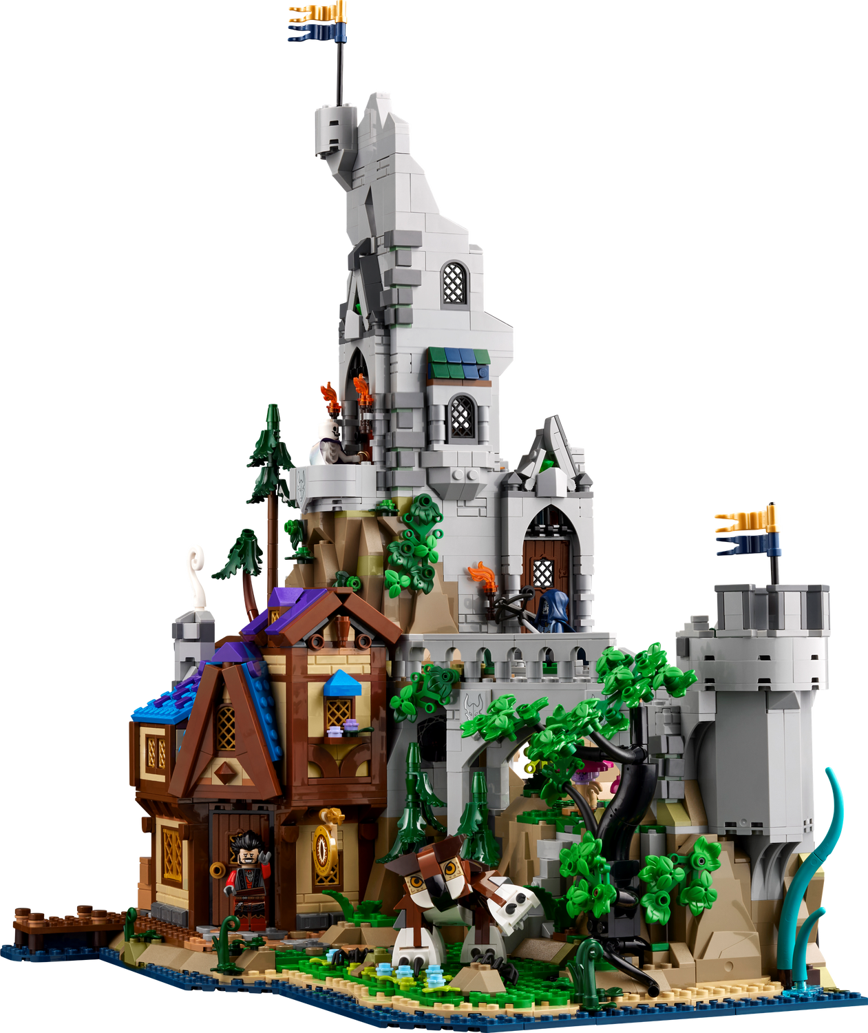 Lass dich von LEGO® Ideas Dungeons & Dragons: Die Sage vom Roten Drachen (21348) in die Vergessenen Reiche versetzen. Dieses Set zum Spielen und Ausstellen ist ein tolles Geschenk für erwachsene Fans der D&D® Fantasy-Spielwelt. Das Dach und das Obergeschoss der baubaren Taverne kann man abnehmen, um besser in dem Gebäude spielen zu können. Auch ein Verlies, ein Turm und Zunderheuler der Rote Drache laden zum Spielen ein. Die bewegliche Drachenfigur kann den Turm umschlingen. Das Set beinhaltet auch 6 LEGO Minifiguren – 4 tapfere Abenteurer, einen Gastwirt und einen Drachengeborenen – sowie jede Menge Monster, beispielsweise einen Betrachter, einen Eulenbären und eine Täuschungsbestie. Abgesehen von Alax Jadeschuppe hat jede Figur auch einen Kopf zum Auswechseln, um den Look verändern zu können.Dieses Bauset wurde in Zusammenarbeit mit Wizards of the Coast entwickelt. Vervollständigt wird das Set von einer eigens vom D&D Team geschriebenen maßgeschneiderten Kampagne! Lade dir die Kampagne herunter und begib dich auf deine Mission. Du kannst überall magische Items und legendäre Easter Eggs entdecken. Aber hüte dich vor den Fallen, den Monstern und dem riesigen Roten Drachen.