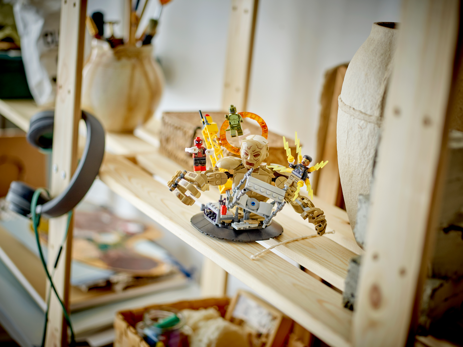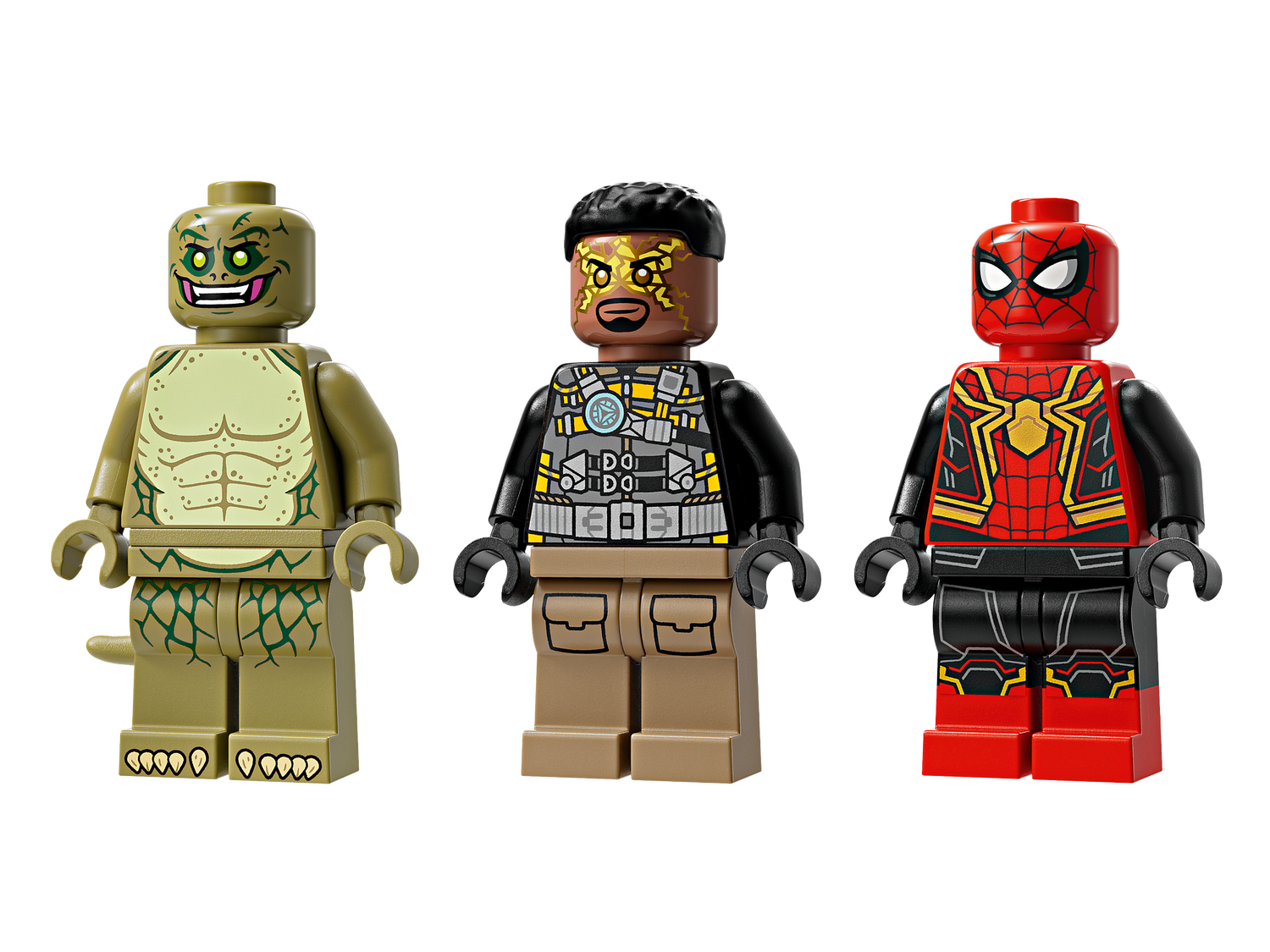 * Spider-Mans ultimativer Showdown mit 3 Bösewichten – Sandman, Electro und Lizard: Dieses baubare Actionspielzeug für Kinder ab 10 Jahren basiert auf dem Film Spider-Man: No Way Home aus den Marvel Studios* 360-Grad-Bauspielzeug: Ein großes Modell, das Sandman darstellt, steht im Mittelpunkt dieser facettenreichen Szene mit klassischen Charakteren und jeder Menge authentischem Actionzubehör* LEGO® Actionbauspielzeug für Kinder: Junge Marvel Fans können den gelenkigen Sandman drehen und ihn mit seinen gewaltigen Pranken nach Spider-Man greifen lassen, wenn der Superheld an seinem biegsamen „Netzseil“ vorbeischwingt* Spider-Mans Duelle mit Bösewichten: Die Minifiguren aus diesem Set kann man an unterschiedlichen Stellen positionieren und in verschiedene Posen bringen, um besonders fantasievoll zu spielen oder ein spektakuläres Modell auszustellen* Bauspielzeug für Jungen und Mädchen: Genau das richtige Geschenk für Fans, die spannende Duelle, Marvel Filme und Action-Abenteuer mit Superhelden lieben* 3D-Bauanleitung: Für ein fesselndes Bauerlebnis können sich Kinder die LEGO® Builder App herunterladen. Mit den digitalen Funktionen kann man 3D-Modellansichten drehen und vergrößern, Sets speichern und den Baufortschritt verfolgen* LEGO® Marvel Sets: Die große Auswahl an LEGO Marvel Bauspielzeugen bietet allen jungen Superhelden jede Menge kreative Abenteuer* 347-teiliges Bauset: Dieses Spider-Man Bauspielzeug ist 12 cm groß