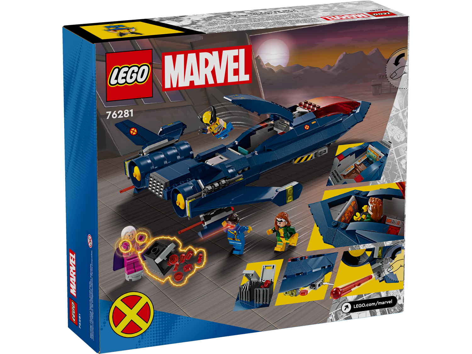 Der LEGO® Marvel X-Jet der X-Men (76281) ist das ultimative Transportmittel für Fans von supercoolen Flugzeugen, LEGO Marvel Bauspielzeugen und der TV-Serie X-Men ’97 aus den Marvel Studios. Wenn du ein LEGO Marvel Bauspielzeug suchst, das voll im Trend liegt, dann ist der X-Jet der X-Men genau das richtige Geschenk für ein Kind ab 8 Jahren. Denn mit diesem baubaren Spielzeugflieger wird sein Superheldenstatus ein völlig neues Niveau erreichen.Das spektakuläre Flugzeug aus diesem Bauset basiert auf dem X-Jet in X-Men ’97 und lädt zu spannenden Abenteuern mit den Minifiguren Cyclops, Rogue, Magneto und Wolverine ein. Das Actionbauspielzeug verfügt über zwei Cockpits für 4 Minifiguren, 2 Shooter an beiden Seiten des Jets und 2 Shooter mit Federmechanismus unter den Flügeln. In dem baubaren Modell befinden sich auch 2 Behälter, in denen dein Kind Ersatzprojektile und Wolverines lange Klauen verstauen kann, wenn sie nicht an der Minifigur befestigt sind. Zusätzlichen digitalen Bauspaß bietet die intuitive LEGO Builder App, die Baumeister 3D-Modellansichten vergrößern und drehen und ihren Baufortschritt verfolgen lässt.